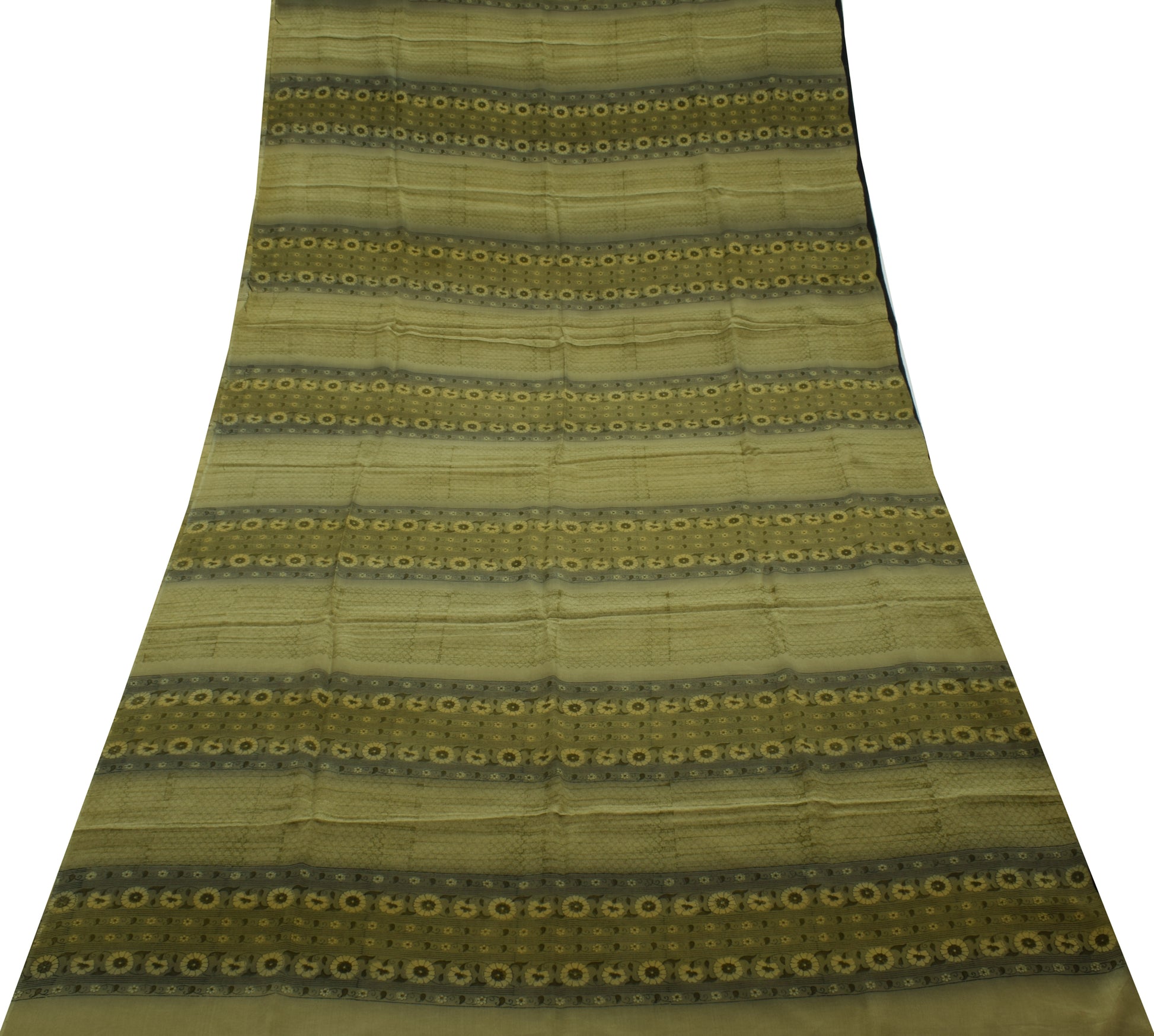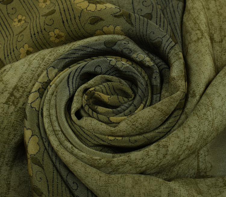 Sushila Vintage Indian Saree 100% Pure Crepe Silk Printed Floral Soft Fabric