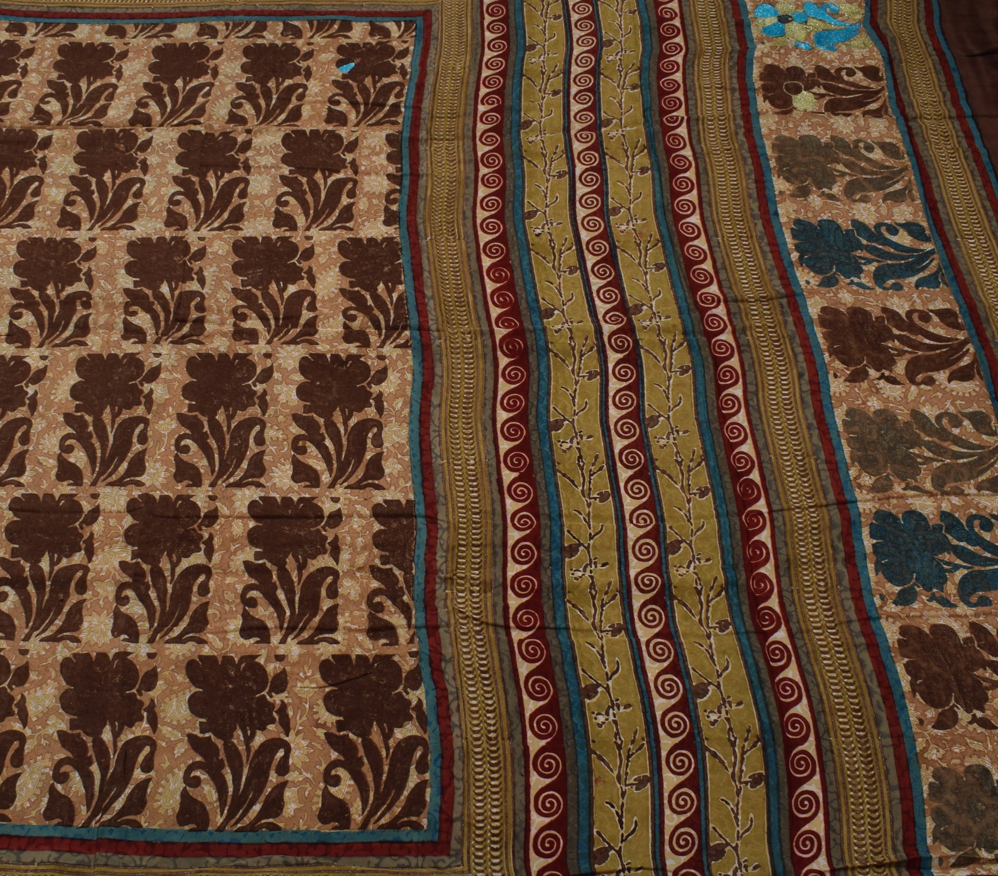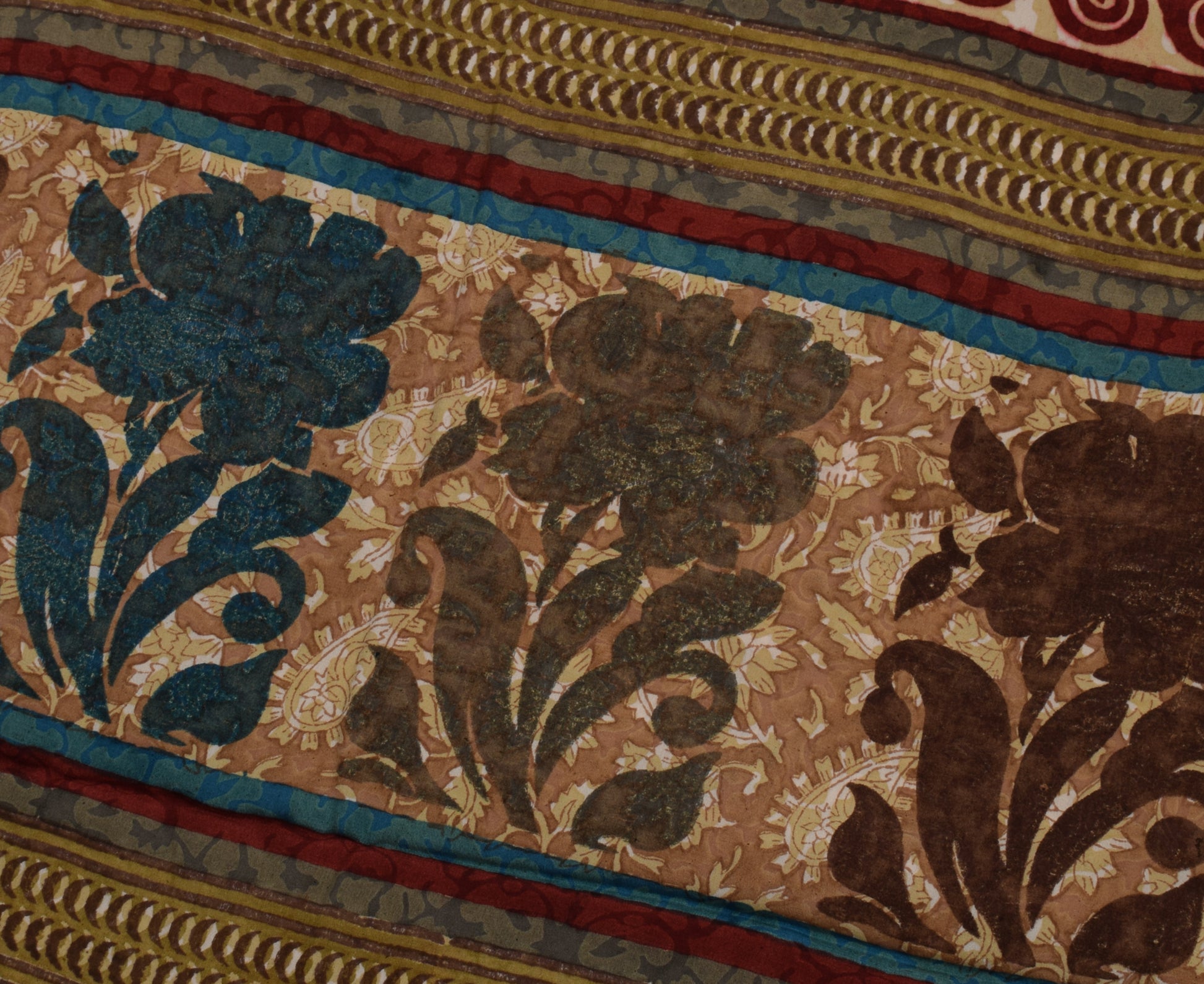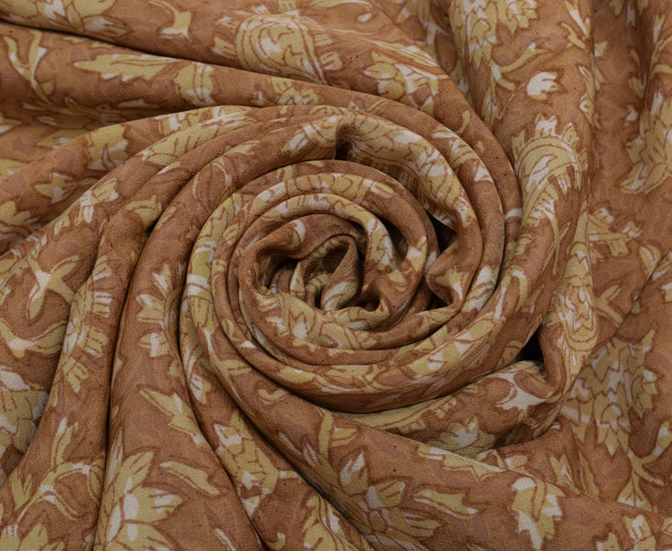 Sushila Vintage Indian Saree 100% Pure Crepe Silk Printed Floral Soft Fabric