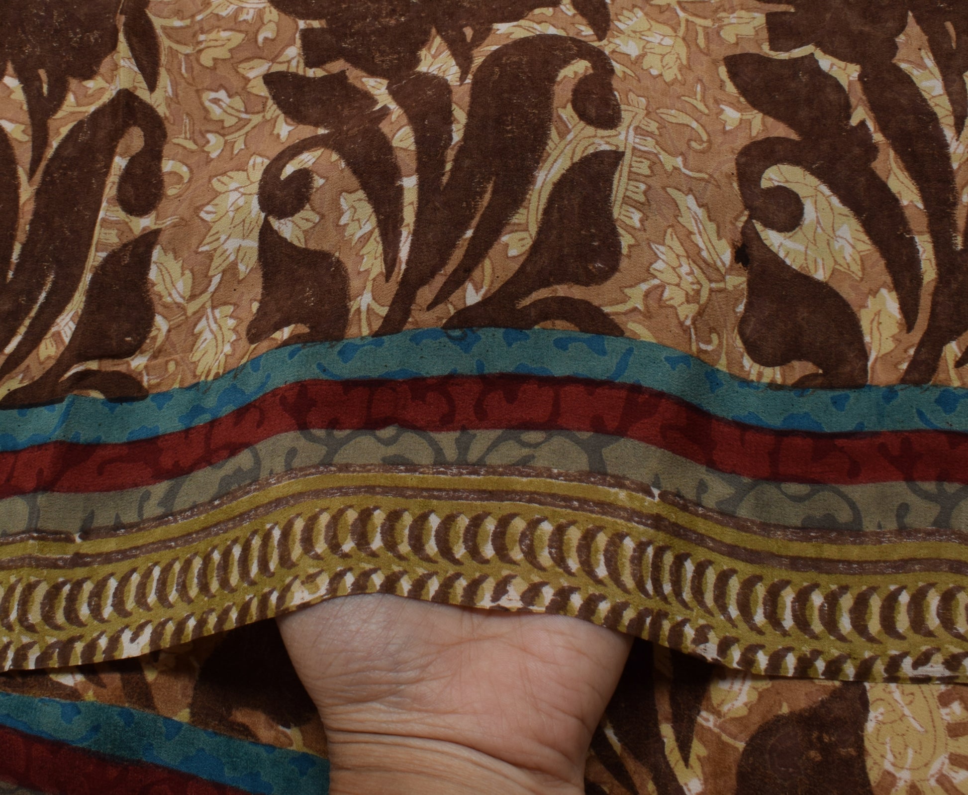 Embrace traditional sophistication in this as per images 100% pure crepe silk saree, showcasing timeless floral patterns and elegant printed embellishments. Crafted from pure, breathable 100% pure crepe silk, this sarI boasts a luxurious drape and enduring appeal. Measuring roughly 240 inch in length and 46 inch in width, it offers versatile styling—whether worn traditionally or repurposed into bespoke dresses, home décor, or creative crafts. Weighing about 403 grams (actual product weight), it falls gracefully, making it ideal for anyone who appreciates the charm of vintage textiles.