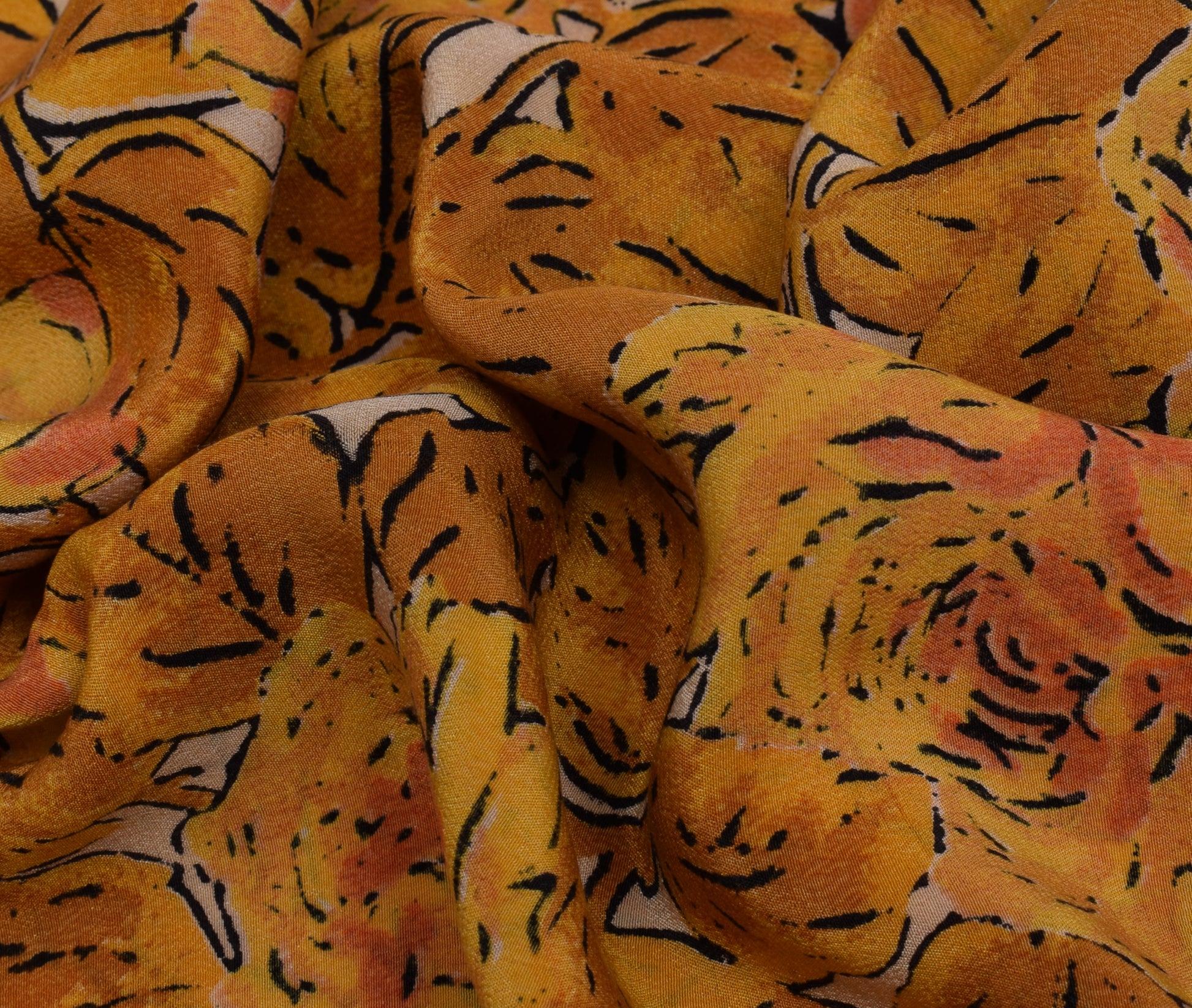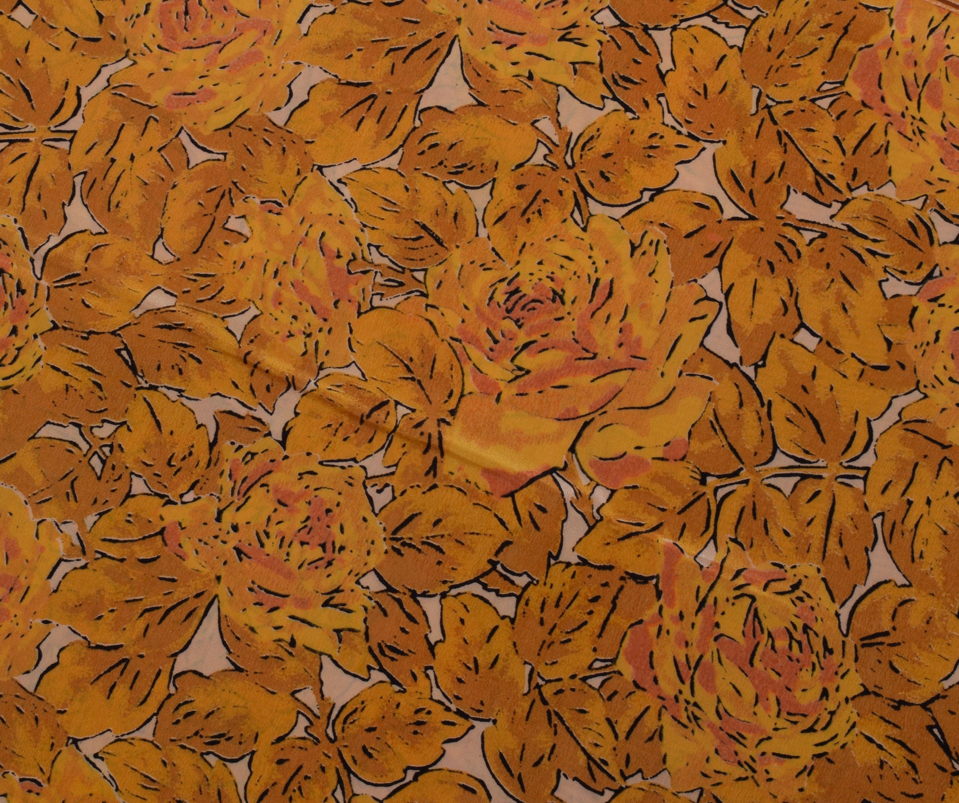 Sushila Vintage Indian Saree 100% Pure Crepe Silk Printed Floral Soft Fabric
