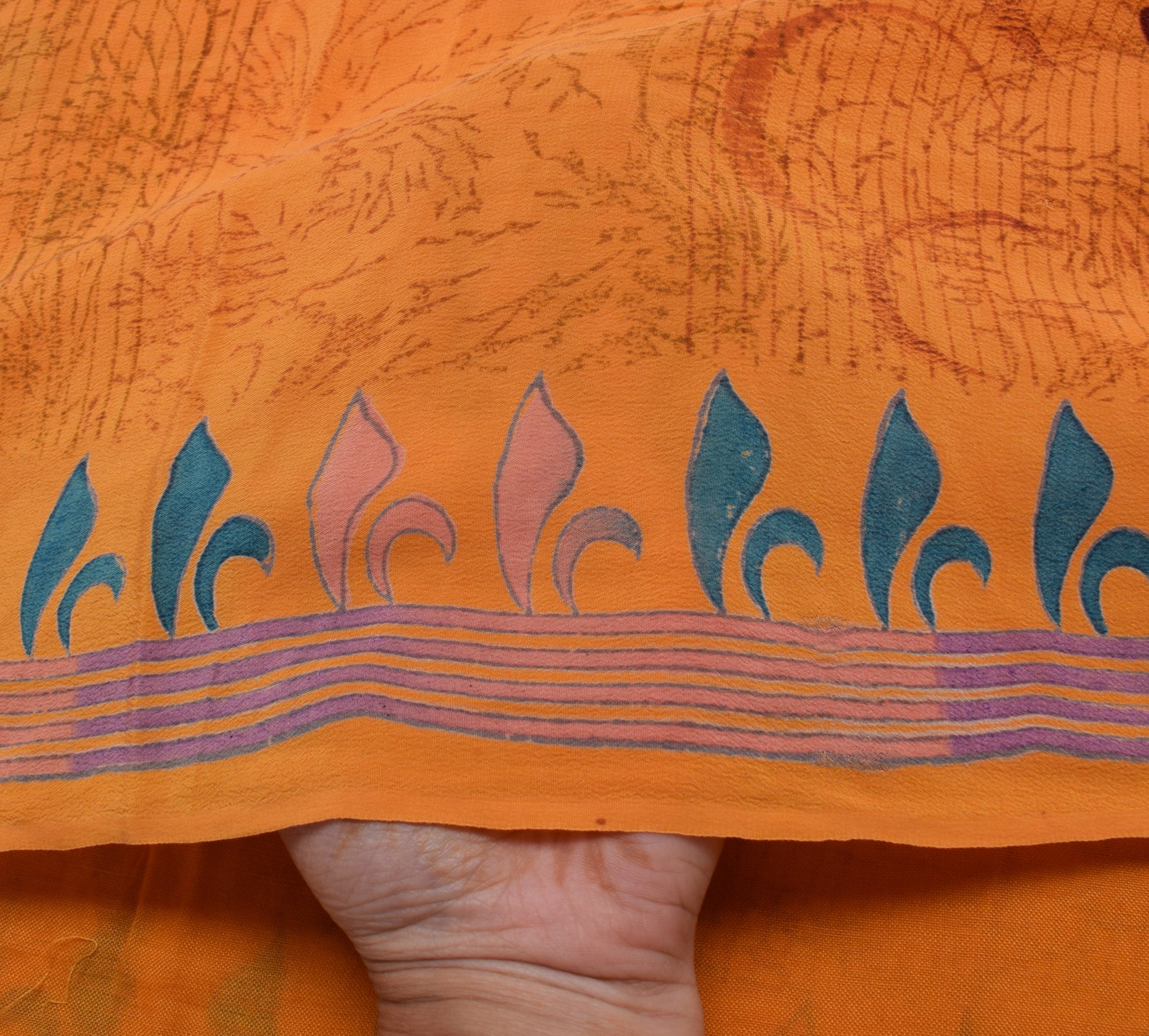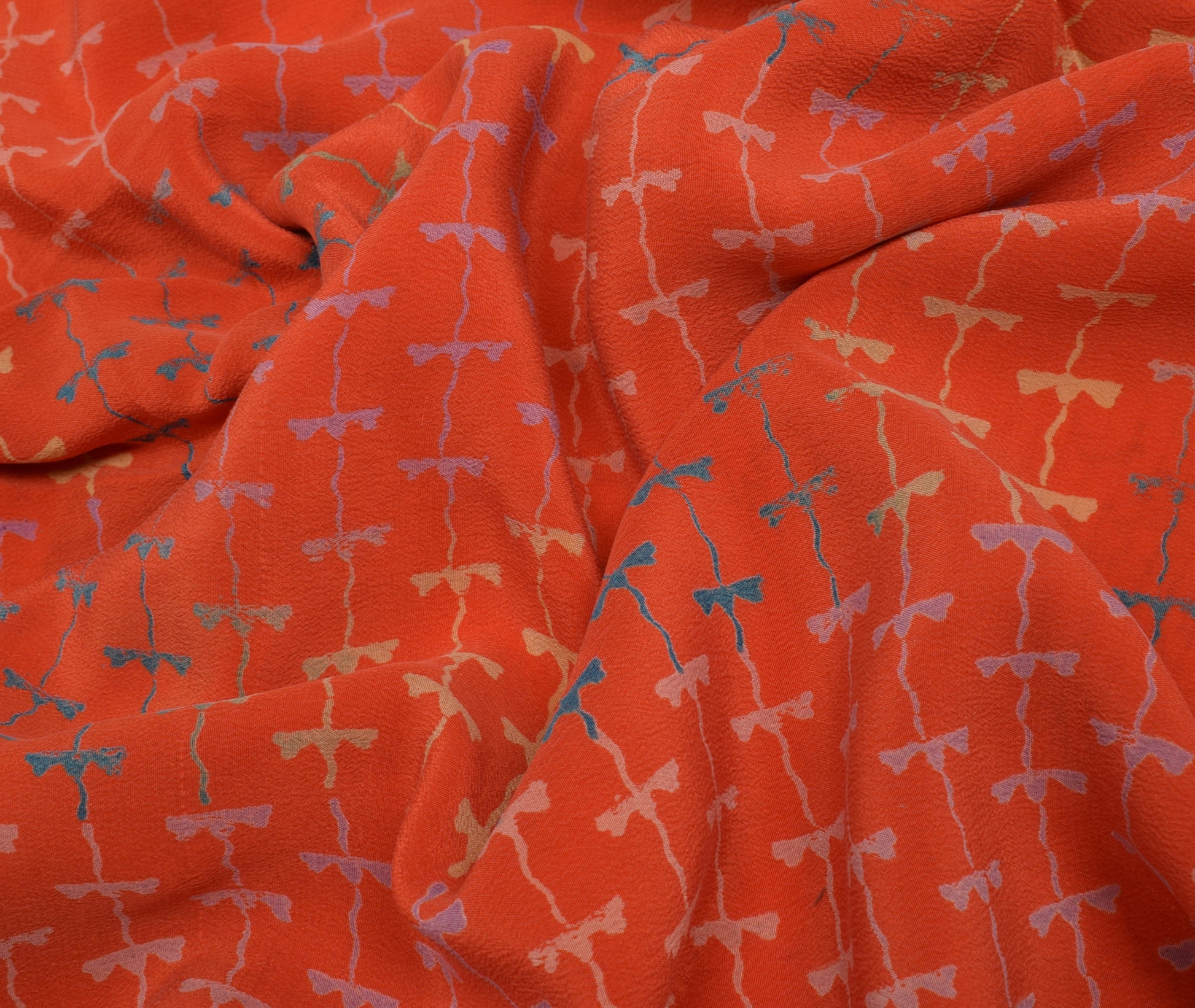 Sushila Vintage Indian Saree 100% Pure Crepe Silk Printed Floral Soft Fabric