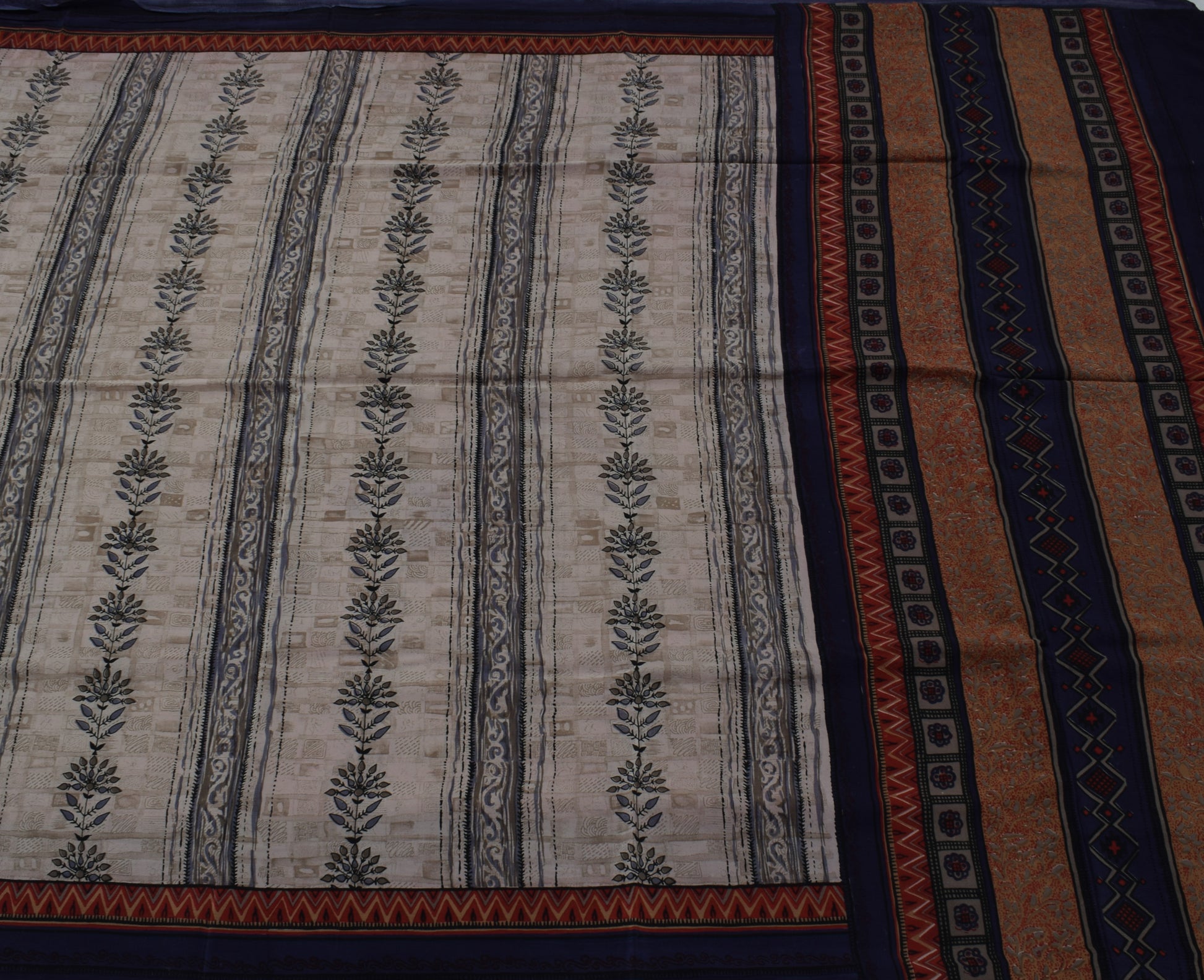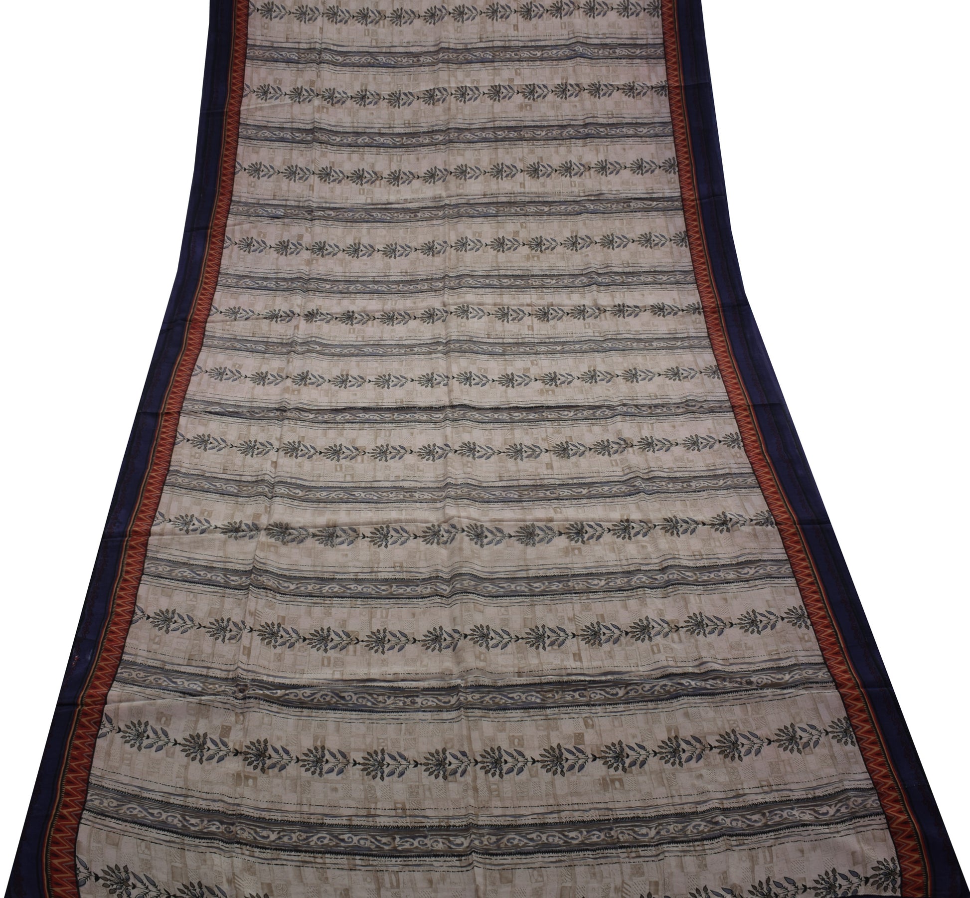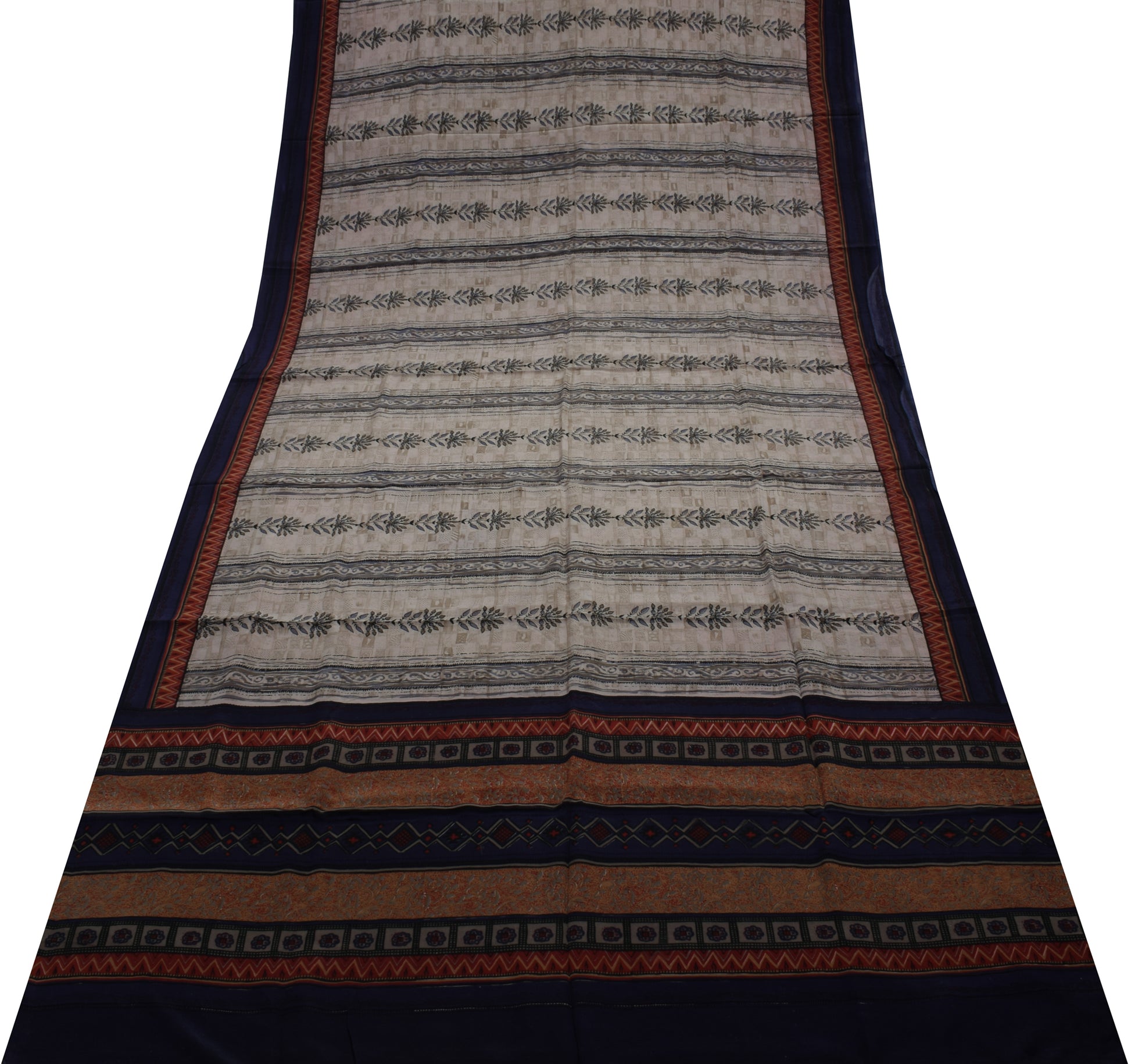 Sushila Vintage Indian Saree 100% Pure Crepe Silk Printed Floral Soft Fabric