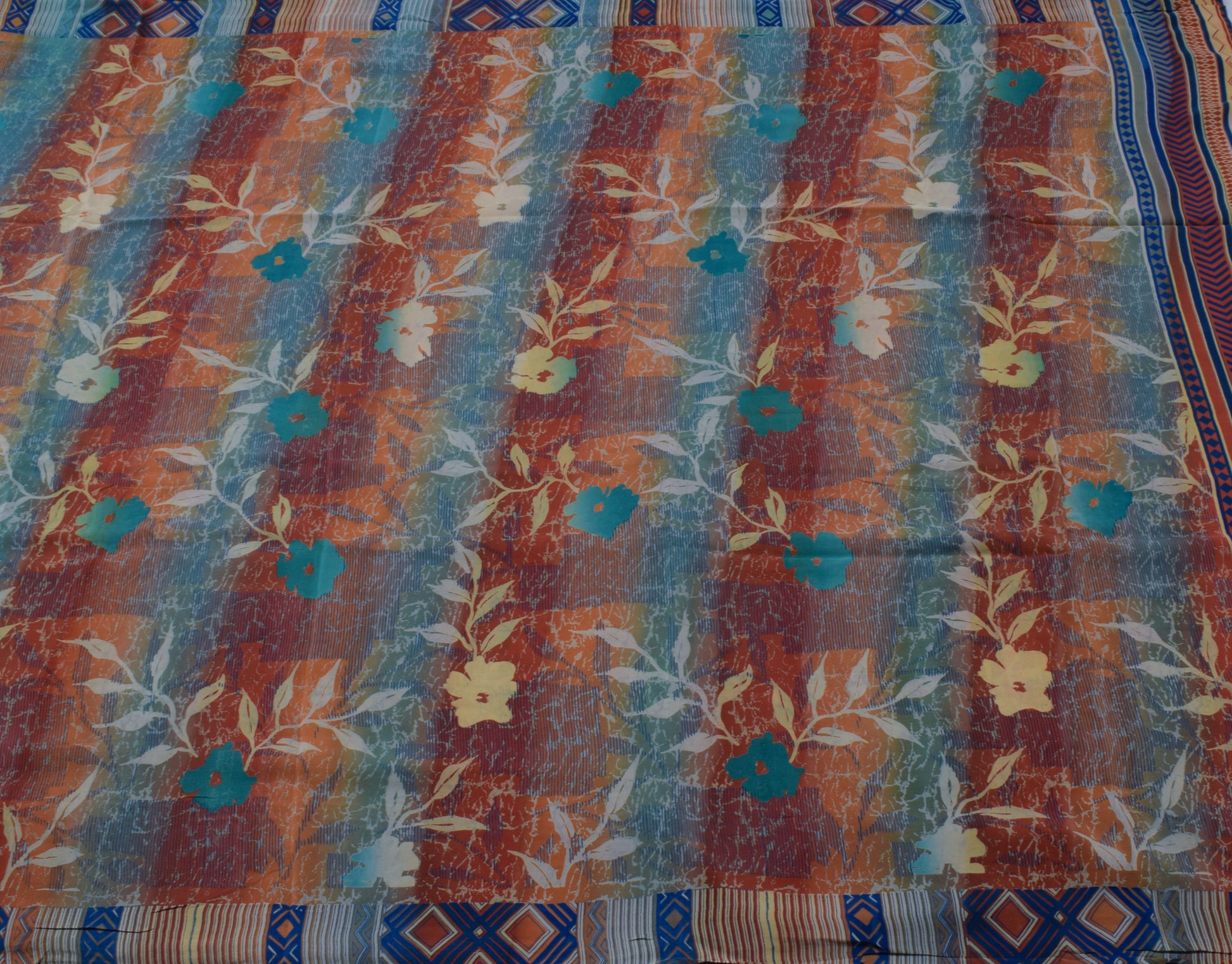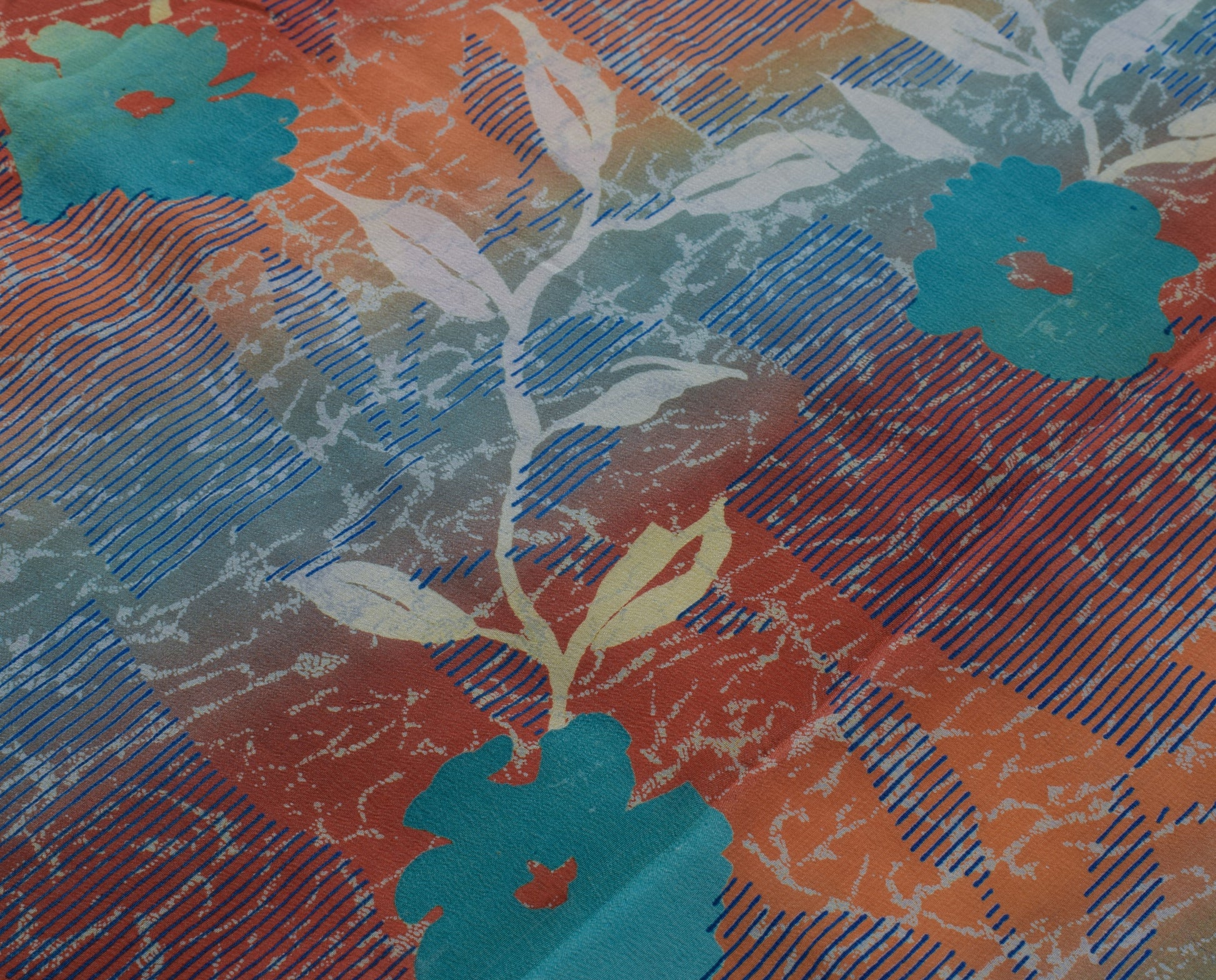 Sushila Vintage Indian Saree 100% Pure Crepe Silk Printed Floral Soft Fabric