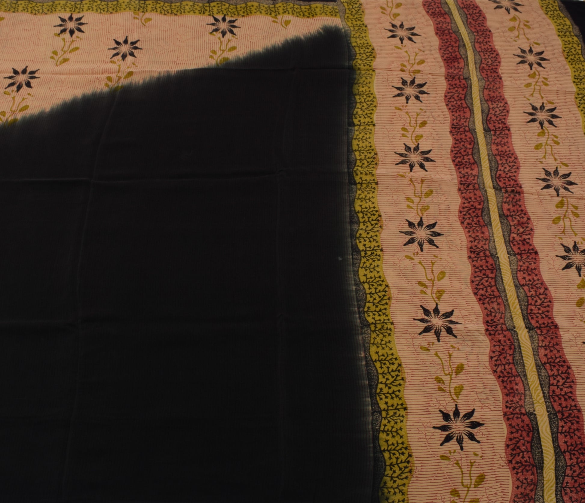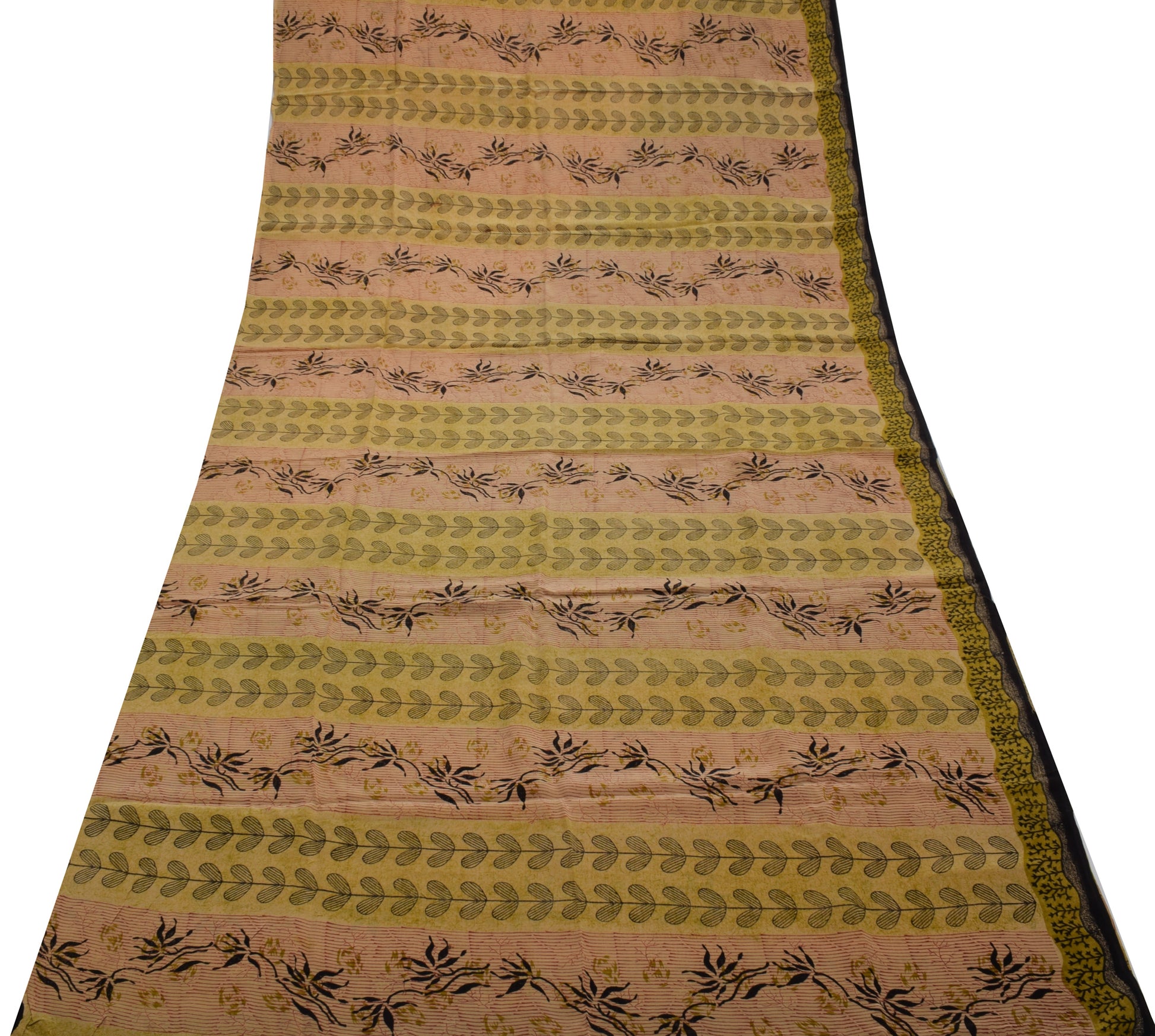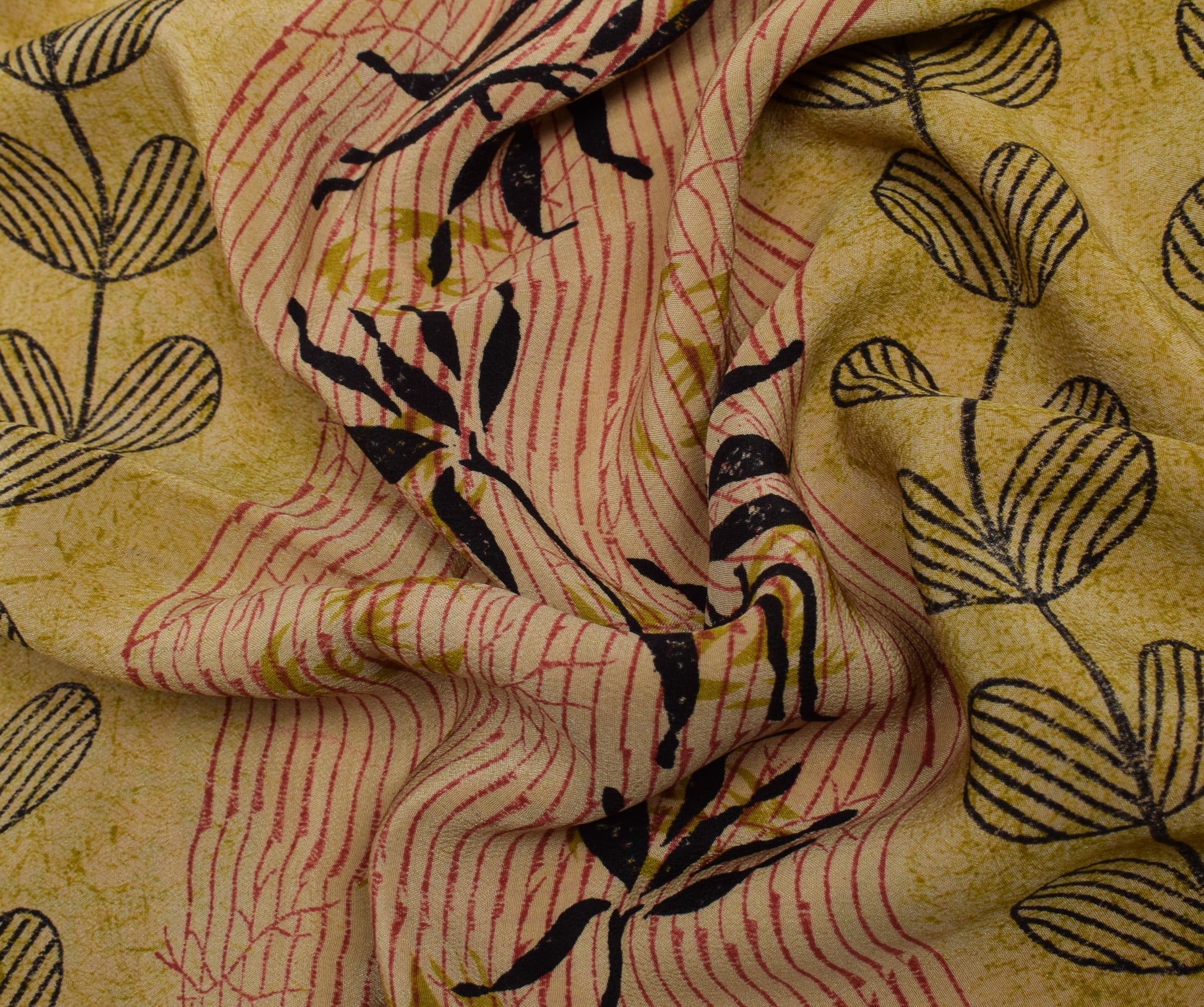 Sushila Vintage Indian Saree 100% Pure Crepe Silk Printed Floral Soft Fabric