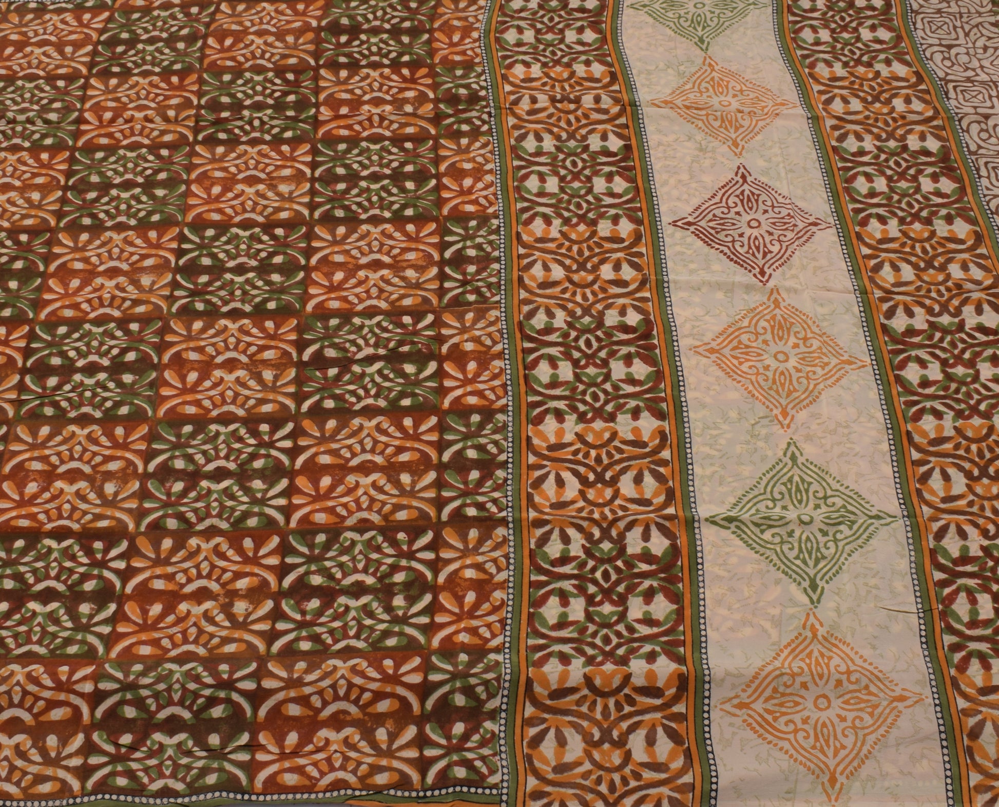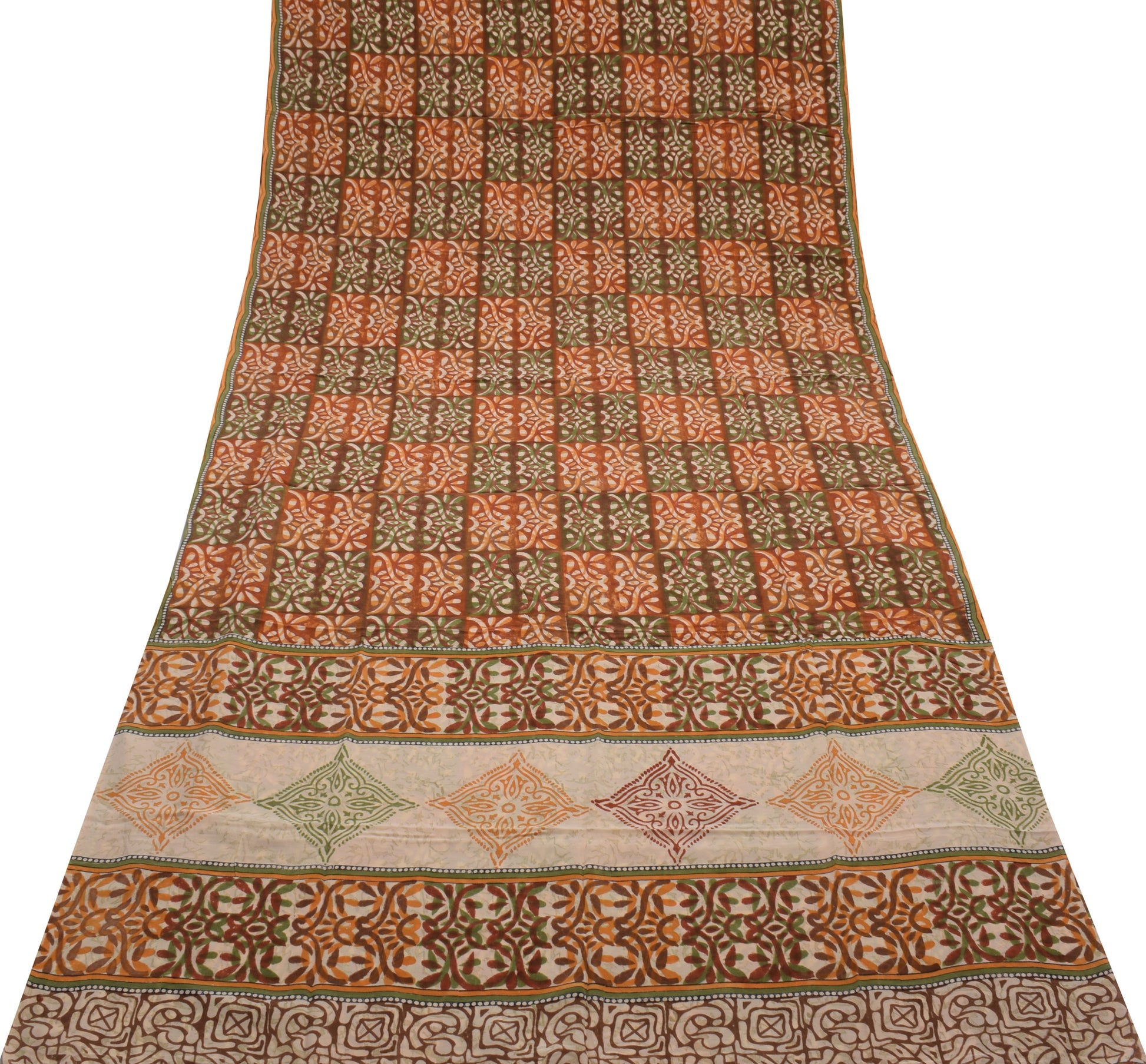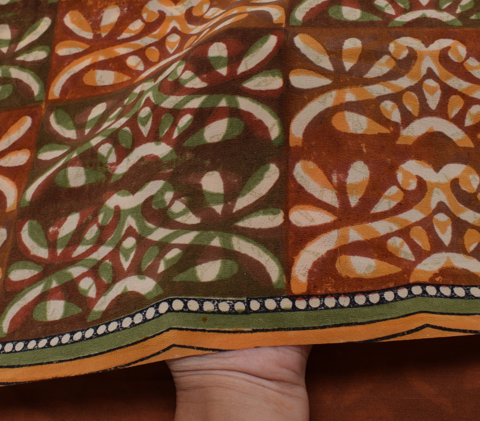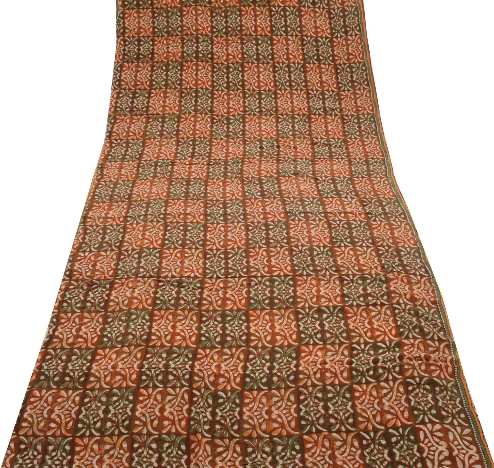 Sushila Vintage Indian Saree 100% Pure Crepe Silk Printed Floral Soft Fabric