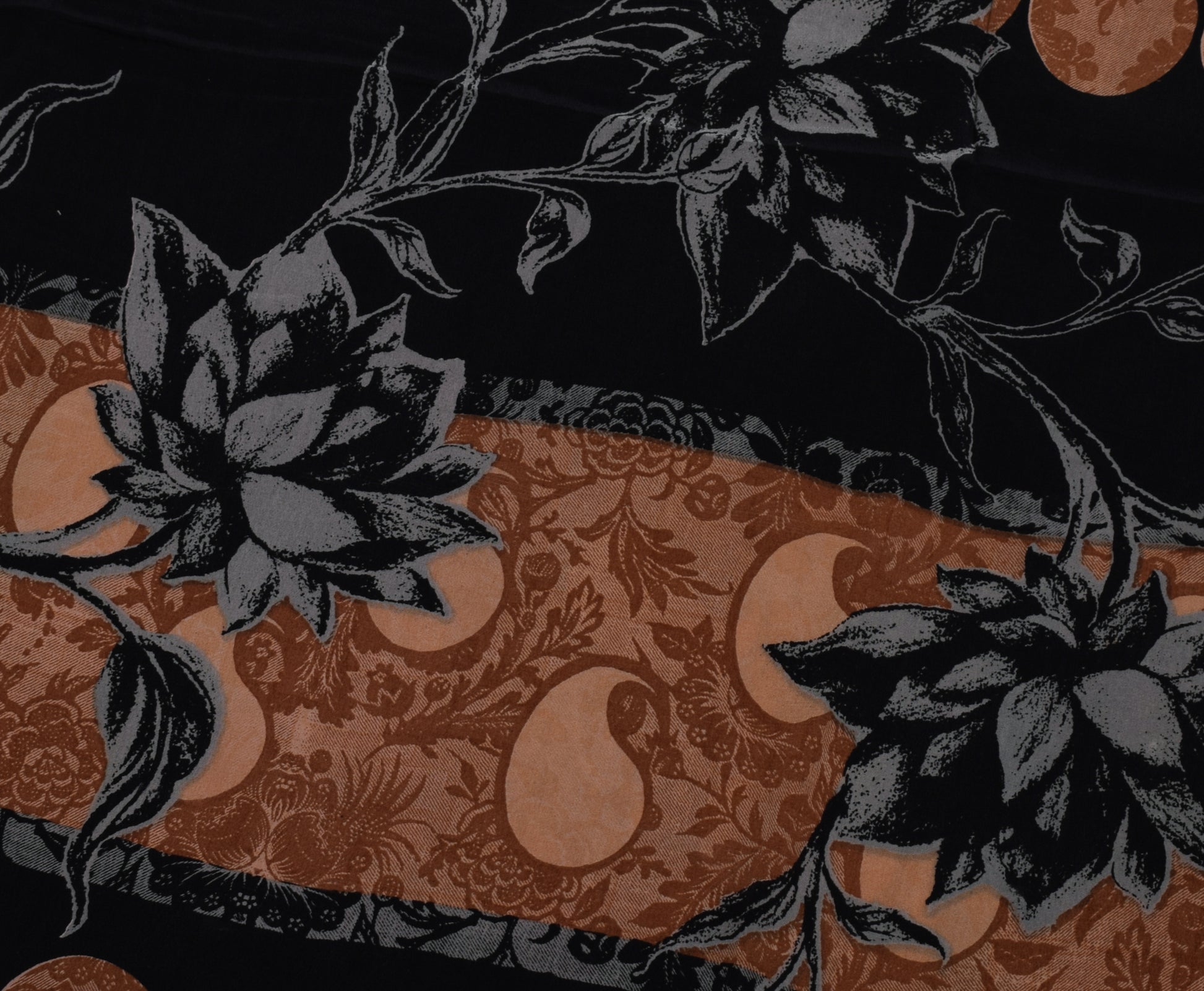 Celebrate heritage craftsmanship in this as per images 100% pure crepe silk saree, adorned with graceful paisley patterns and exquisite printed work. Crafted from pure, breathable 100% pure crepe silk, this sarI boasts a luxurious drape and enduring appeal. Measuring roughly 200 inch in length and 43 inch in width, it offers versatile styling—whether worn traditionally or repurposed into bespoke dresses, home décor, or creative crafts. Weighing about 355 grams (actual product weight), it falls gracefully, making it ideal for anyone who appreciates the charm of vintage textiles.