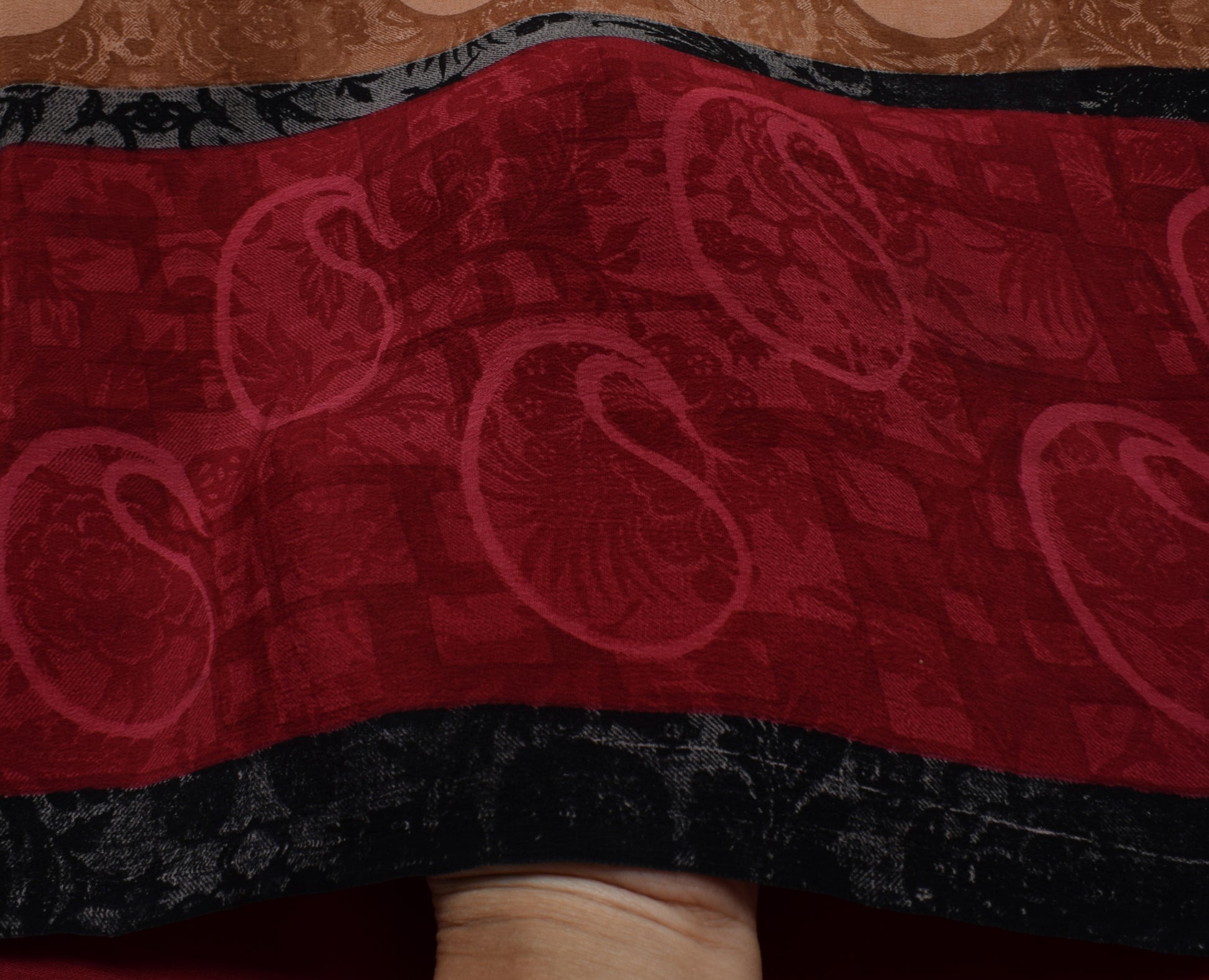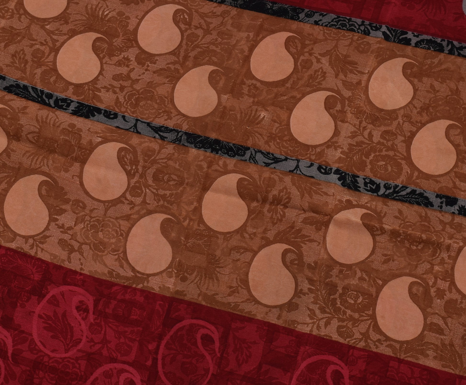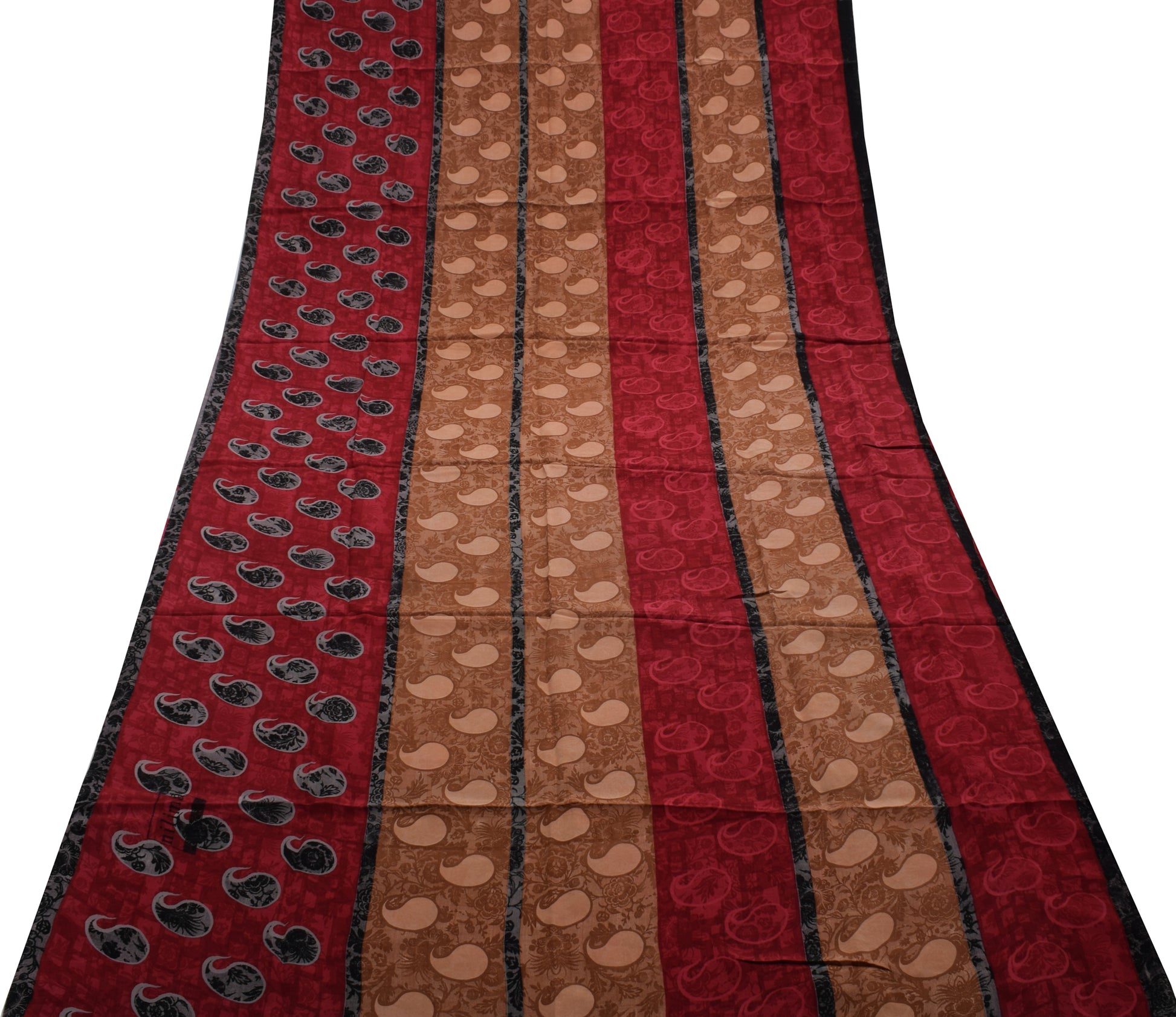 Sushila Vintage Indian Saree 100% Pure Crepe Silk Printed Paisley Soft Fabric