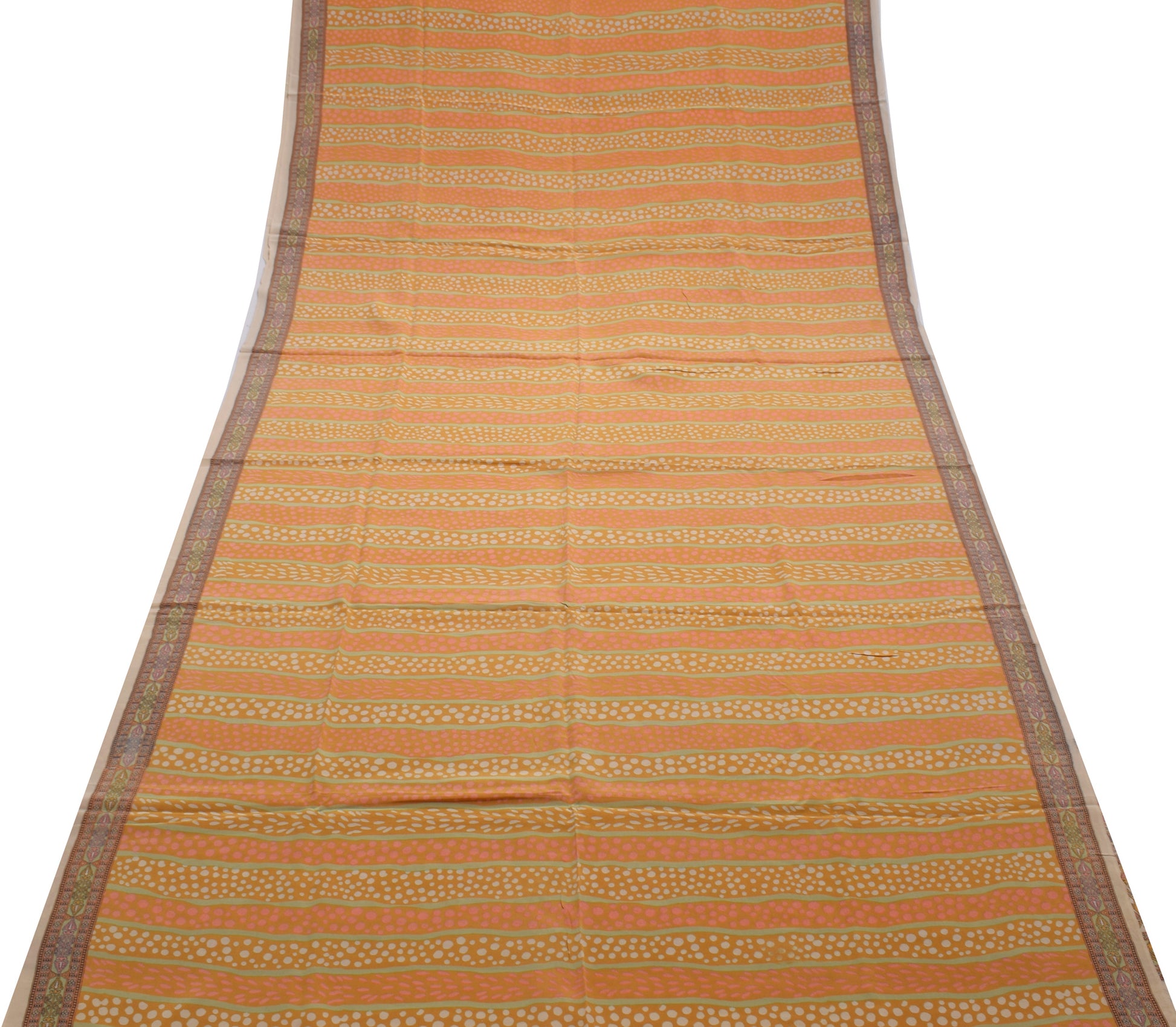 Sushila Vintage Indian Saree 100% Pure Crepe Silk Printed Soft 5 Yard Fabric