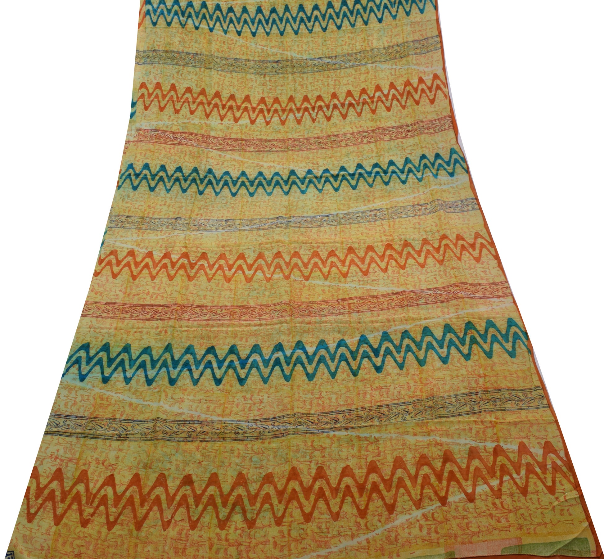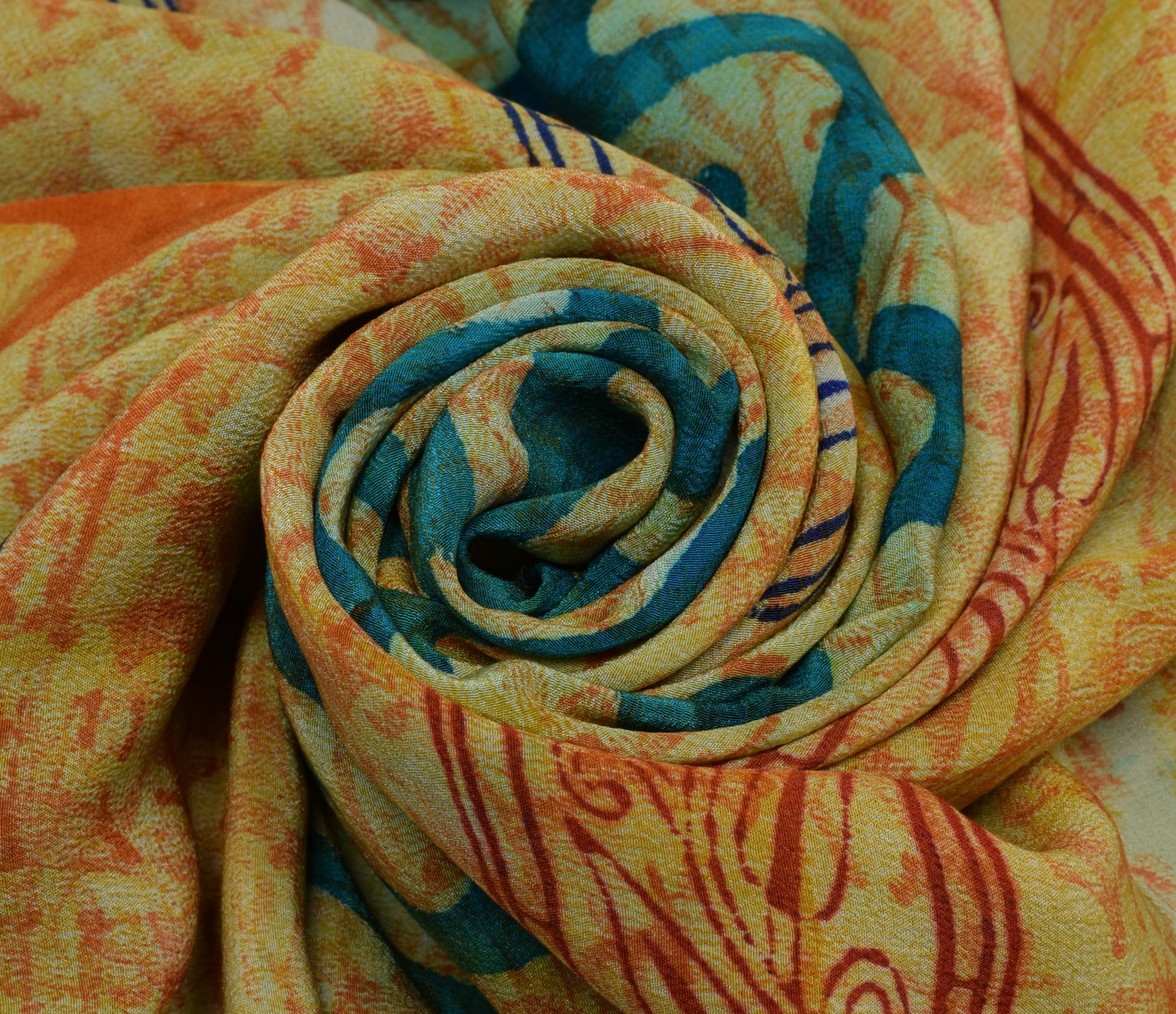 Sushila Vintage Indian Saree 100% Pure Crepe Silk Printed Soft Craft Fabric