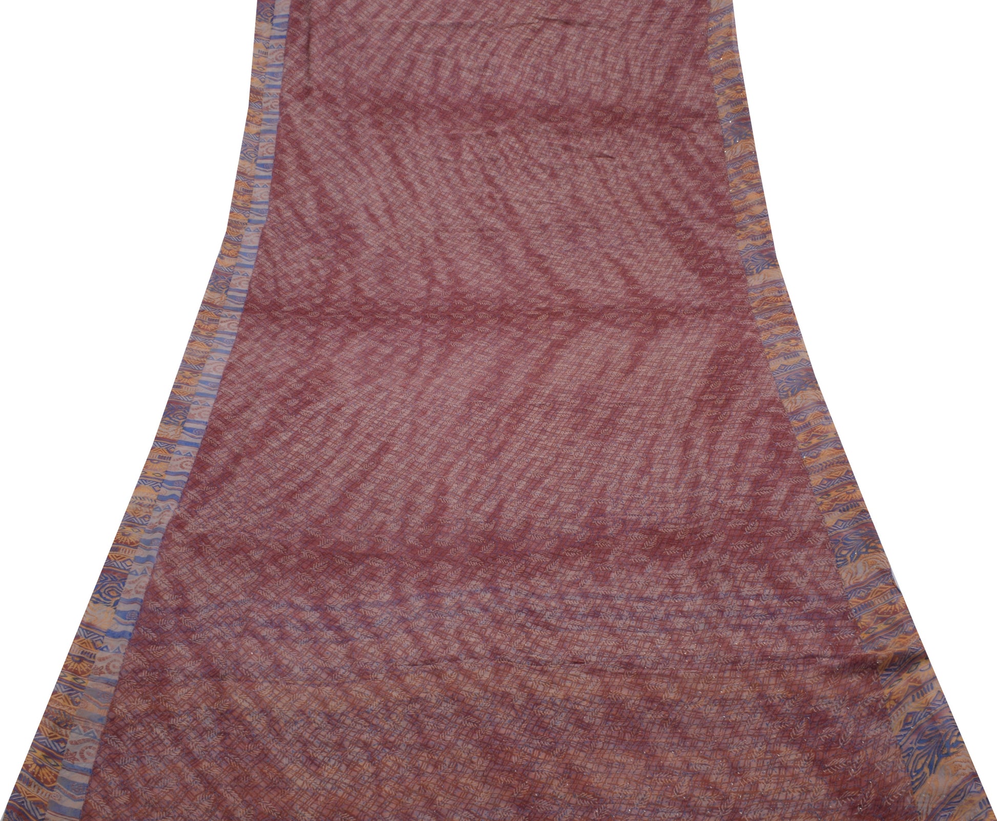 Sushila Vintage Indian Saree 100% Pure Georgette Silk Printed Craft Sari Fabric