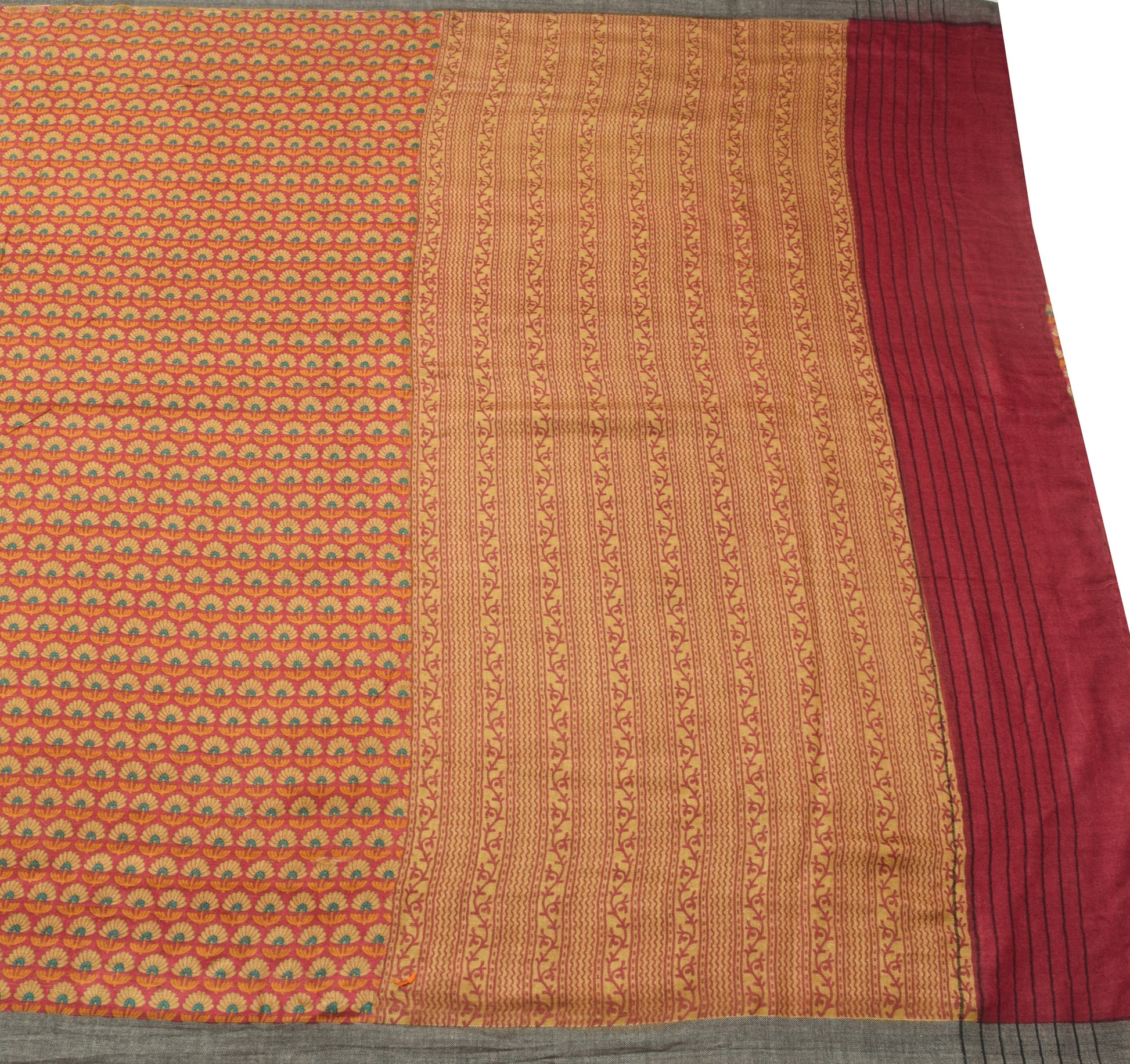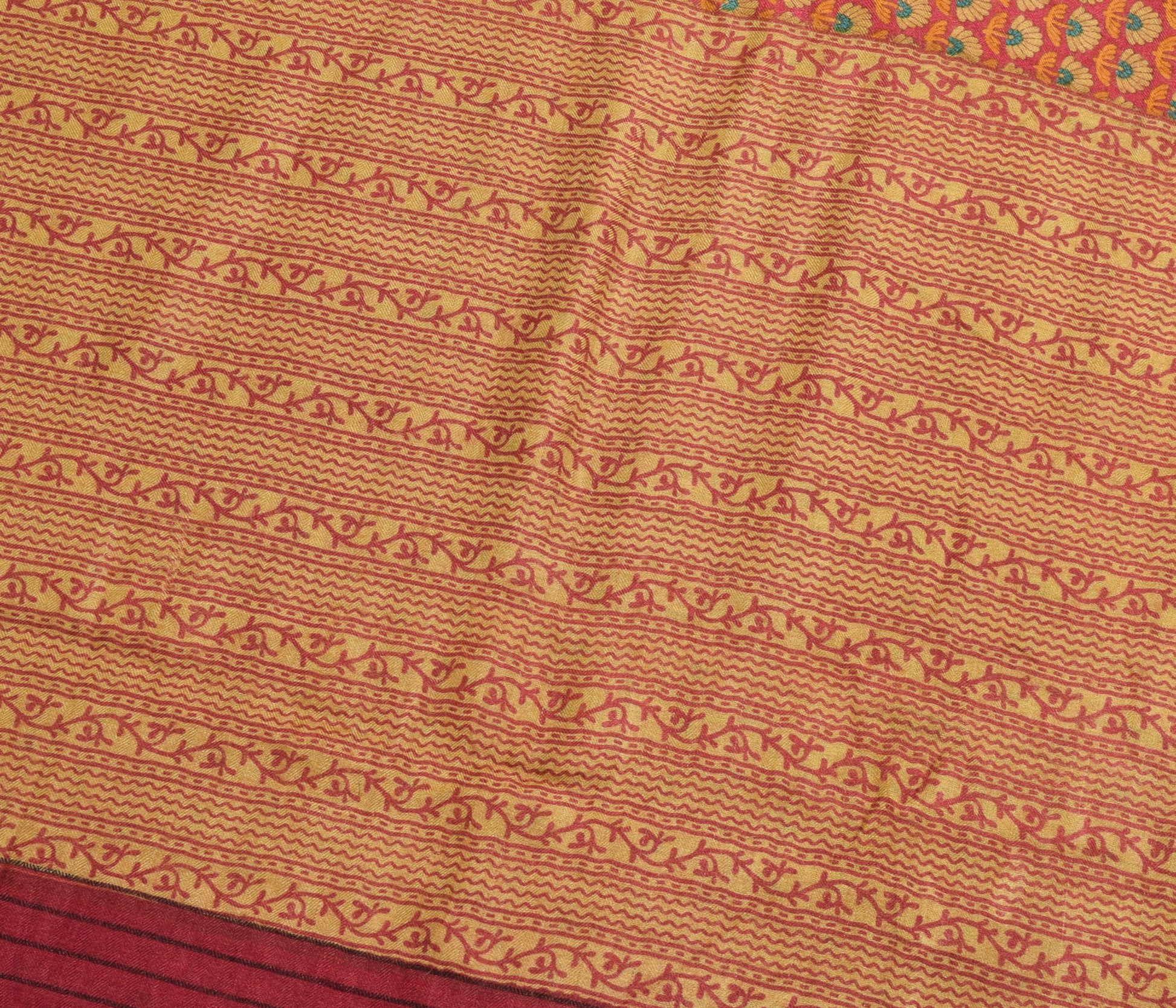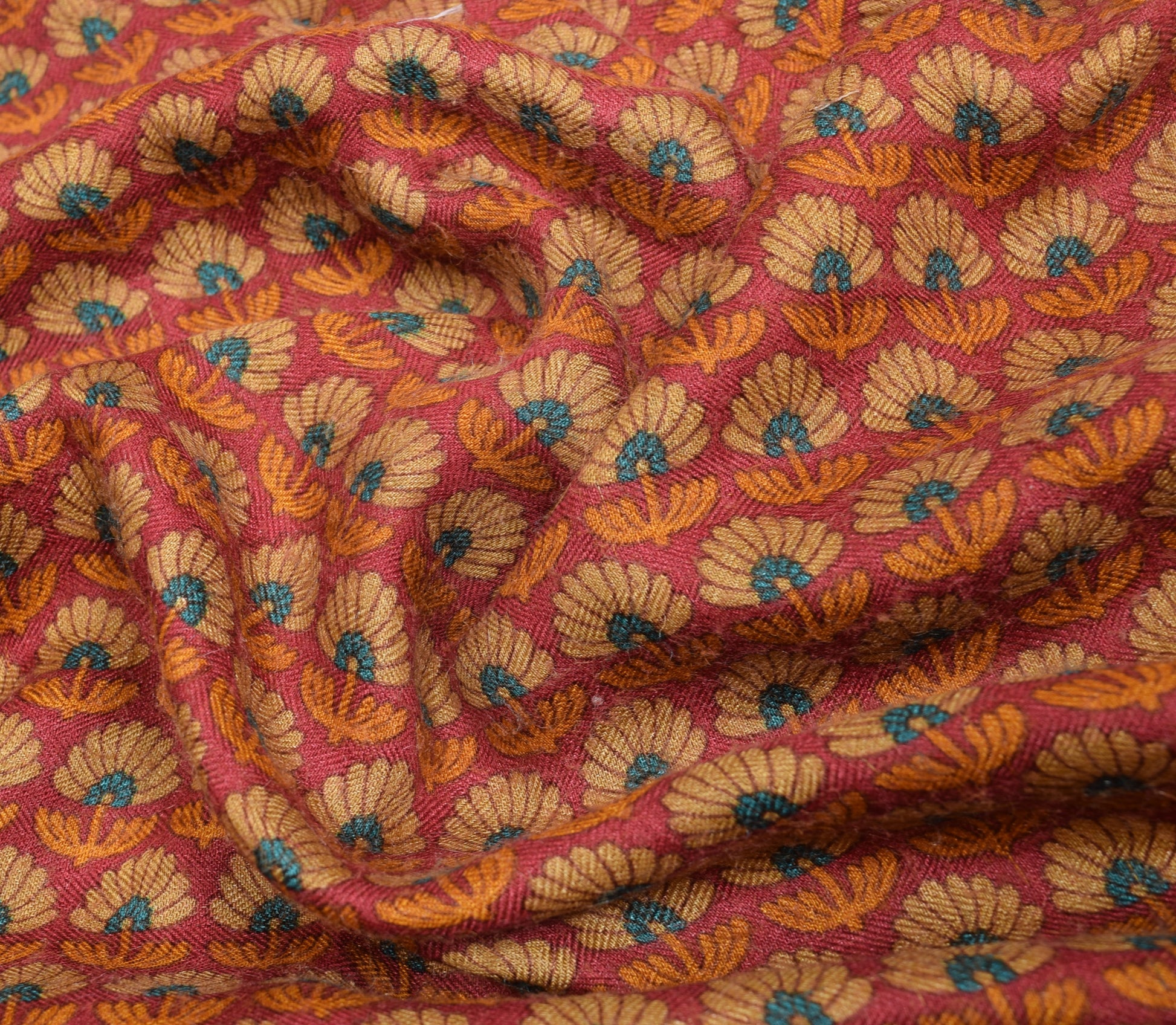 Sushila Vintage Indian Saree 100% Pure Woolen Printed & Woven Floral Sari Fabric