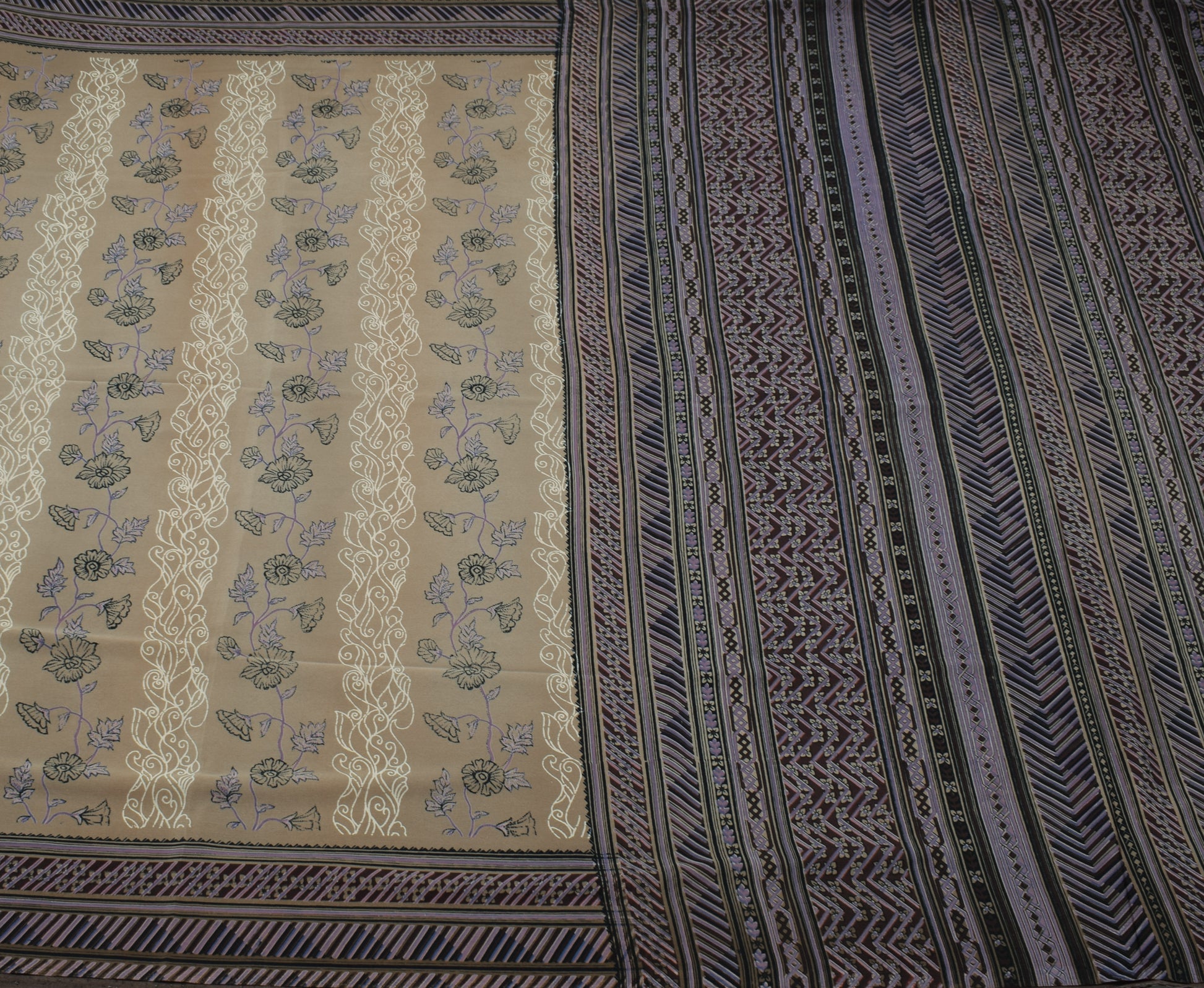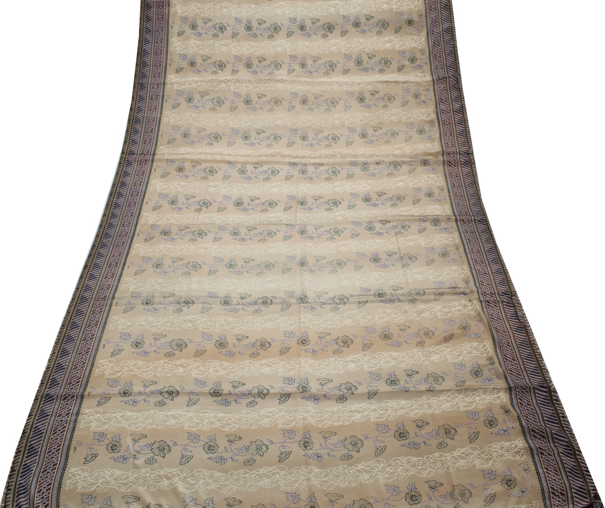 Sushila Vintage Indian Saree Blend Crepe Silk Printed Floral Soft 5 Yard Fabric