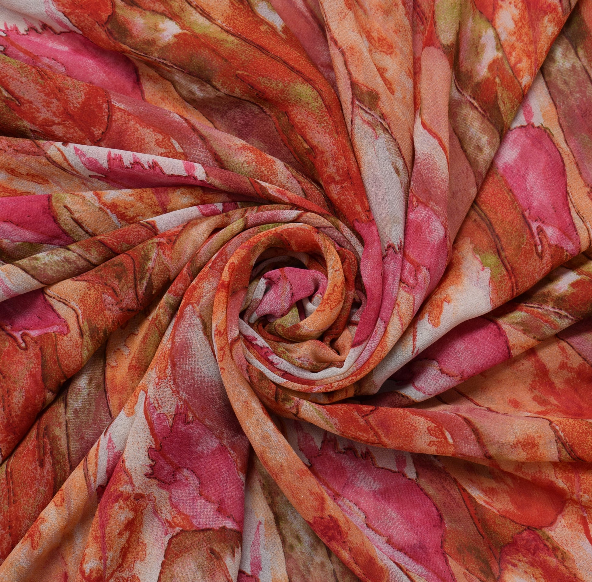 Sushila Vintage Indian Saree Blend Georgette Silk Printed Floral Craft Fabric