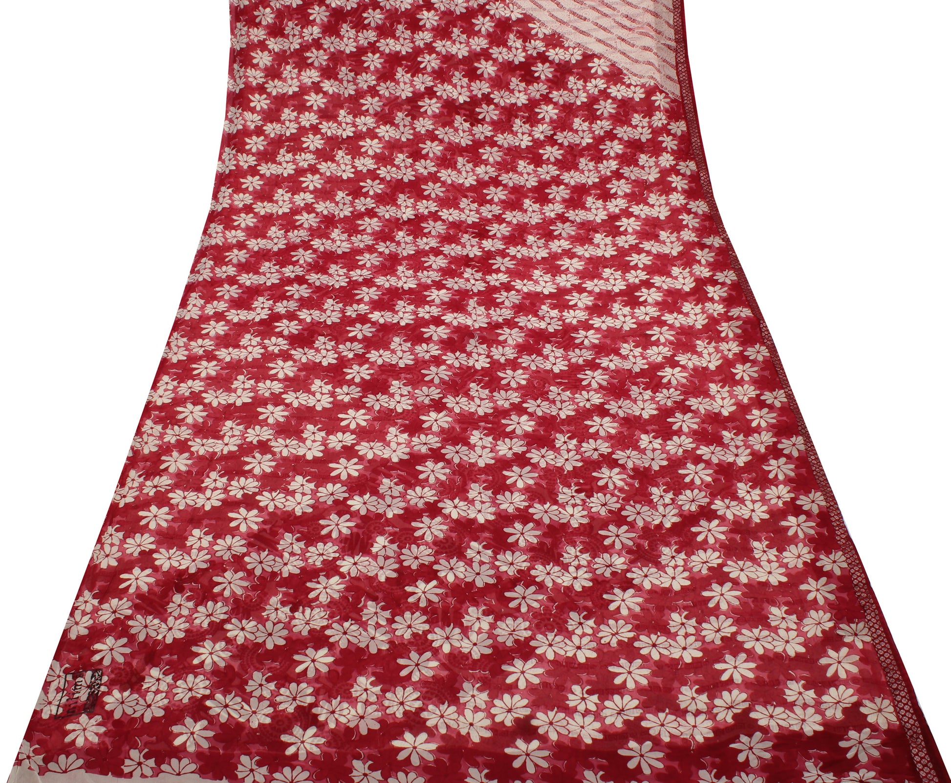 Sushila Vintage Indian Saree Pure Georgette Silk Printed 5 Yard Craft Fabric