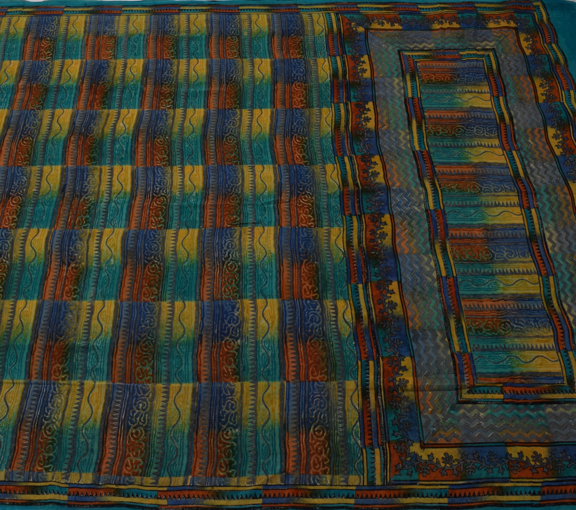 Sushila Vintage Indian Saree Pure Georgette Silk Printed 5 YD Craft Fabric