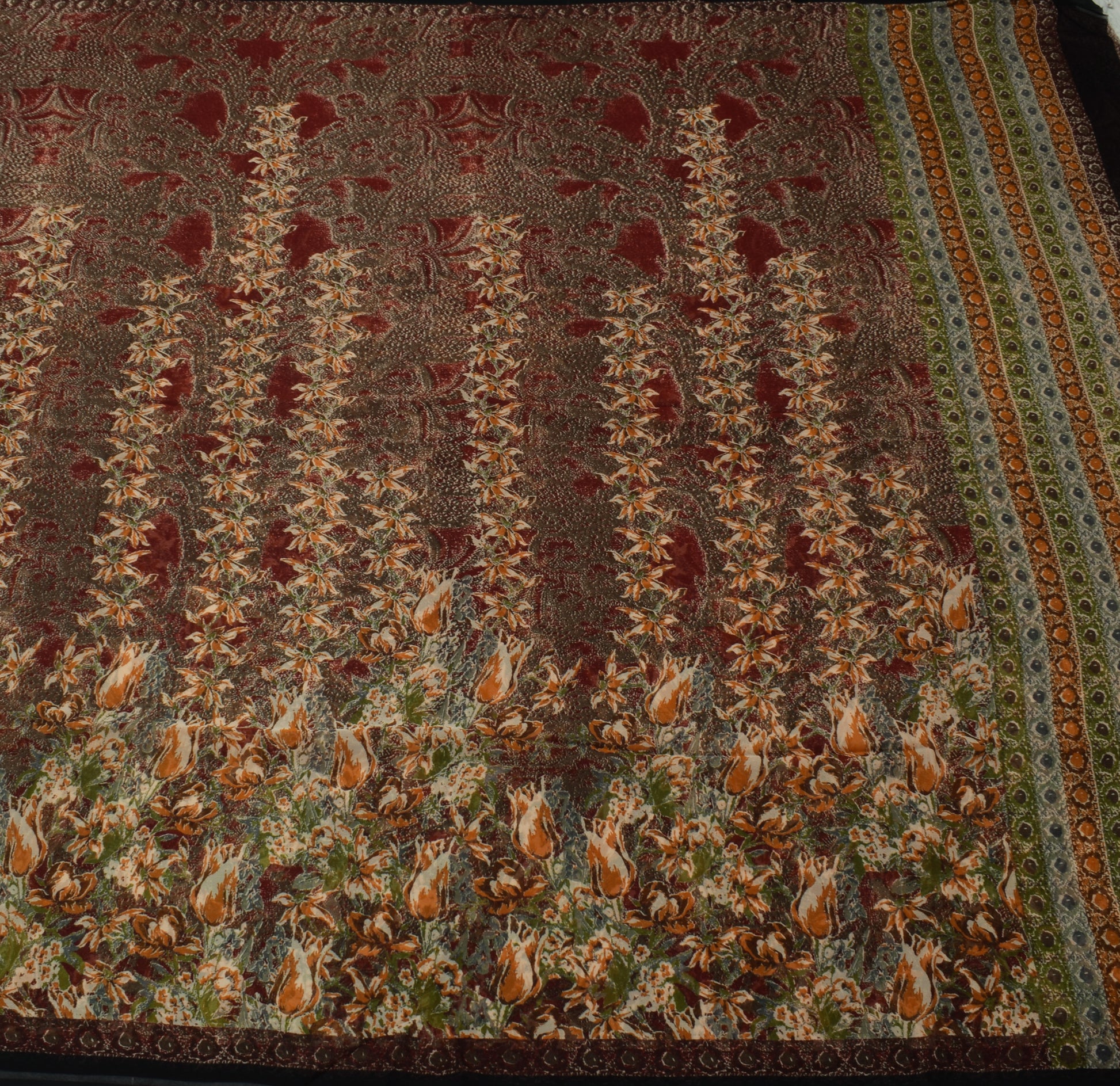 Sushila Vintage Indian Saree Pure Georgette Silk Printed Floral Craft Fabric