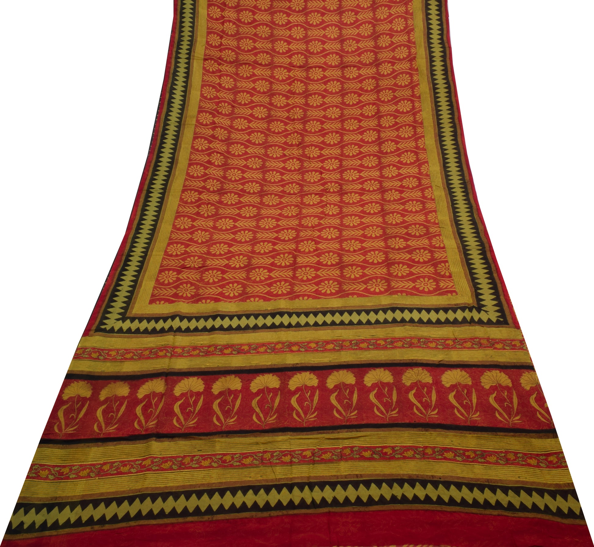 Sushila Vintage Indian Saree Pure Georgette Silk Printed Floral Craft Fabric
