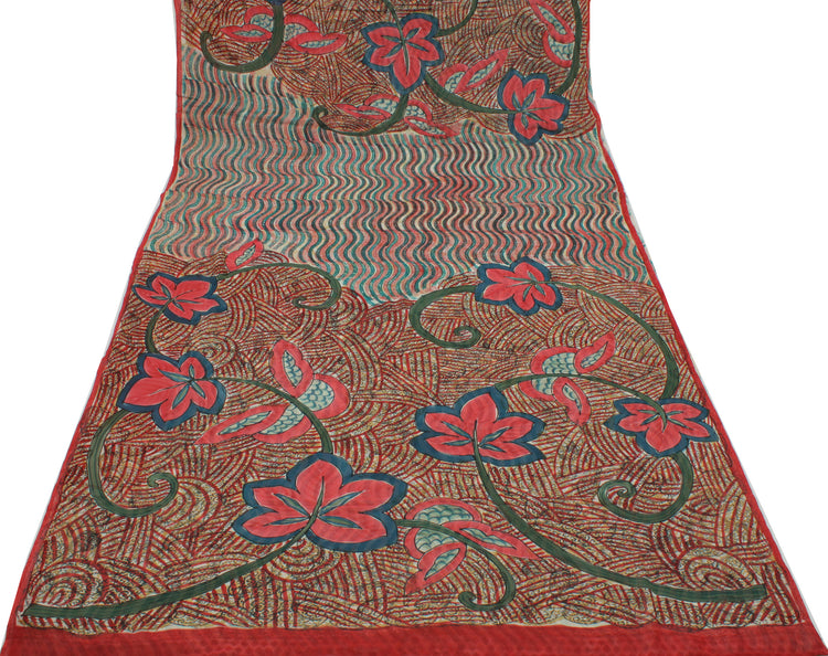 Sushila Vintage Indian Sari 100% Pure Georgette Silk Printed 5 Yard Craft Fabric