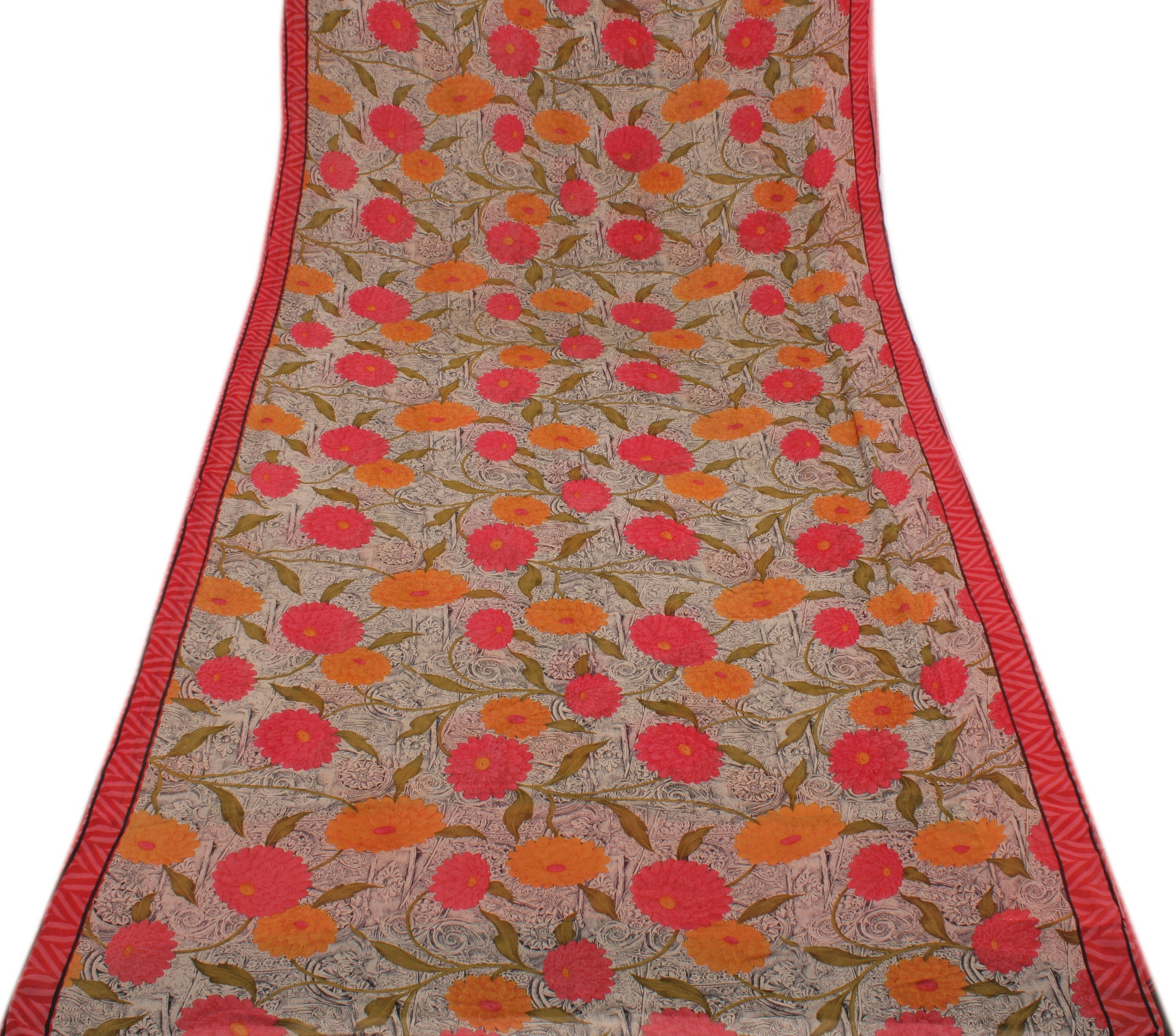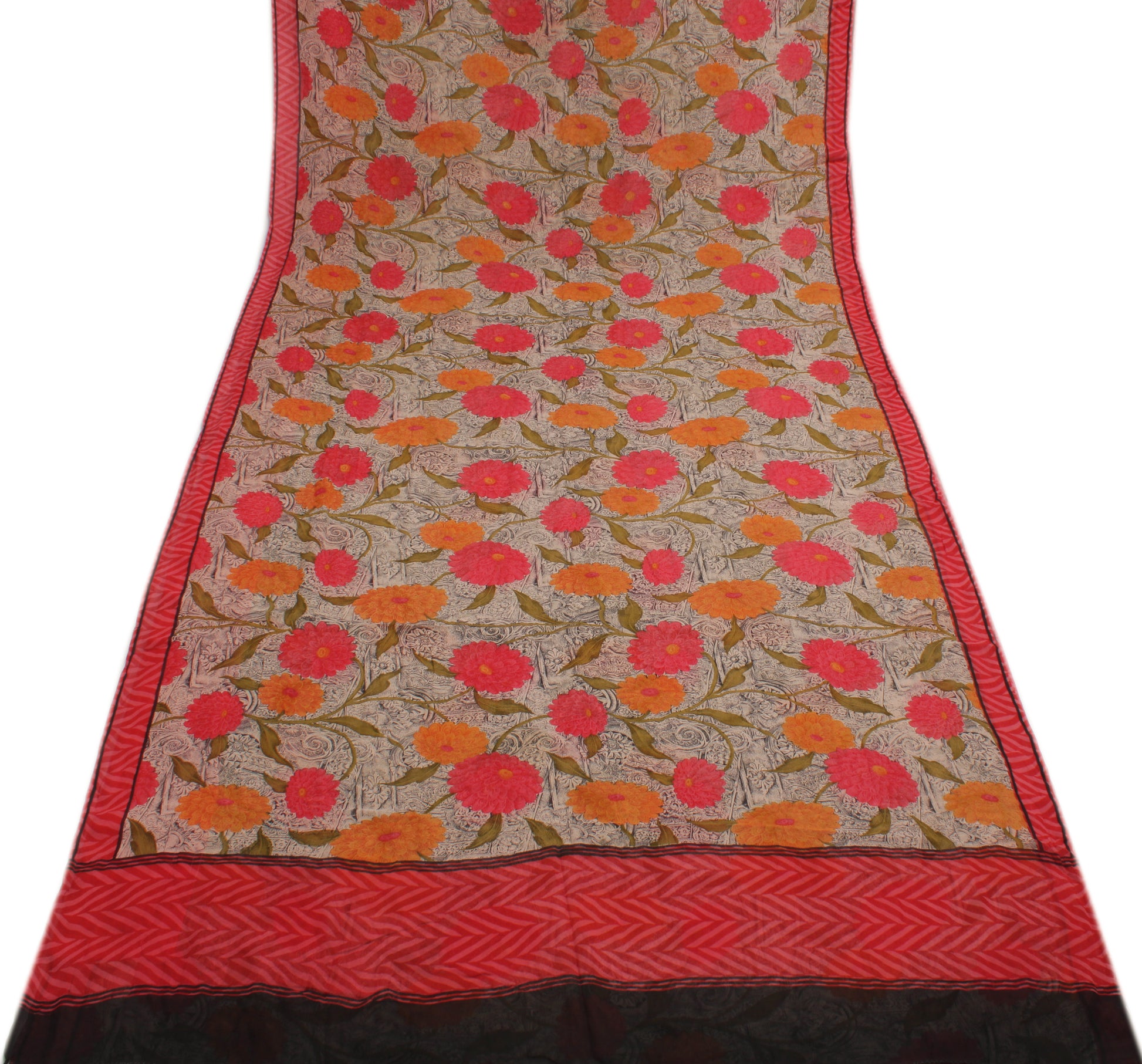 Sushila Vintage Indian Sari 100% Pure Georgette Silk Printed Floral Craft Fabric