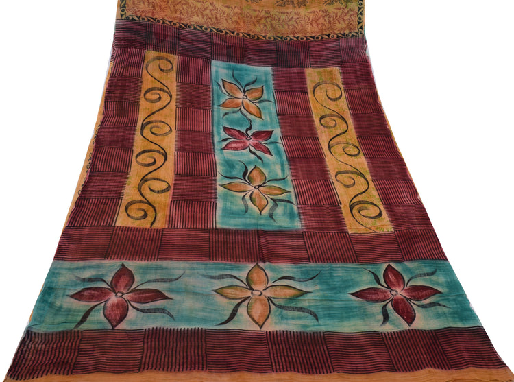 Sushila Vintage Indian Sari 100% Pure Georgette Silk Printed Floral Craft Fabric