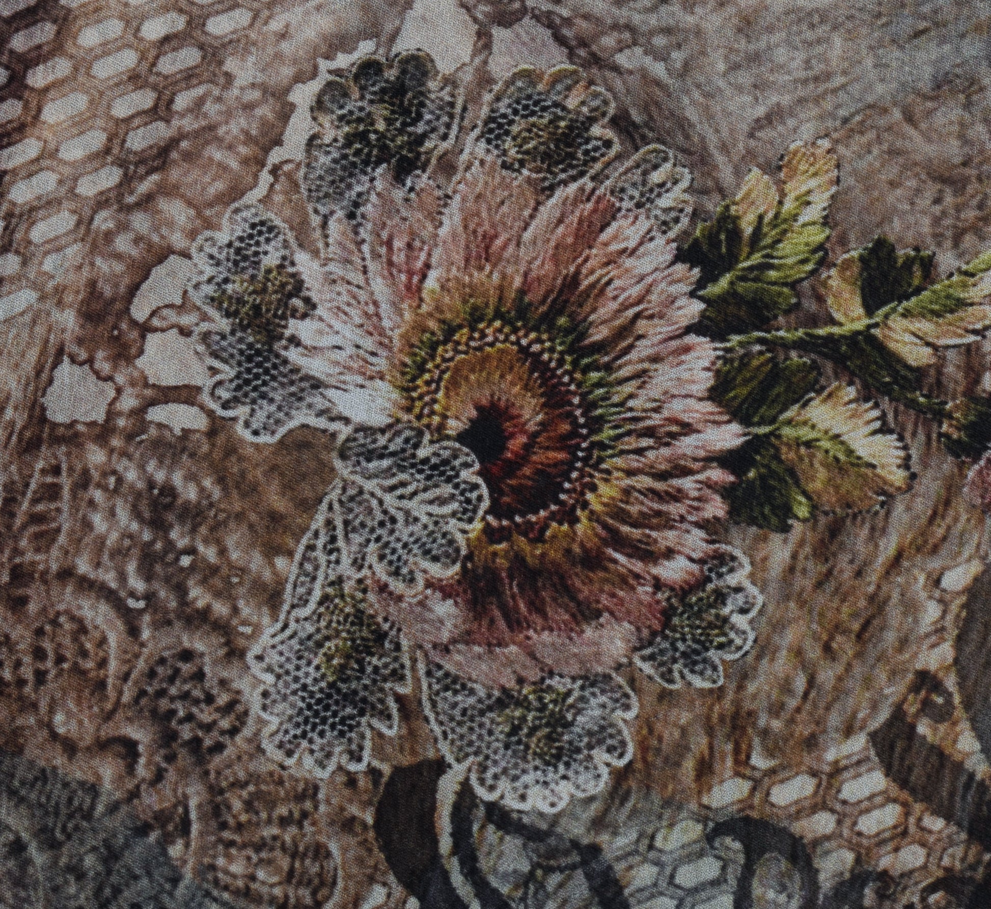 Sushila Vintage Indian Sari Blend Georgette Silk Printed Floral Craft Fabric