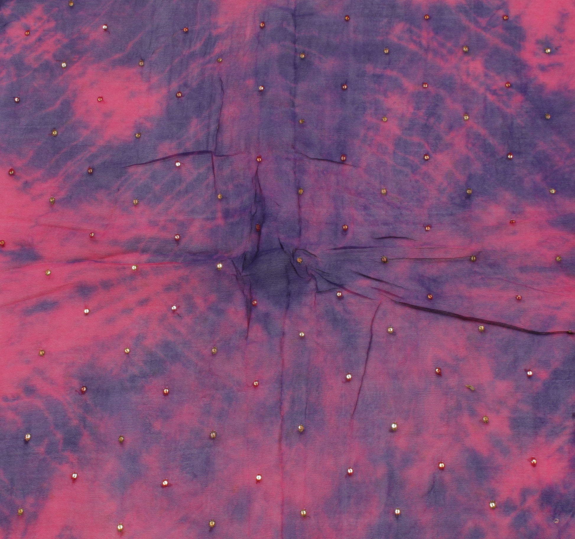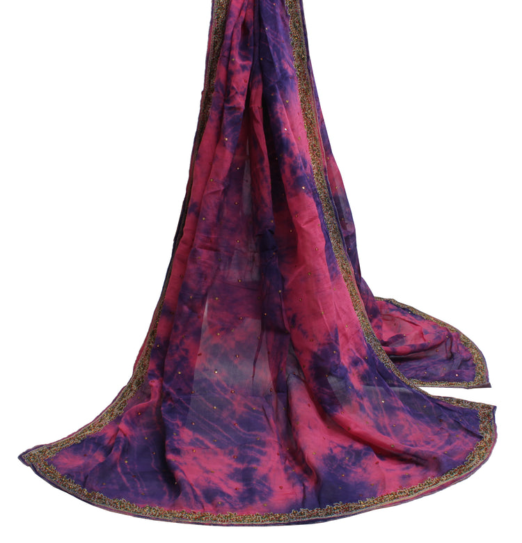 Sushila Vintage Indian Tie Dye Dupatta Pure Chiffon Silk Hand Beaded Long Stole