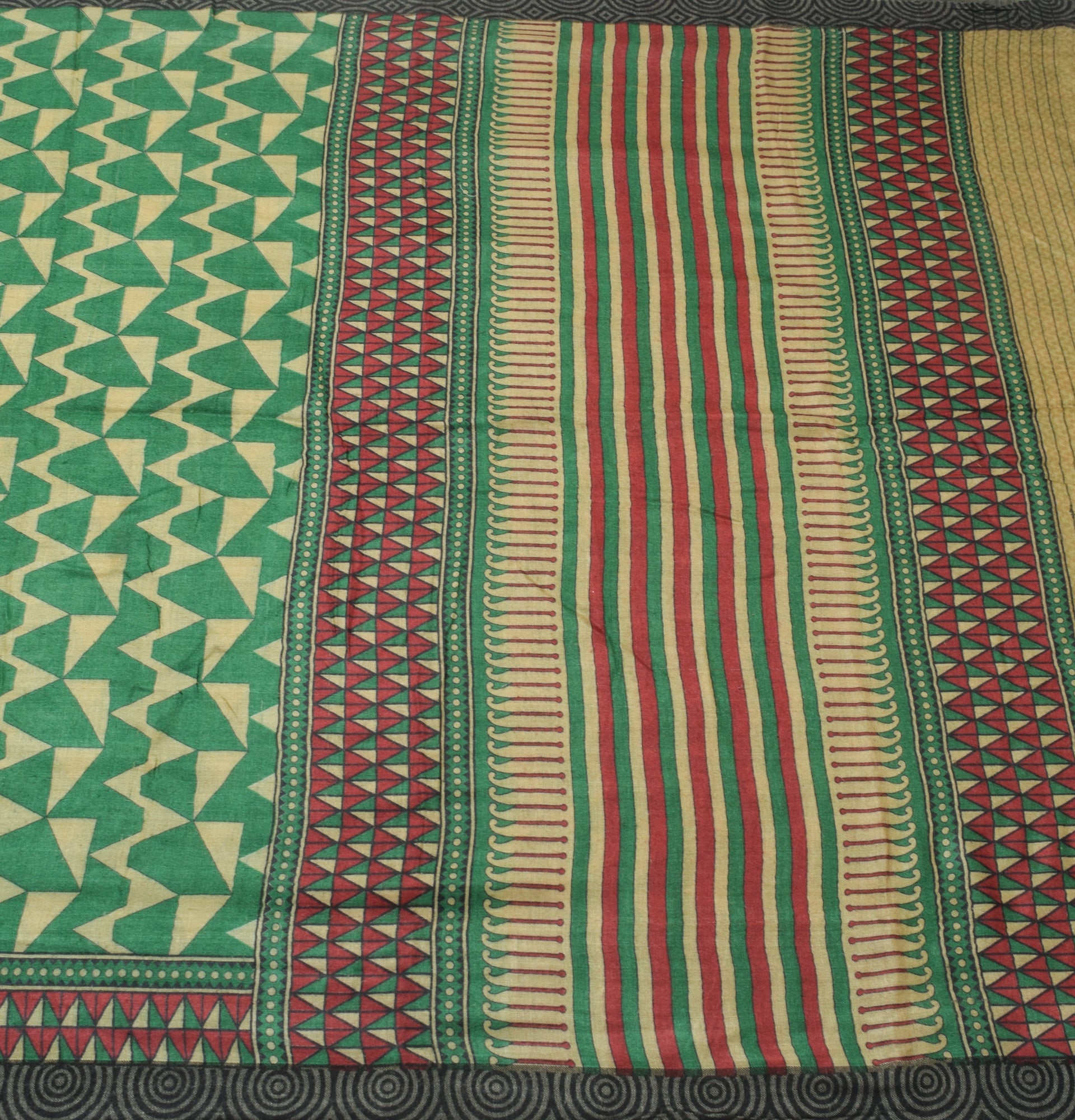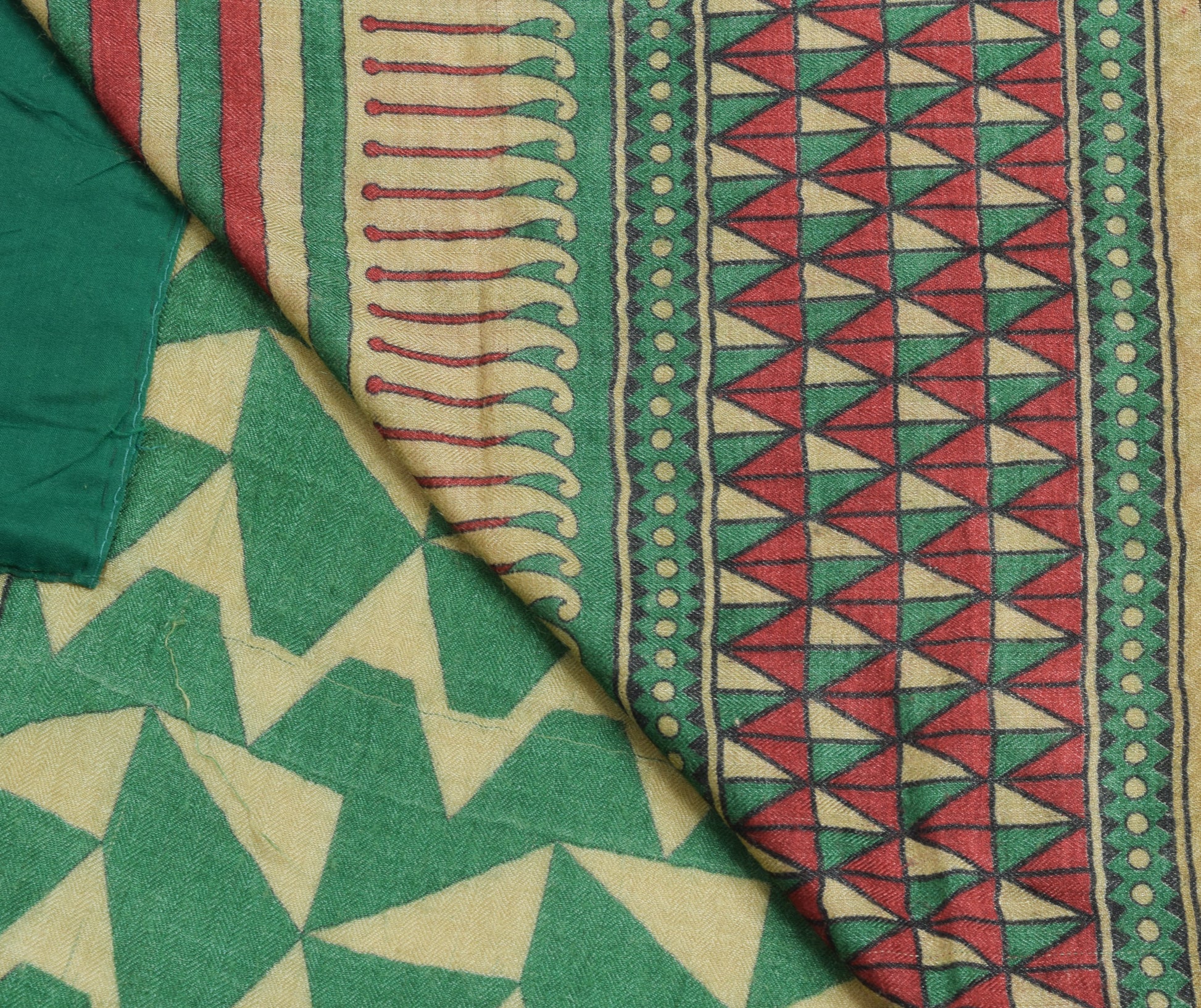 Sushila Vintage Light Brown & Green Saree 100%Pure Woolen Woven Soft Sari Fabric