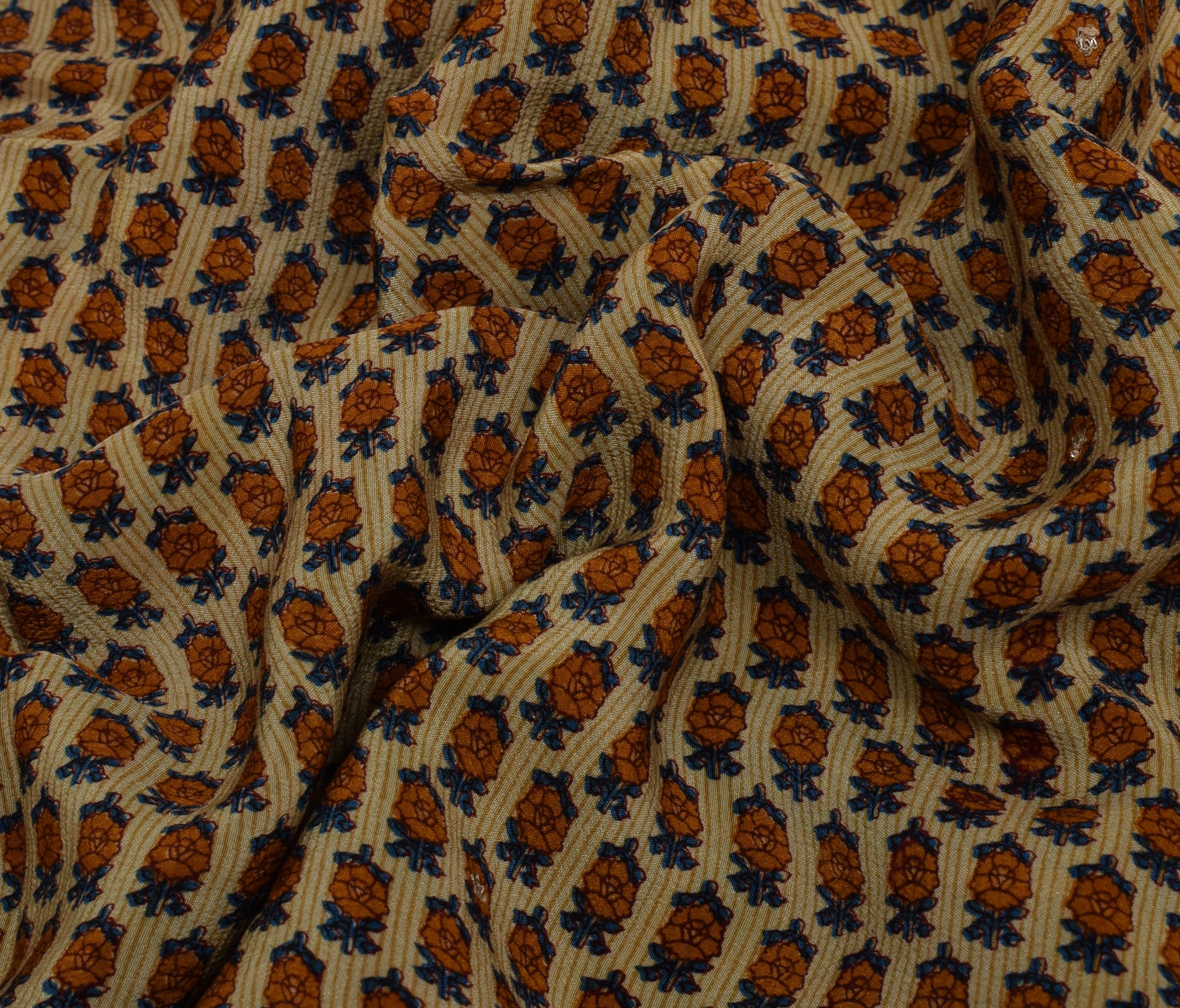 Embrace traditional sophistication in this light brown 100% pure crepe silk saree, showcasing timeless floral patterns and elegant printed embellishments. Crafted from pure, breathable 100% pure crepe silk, this sarI boasts a luxurious drape and enduring appeal. Measuring roughly 184 inch in length and 42 inch in width, it offers versatile styling—whether worn traditionally or repurposed into bespoke dresses, home décor, or creative crafts. Weighing about 434 grams (actual product weight), it falls gracefully, making it ideal for anyone who appreciates the charm of vintage textiles.