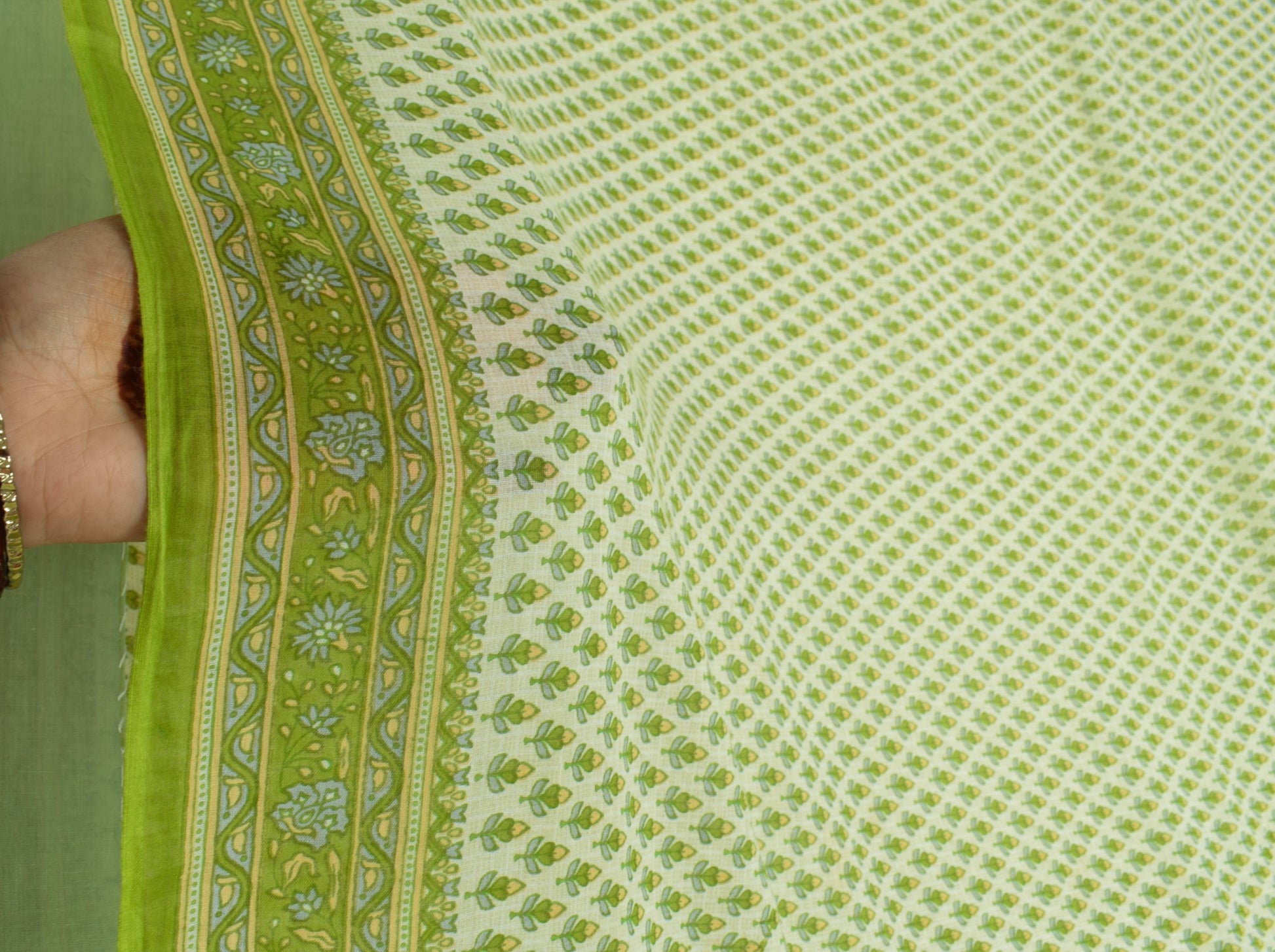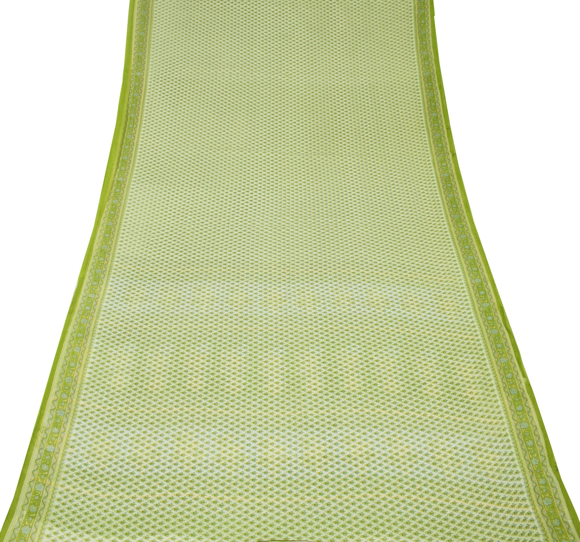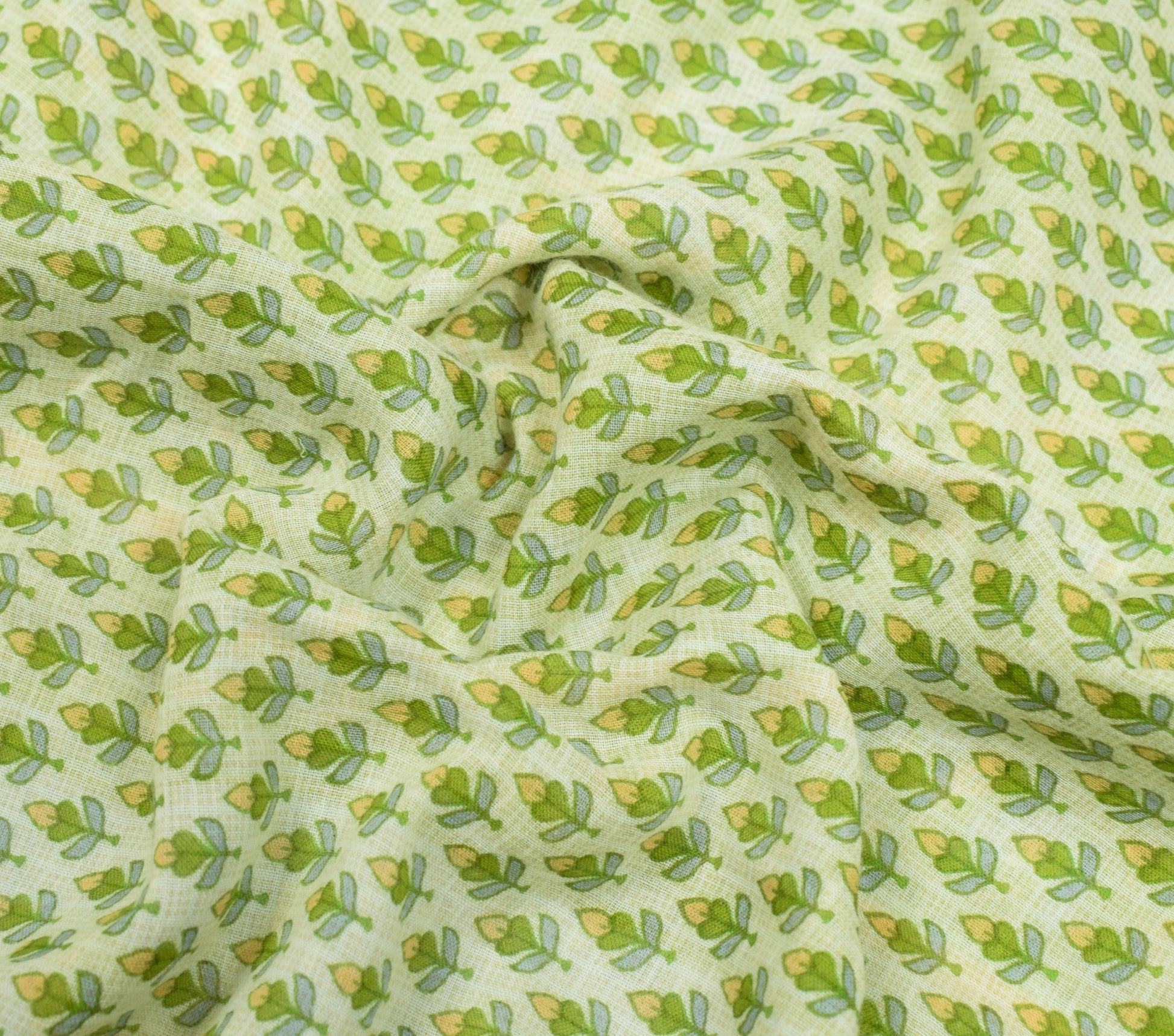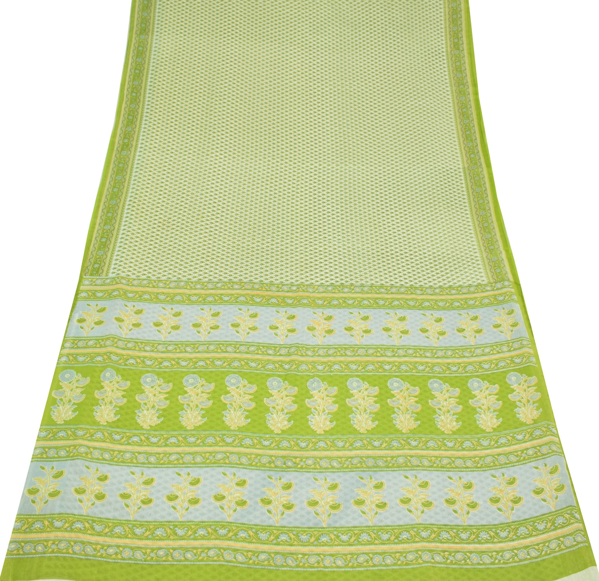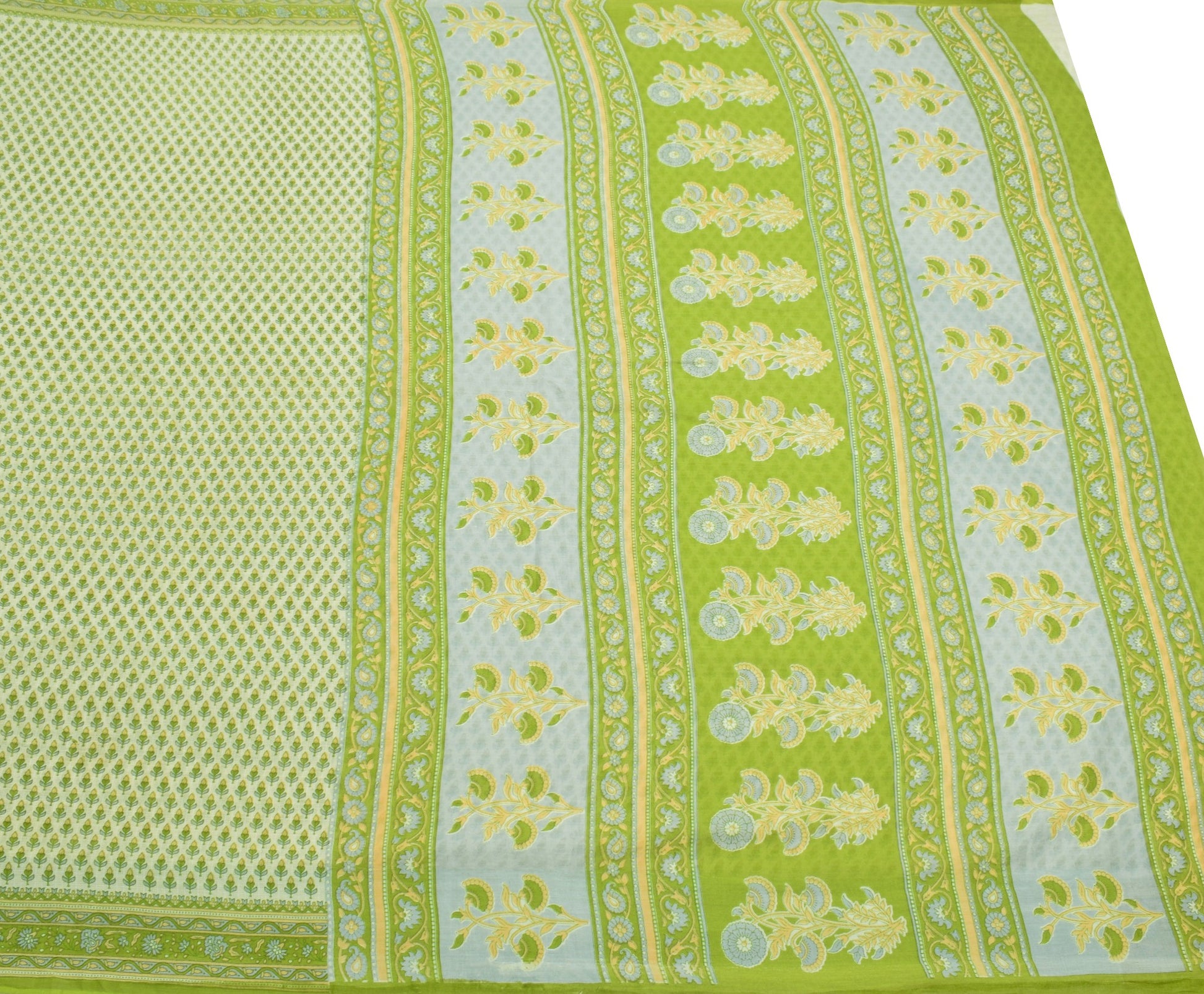 Sushila Vintage Light Green Saree Pure Cotton Printed Floral Soft Craft Fabric
