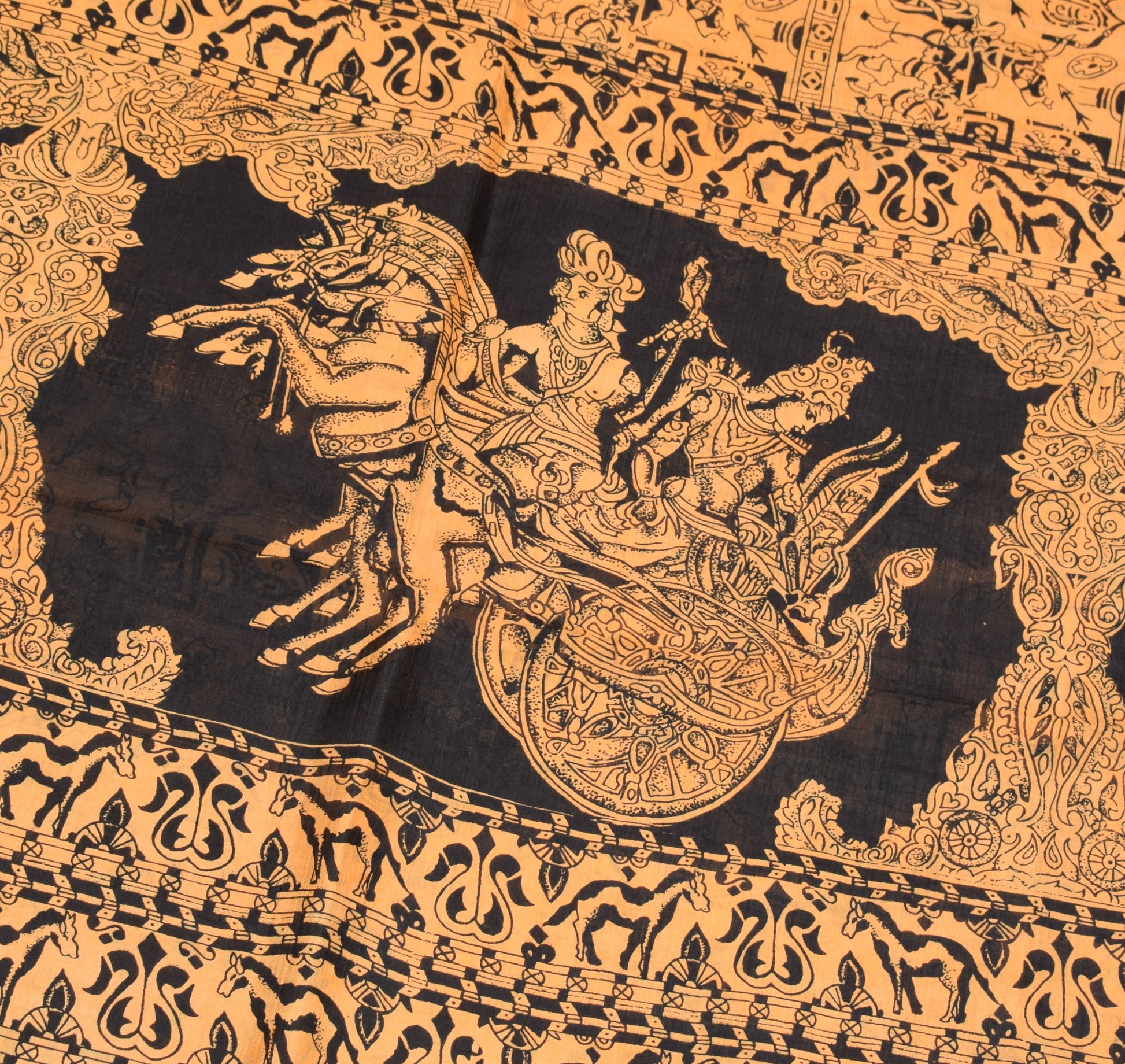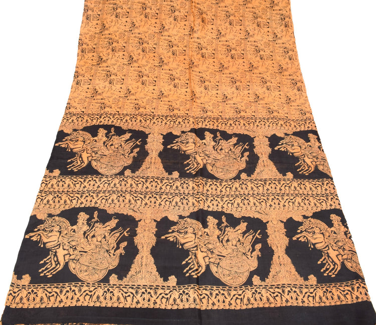Sushila Vintage Light Orange Saree Pure Silk Mythology Print Sari Craft Fabric