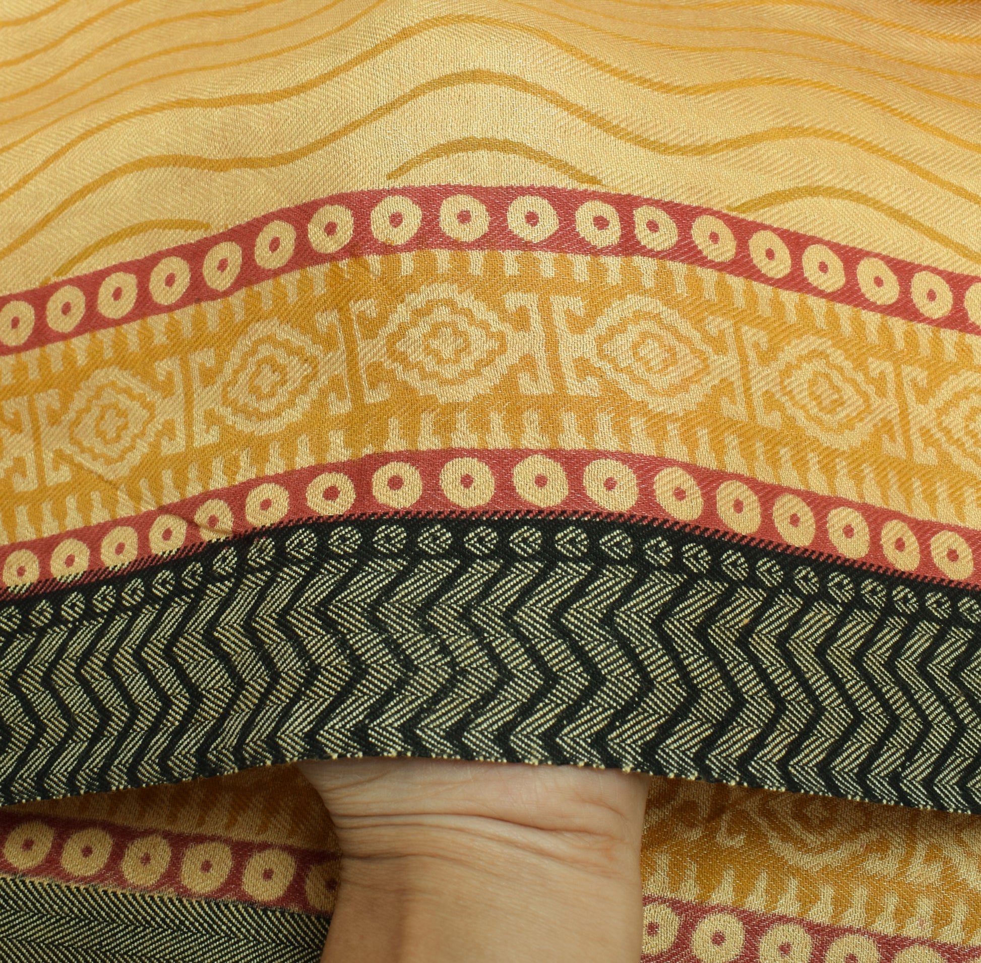 Sushila Vintage Light Yellow Dupatta 100% Pure Woolen Woven Laheriya Long Stole