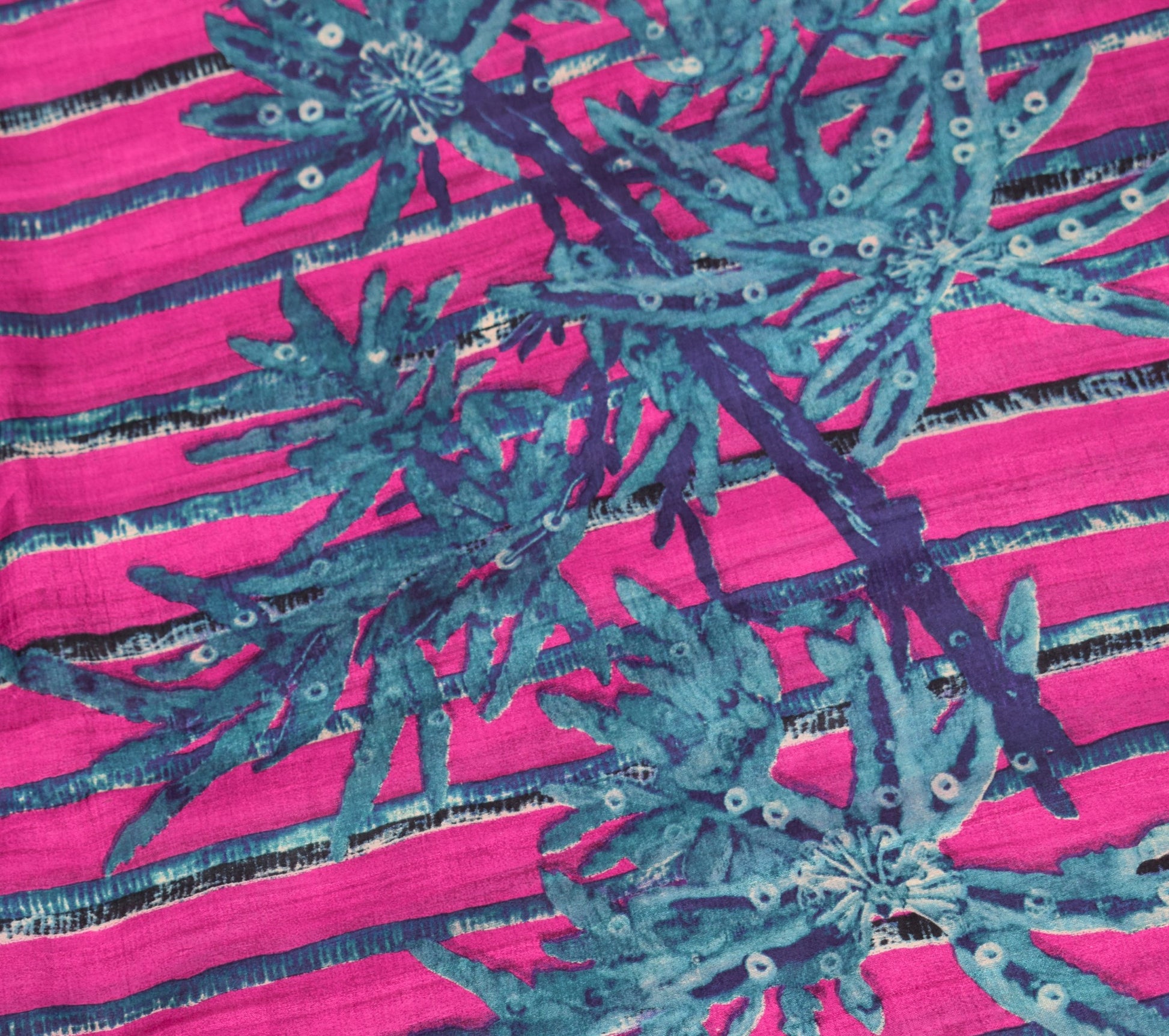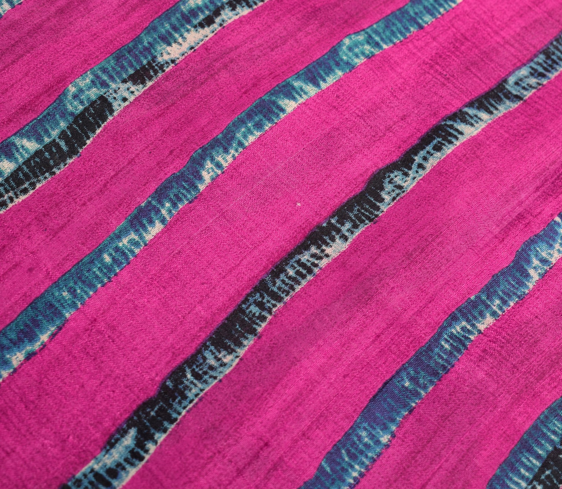 Sushila Vintage Magenta 6 Yard Saree Pure Silk Stripes Printed Soft Craft Fabric