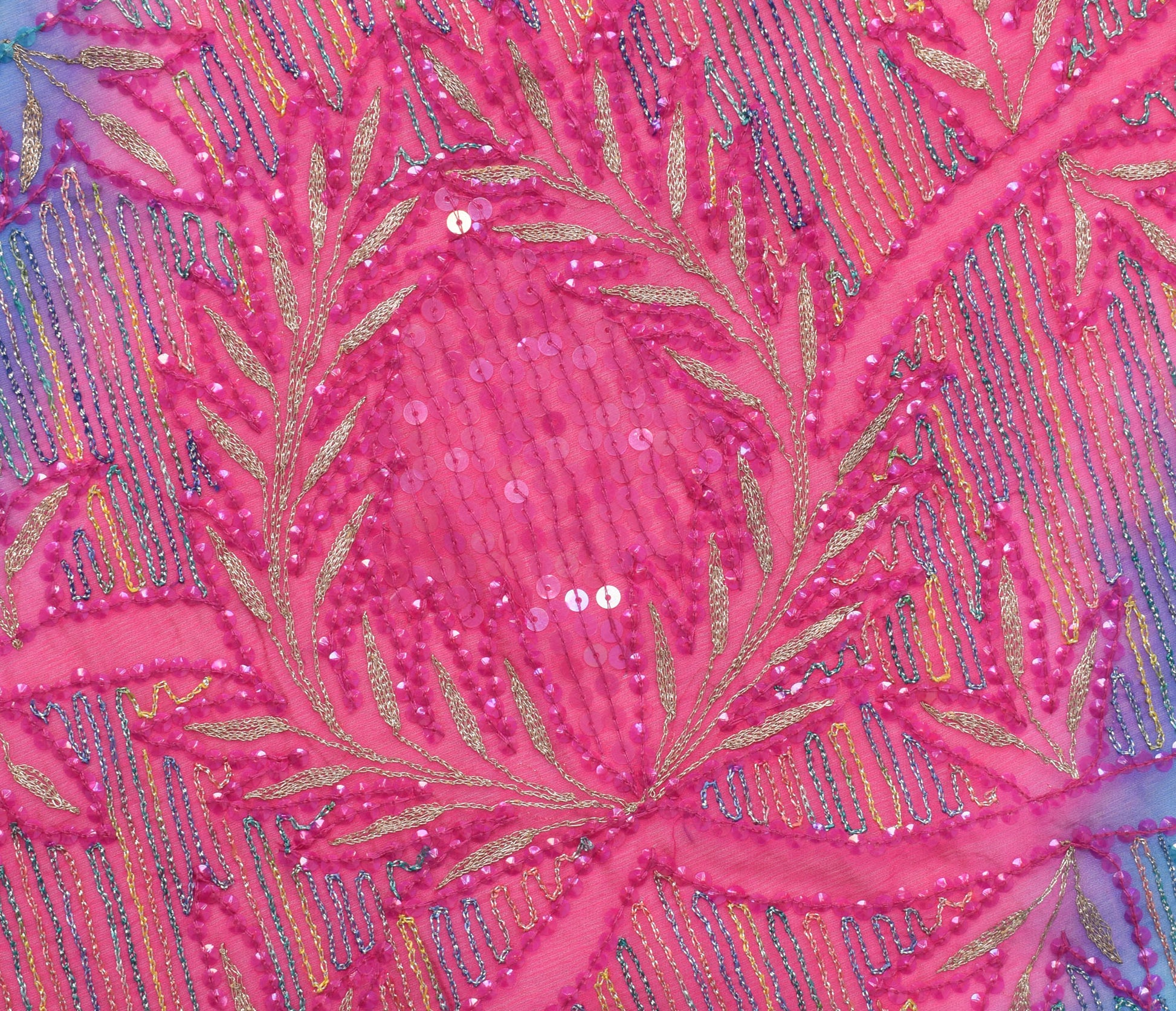 Add a touch of cultural heritage to your collection with this vibrant Magenta & Blue Floral Dupatta, Scarf, Indian Long Stole, Veil, or Hijab, perfect for festive occasions. Made from premium Blend Chiffon Silk, this piece features intricate Sequins Work & Embroidered work, adding a touch of traditional charm to any outfit. The Magenta & Blue base beautifully complements the delicate Floral detailing, creating a truly timeless accessory.