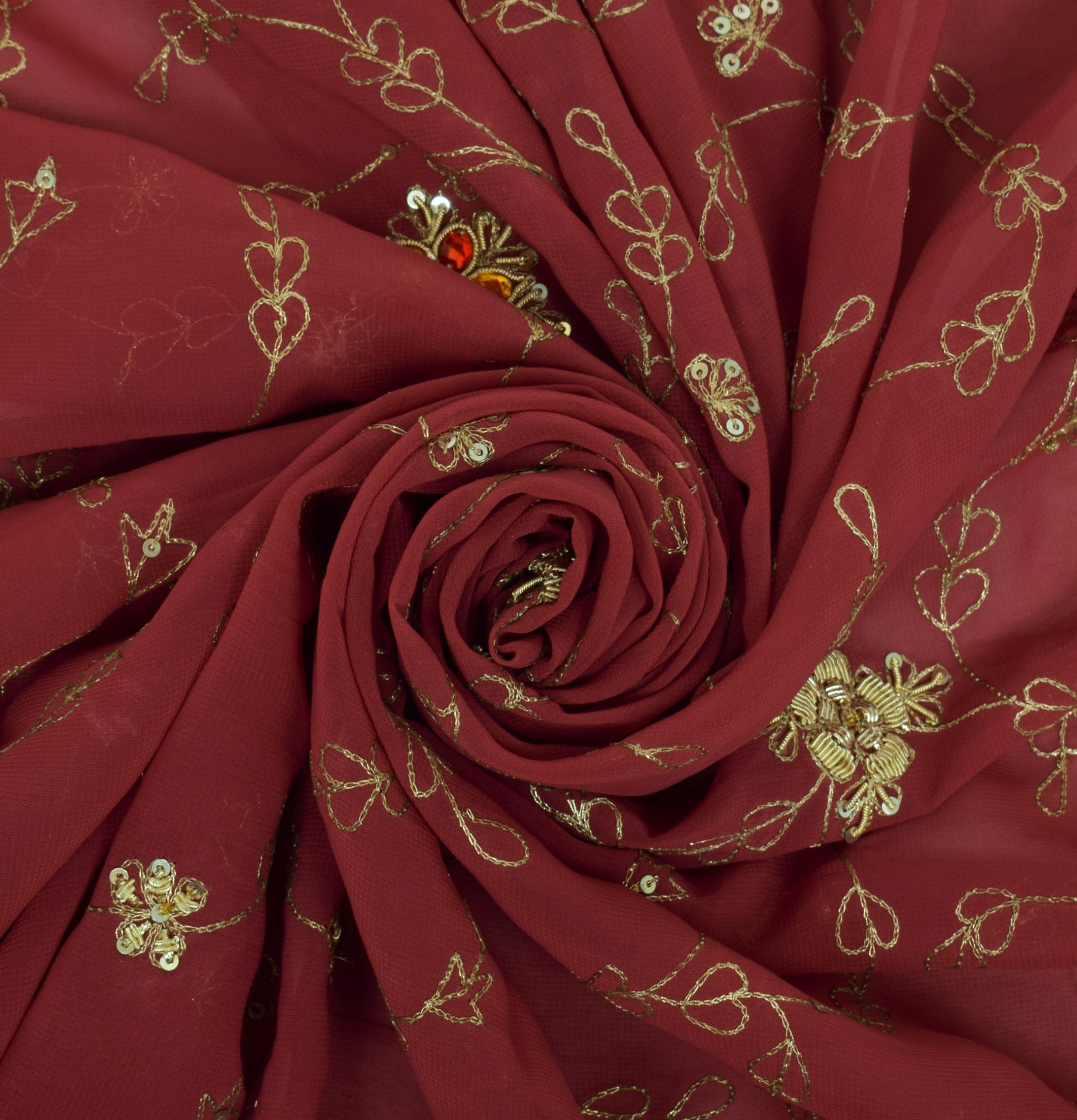 Elevate your style with this intricately crafted Magenta Floral Dupatta, Scarf, Indian Long Stole, Veil, or Hijab, perfect for special occasions and everyday elegance. Made from premium Blend Georgette Silk, this piece features intricate Hand Beaded Zardozi Work, Sequins Work, Rhine Stone & Zari Embroidered work, adding a touch of traditional charm to any outfit. The Magenta base beautifully complements the delicate Floral detailing, creating a truly timeless accessory.