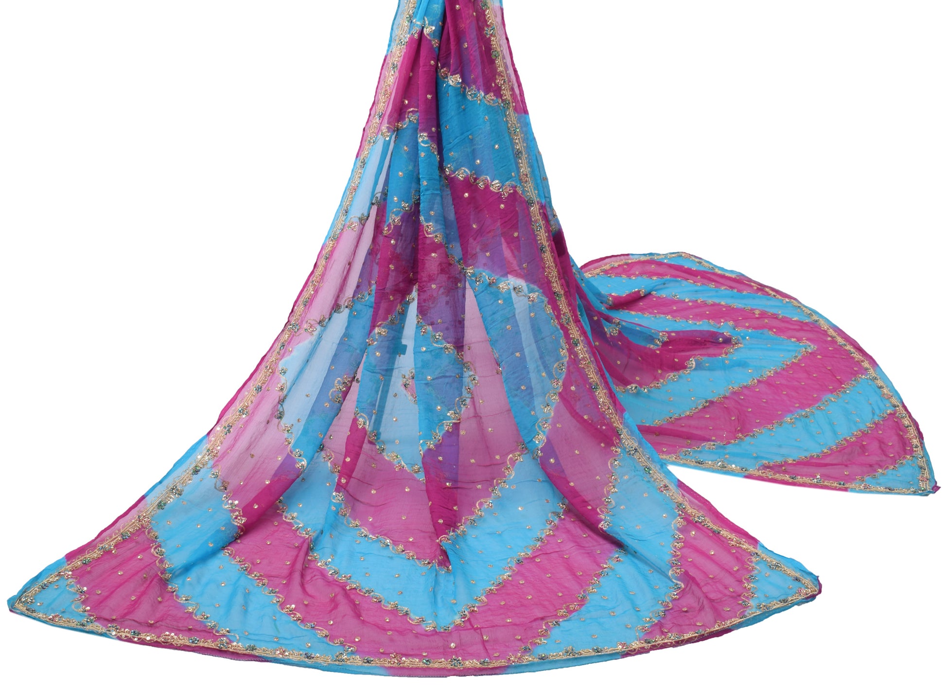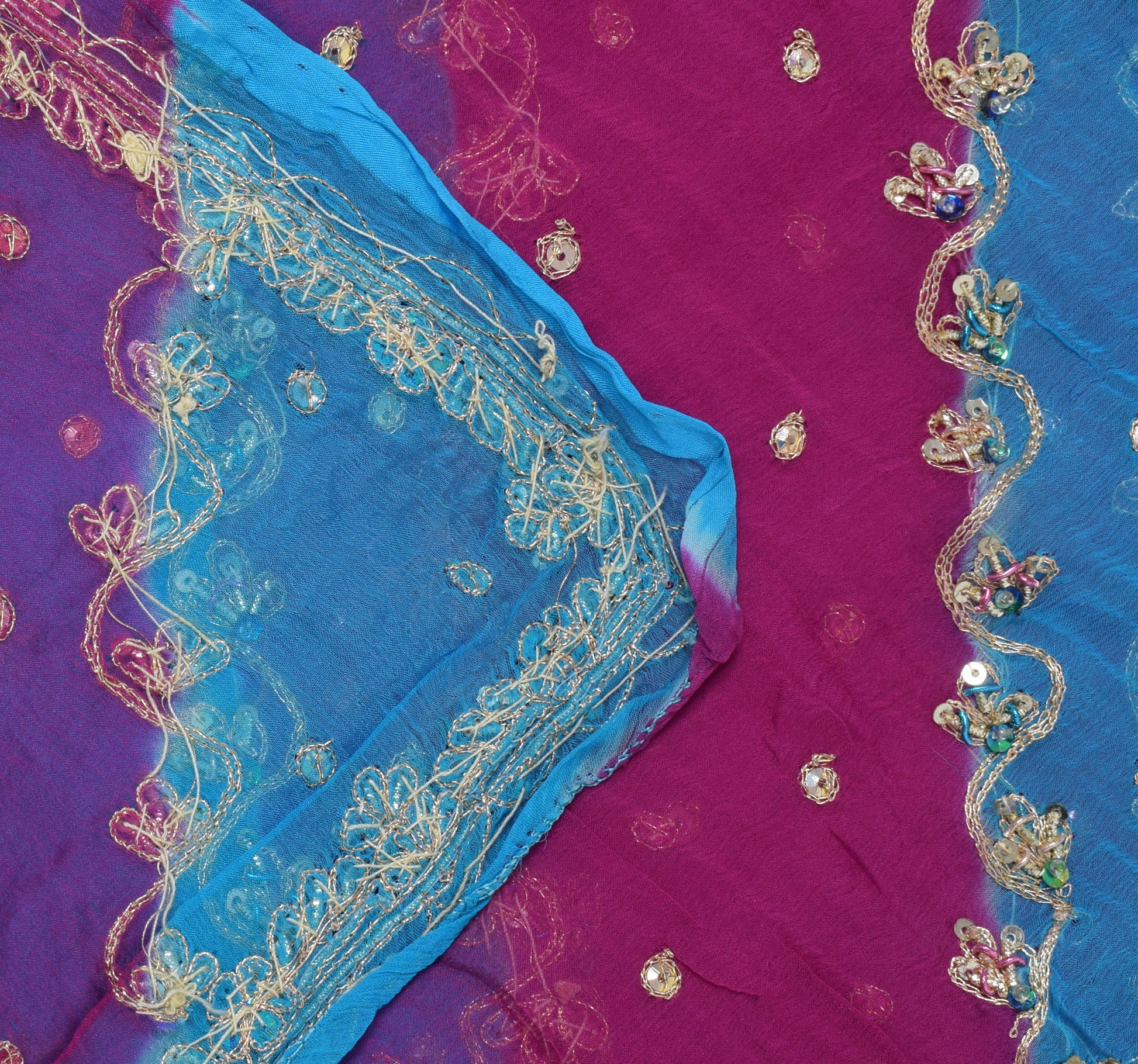 Elevate your style with this intricately crafted Magenta & Blue Floral Dupatta, Scarf, Indian Long Stole, Veil, or Hijab, perfect for special occasions and everyday elegance. Made from premium Pure Chiffon Silk, this piece features intricate Hand Beaded Zardozi Work & Sequins Embroidered work, adding a touch of traditional charm to any outfit. The Magenta & Blue base beautifully complements the delicate Floral detailing, creating a truly timeless accessory.