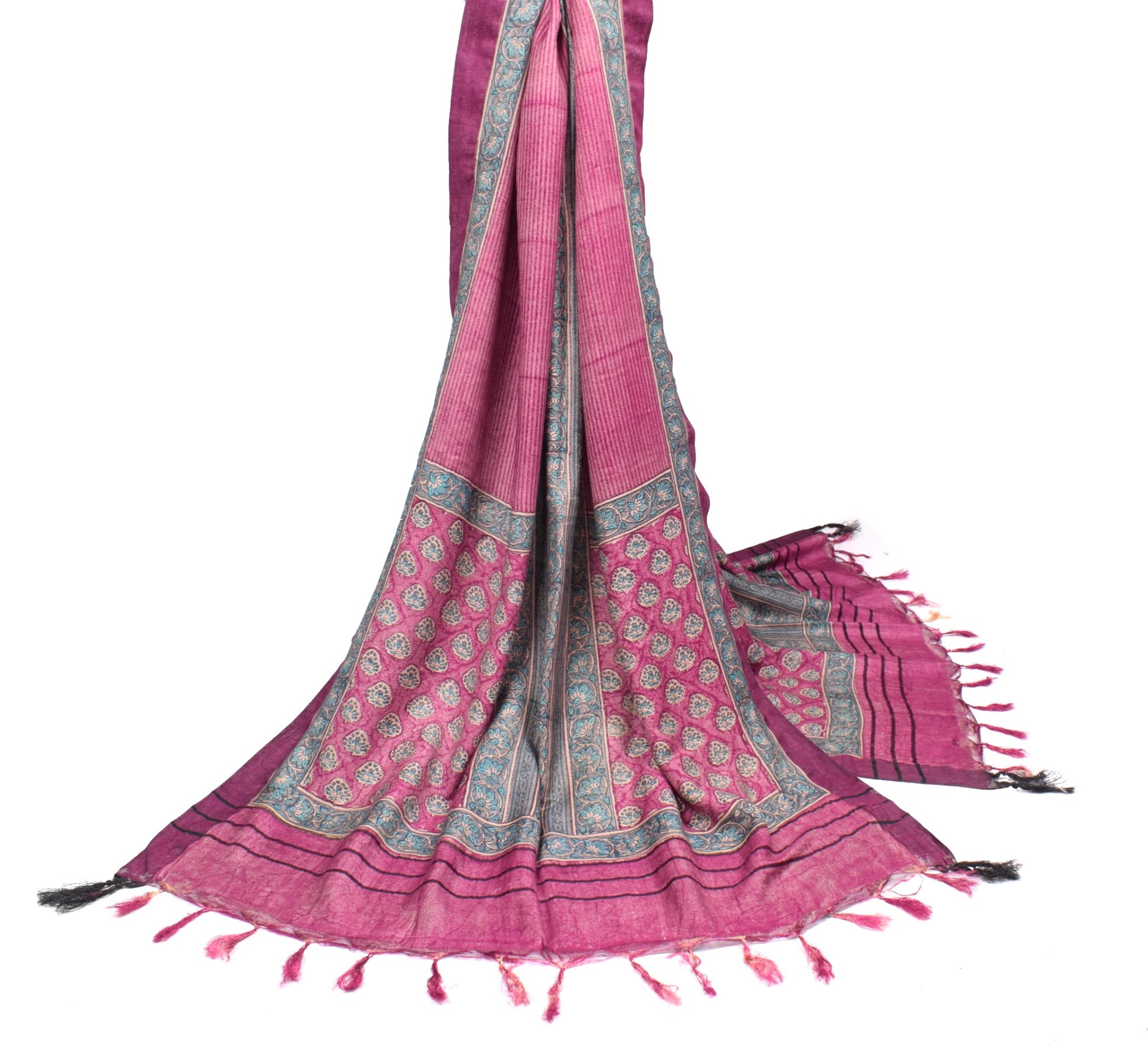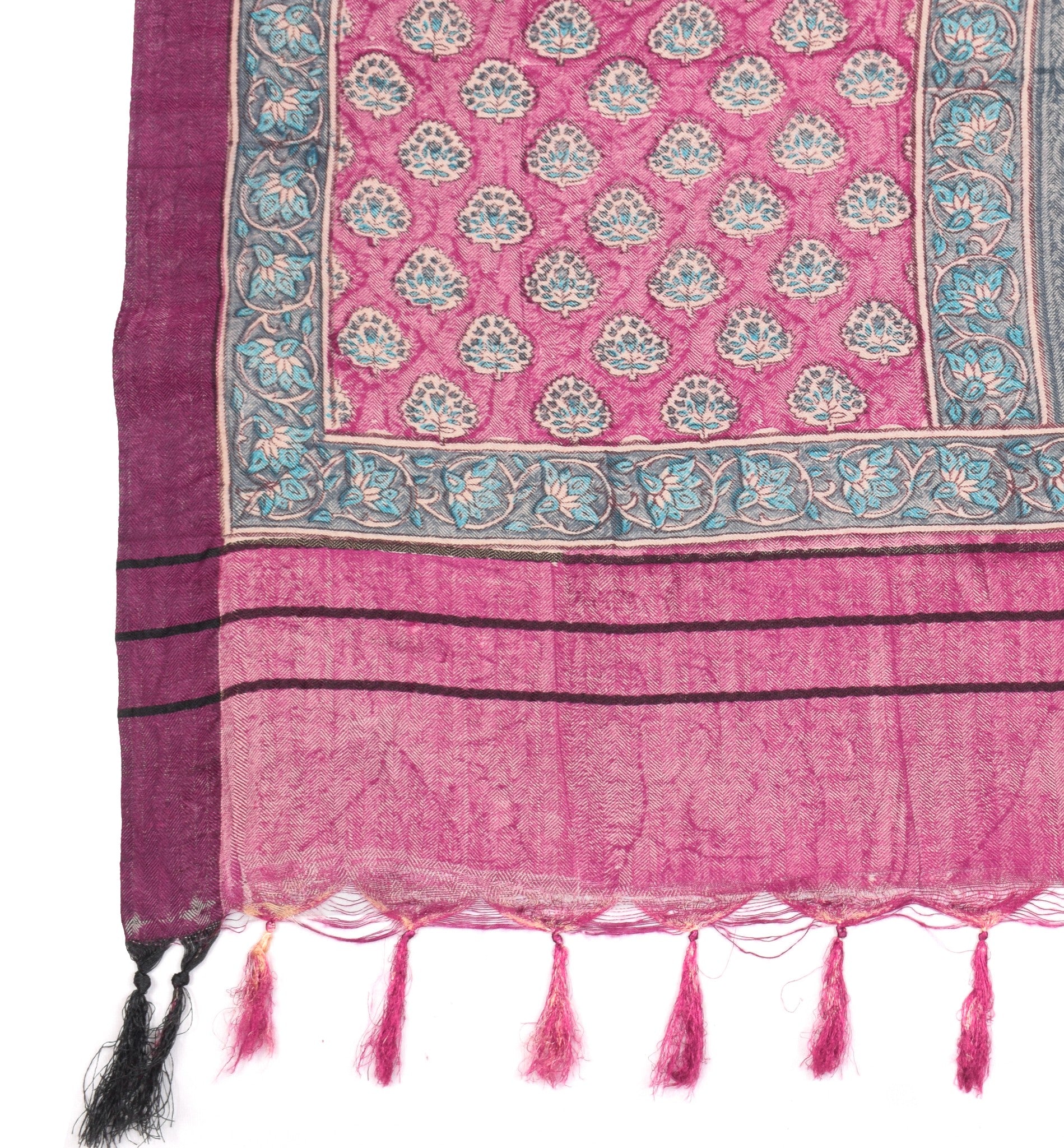 Sushila Vintage Magenta Dupatta Pure Woolen Hand Block Print Soft Long Stole