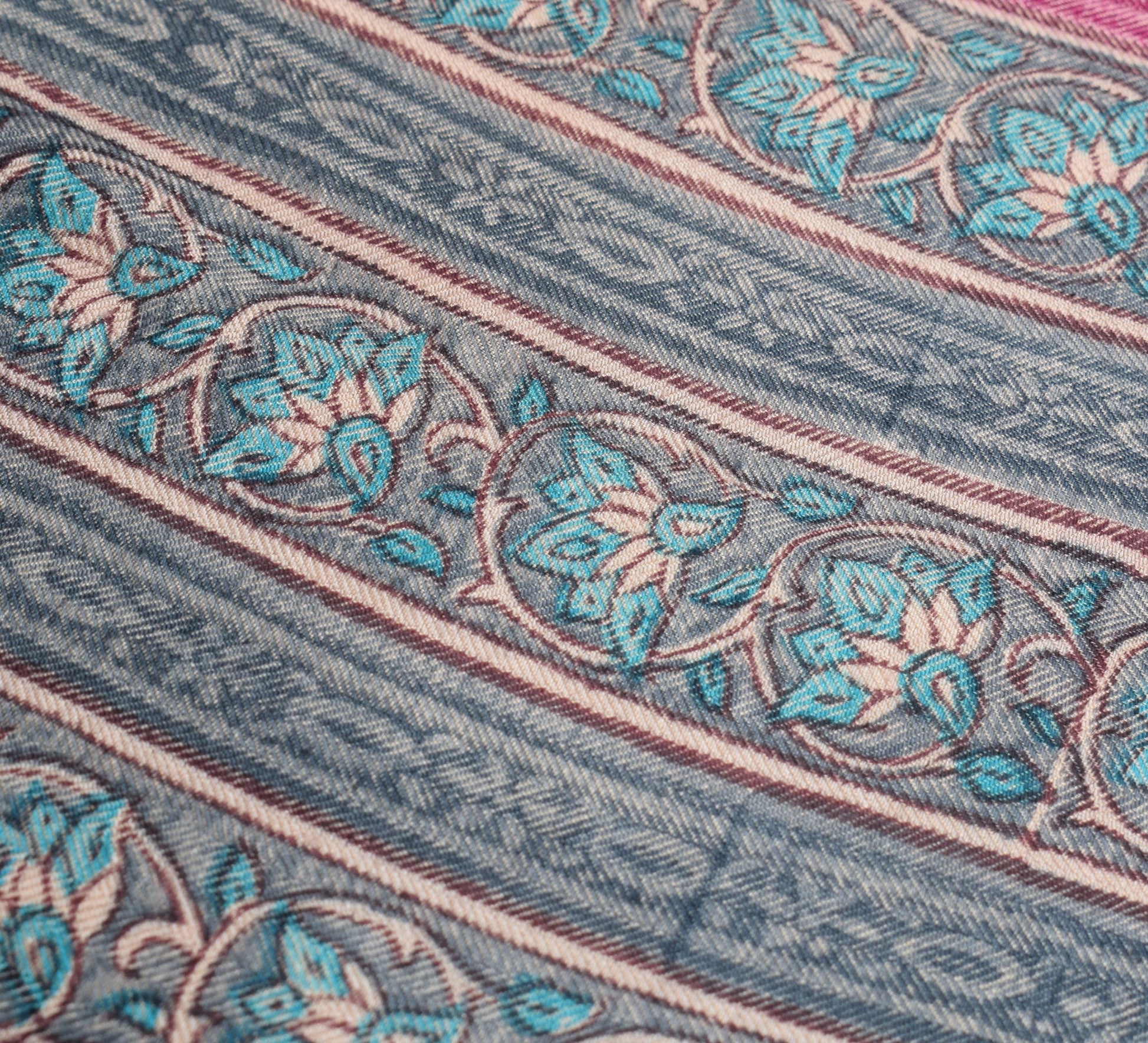 Elevate your ensemble with this exquisite magenta woolen dupatta, a fusion of warmth and artistry. Hand block printed with delicate floral motifs and woven with care, it showcases the timeless charm of traditional craftsmanship. Made from 100% pure wool, its generous 94" x 34" size wraps you in cozy elegance, while the rich magenta hue adds a bold pop to any outfit. Lightweight yet substantial at 230g, this pre-loved piece carries a story—perfect for those who appreciate heritage with a touch of flair