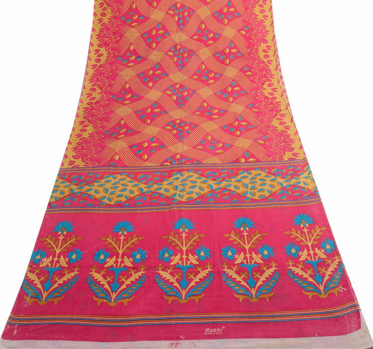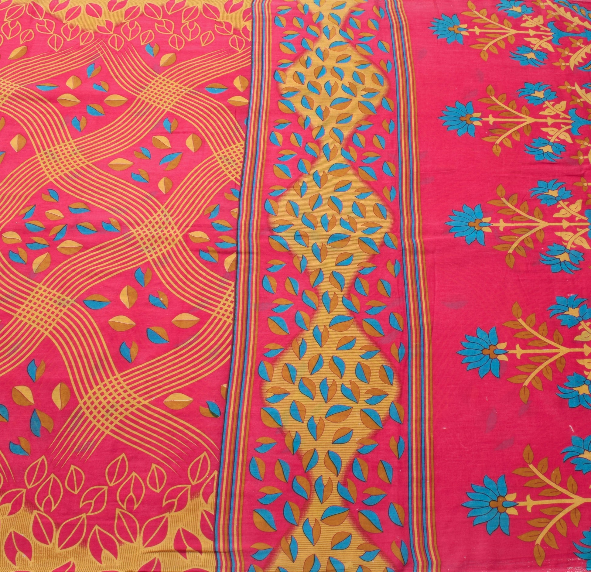 Sushila Vintage Magenta Floral Saree 100% Pure Cotton Printed Soft Craft Fabric