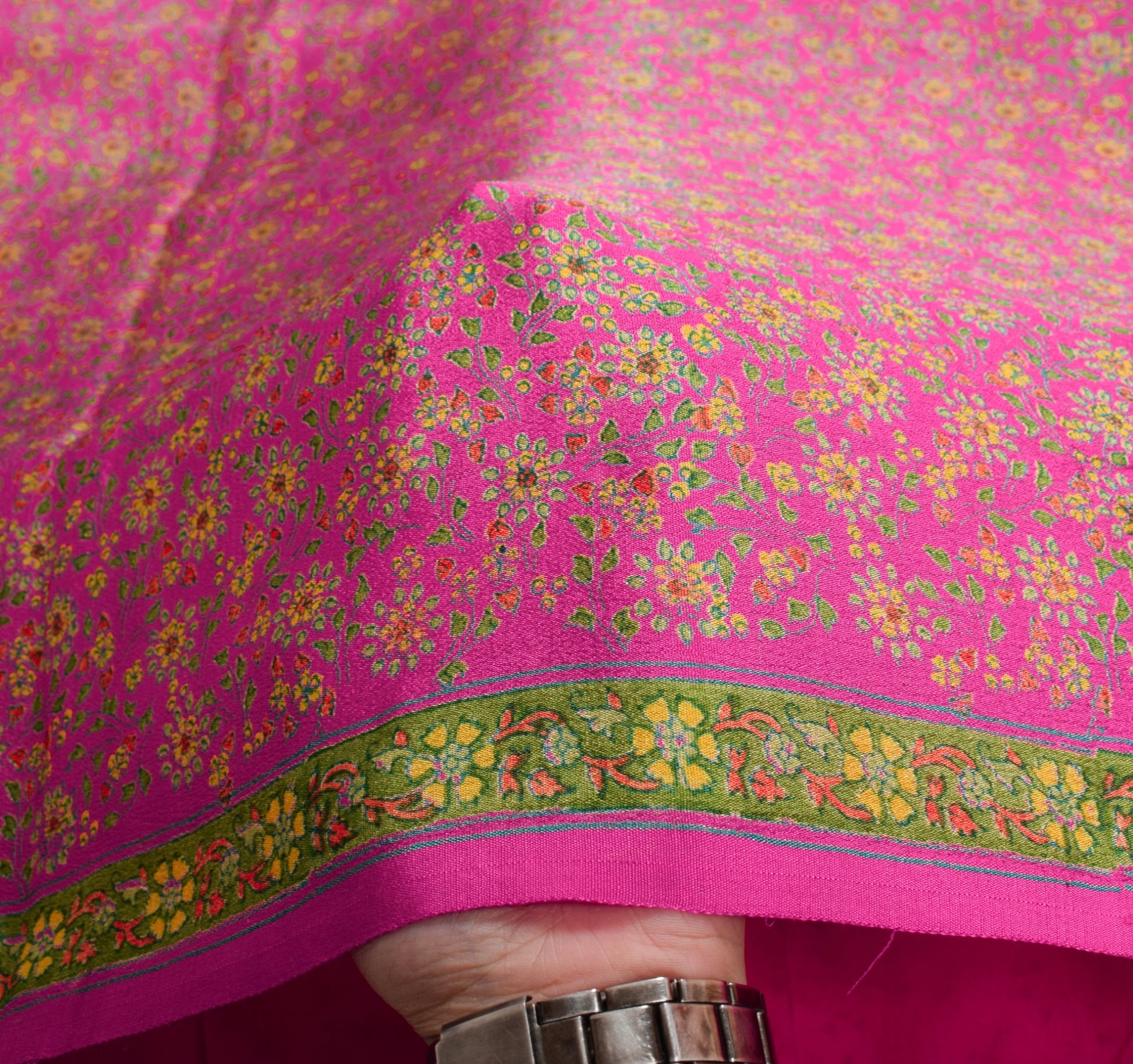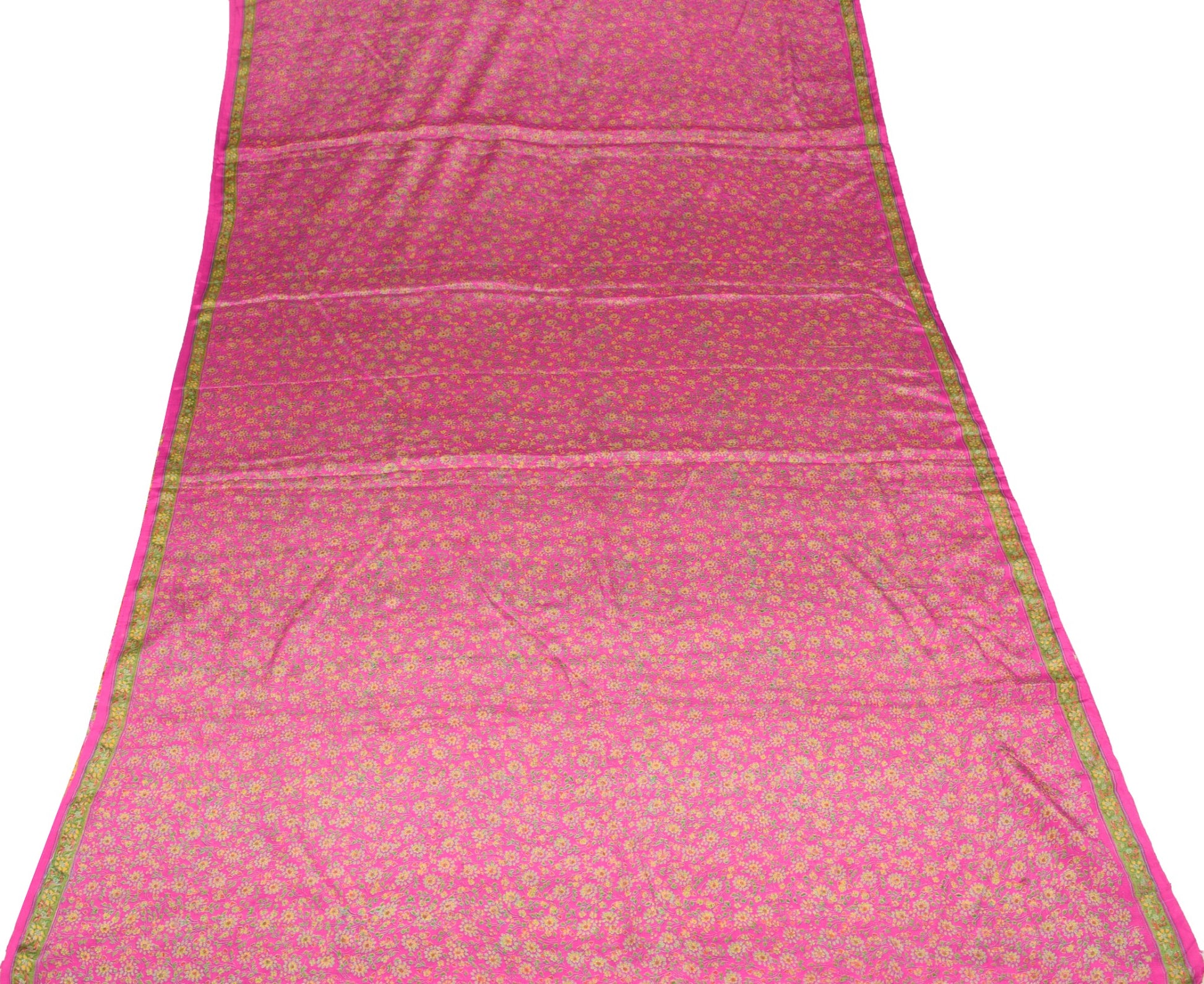 Sushila Vintage Magenta Floral Saree 6 Yard Pure Silk Printed Soft Craft Fabric