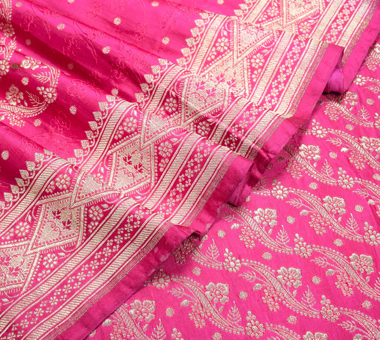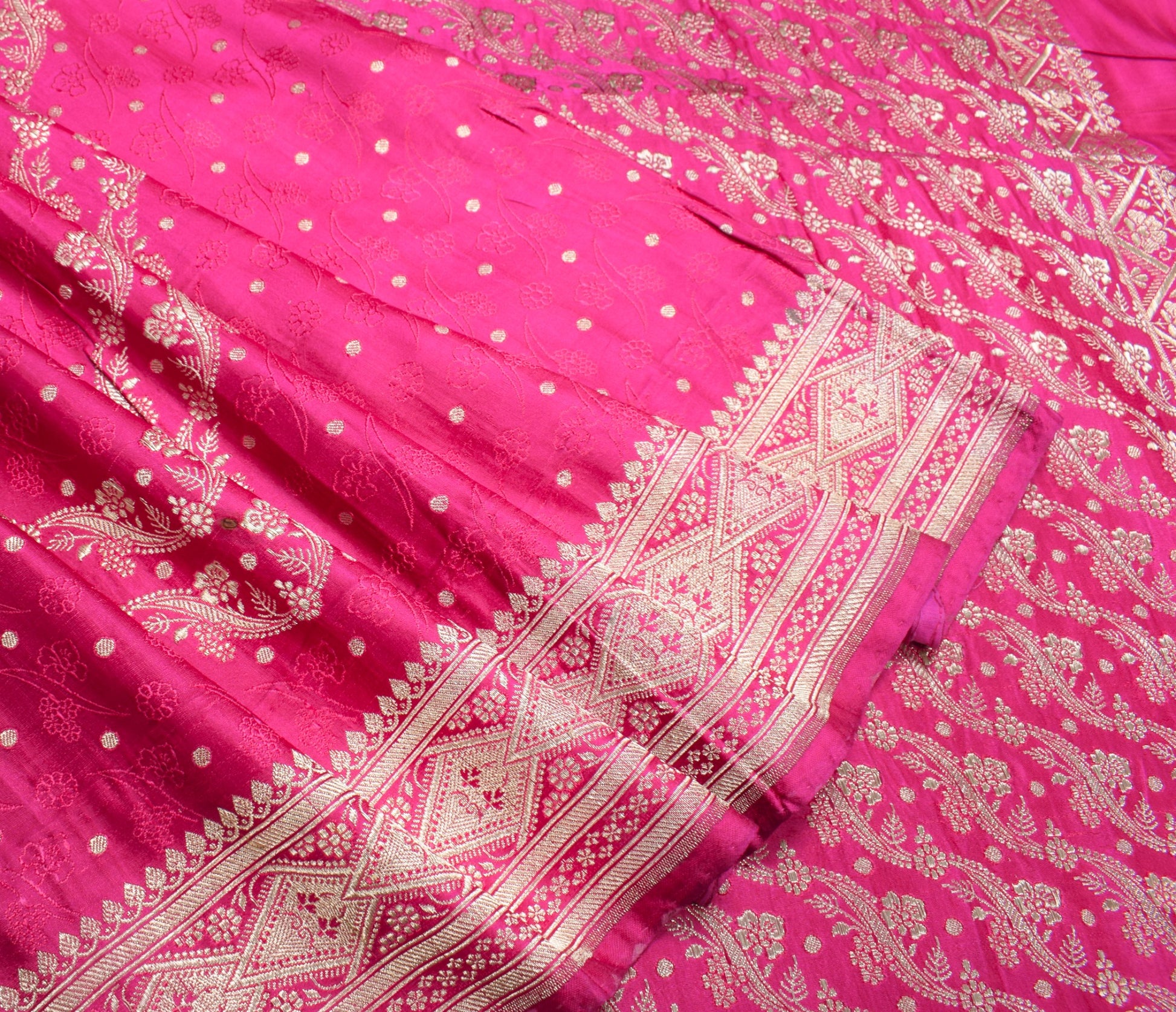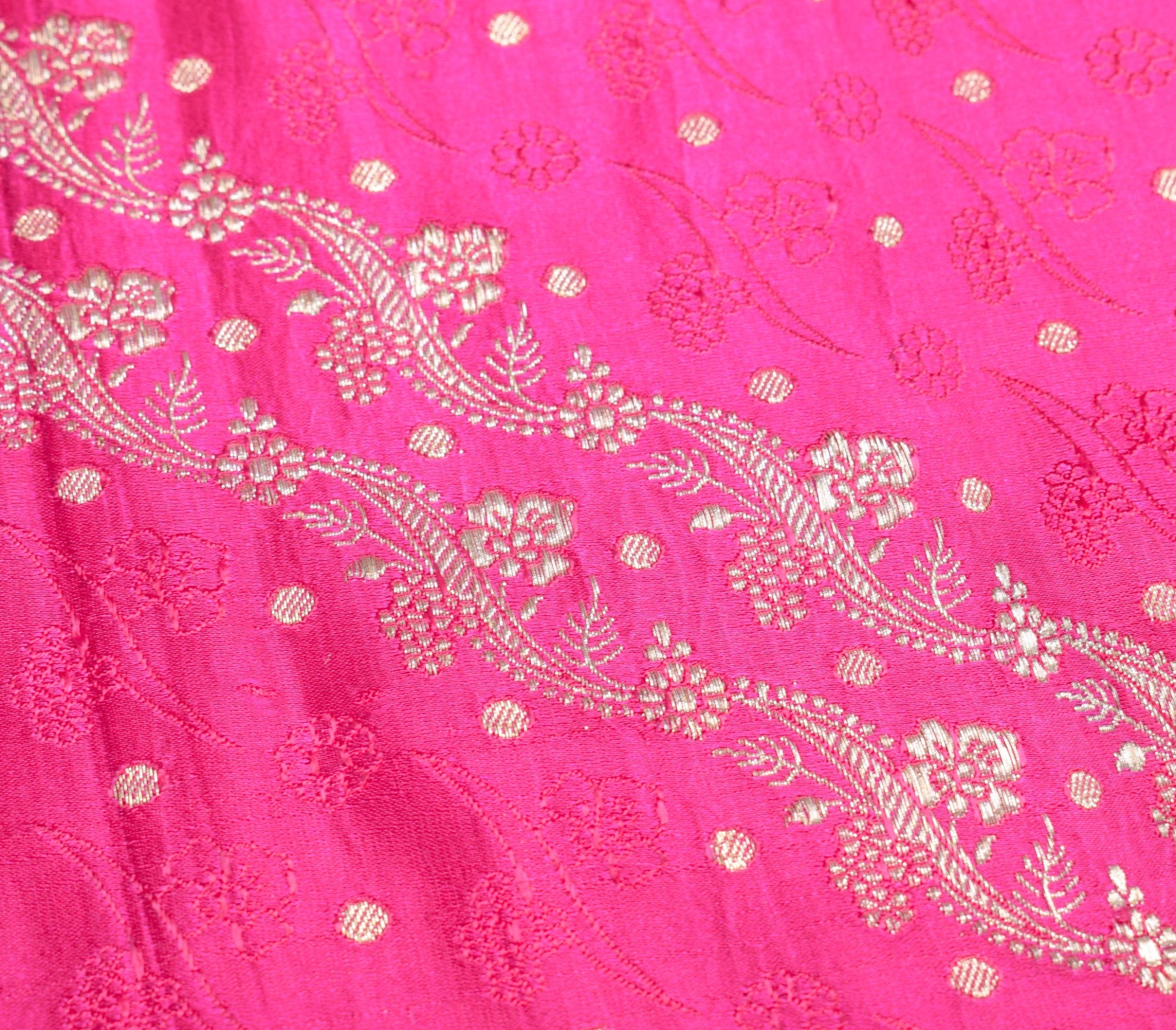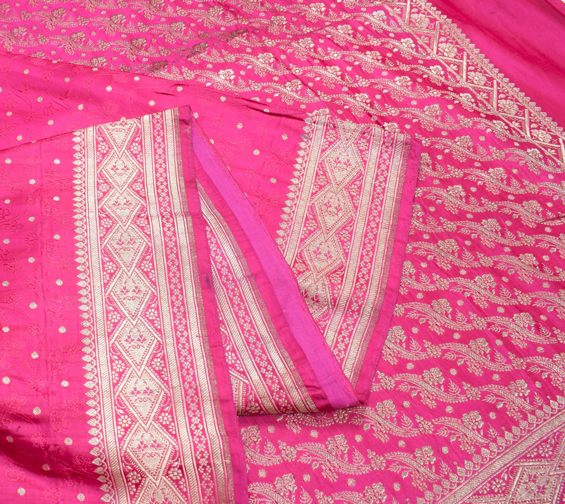 Sushila Vintage Magenta Heavy Saree Pure Satin Silk Brocade Banarasi Sari Fabric