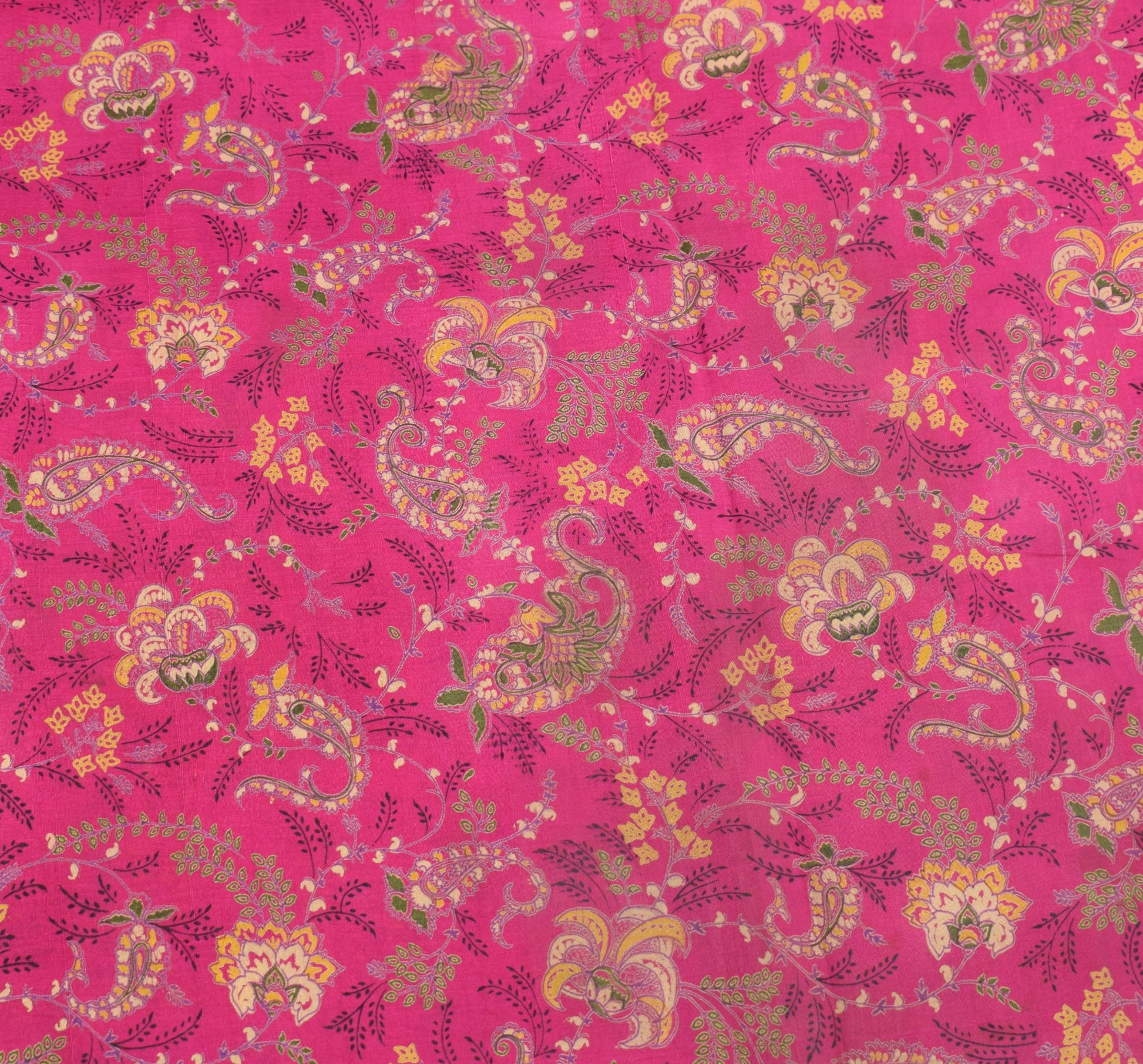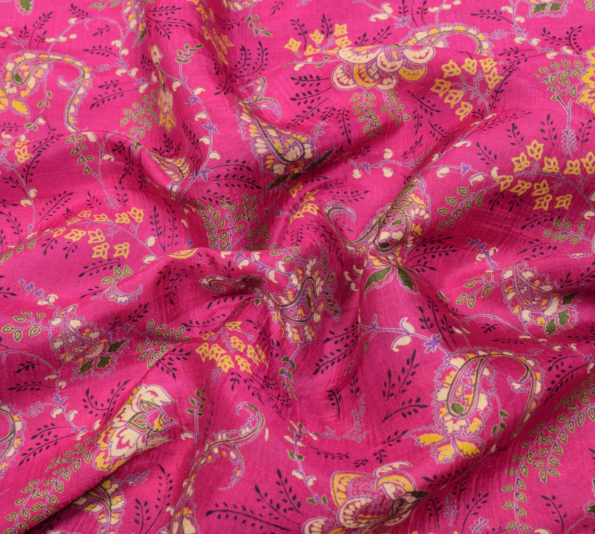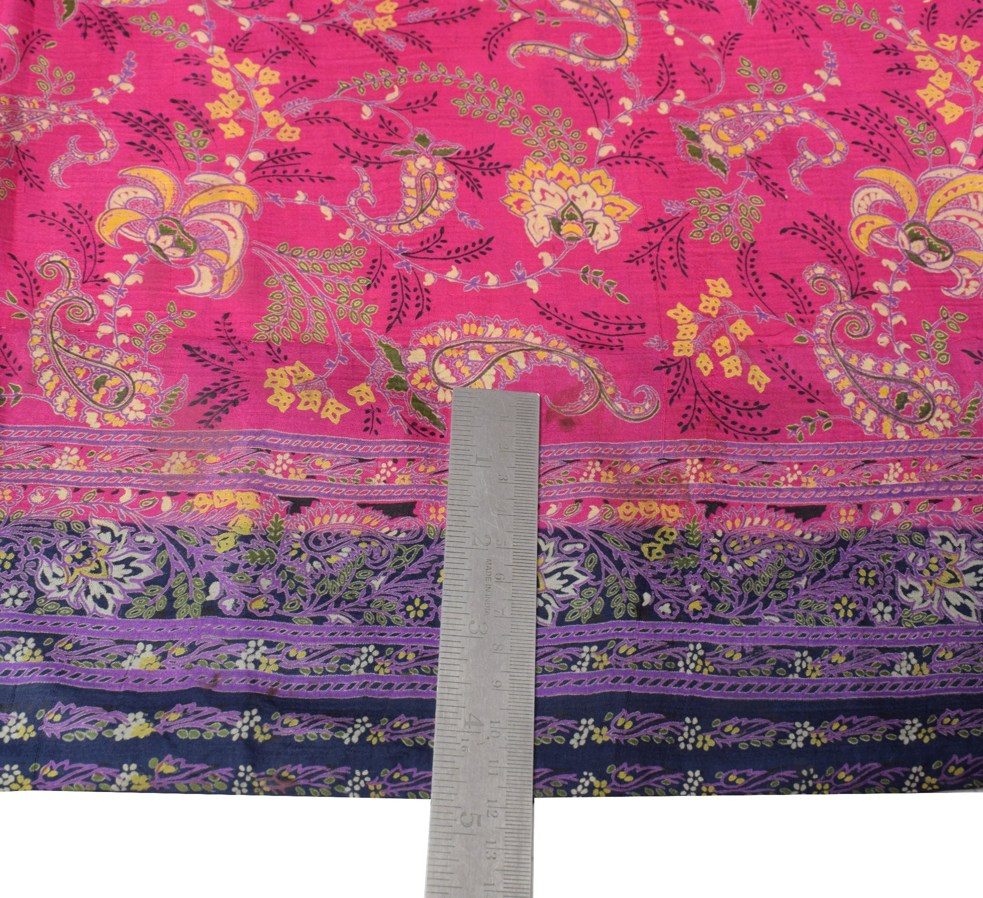 Sushila Vintage Magenta Paisley Printed Saree 100% Pure Silk Soft Craft Fabric