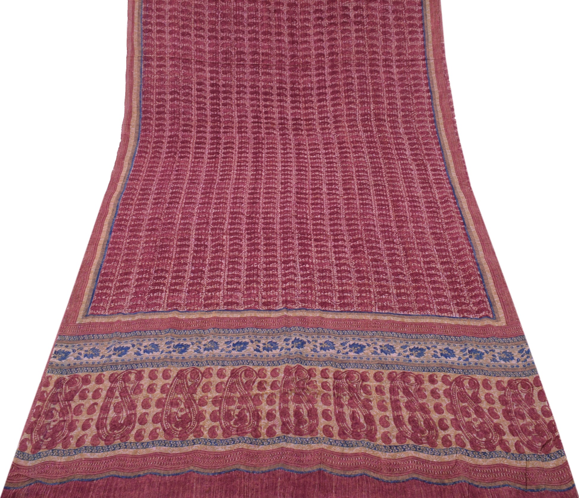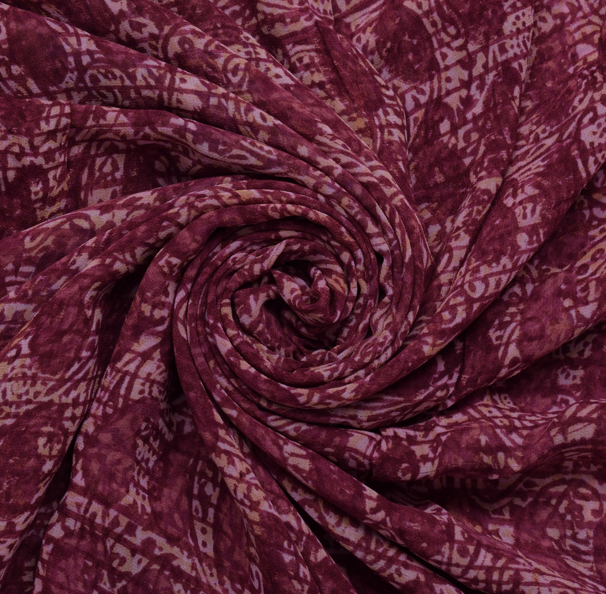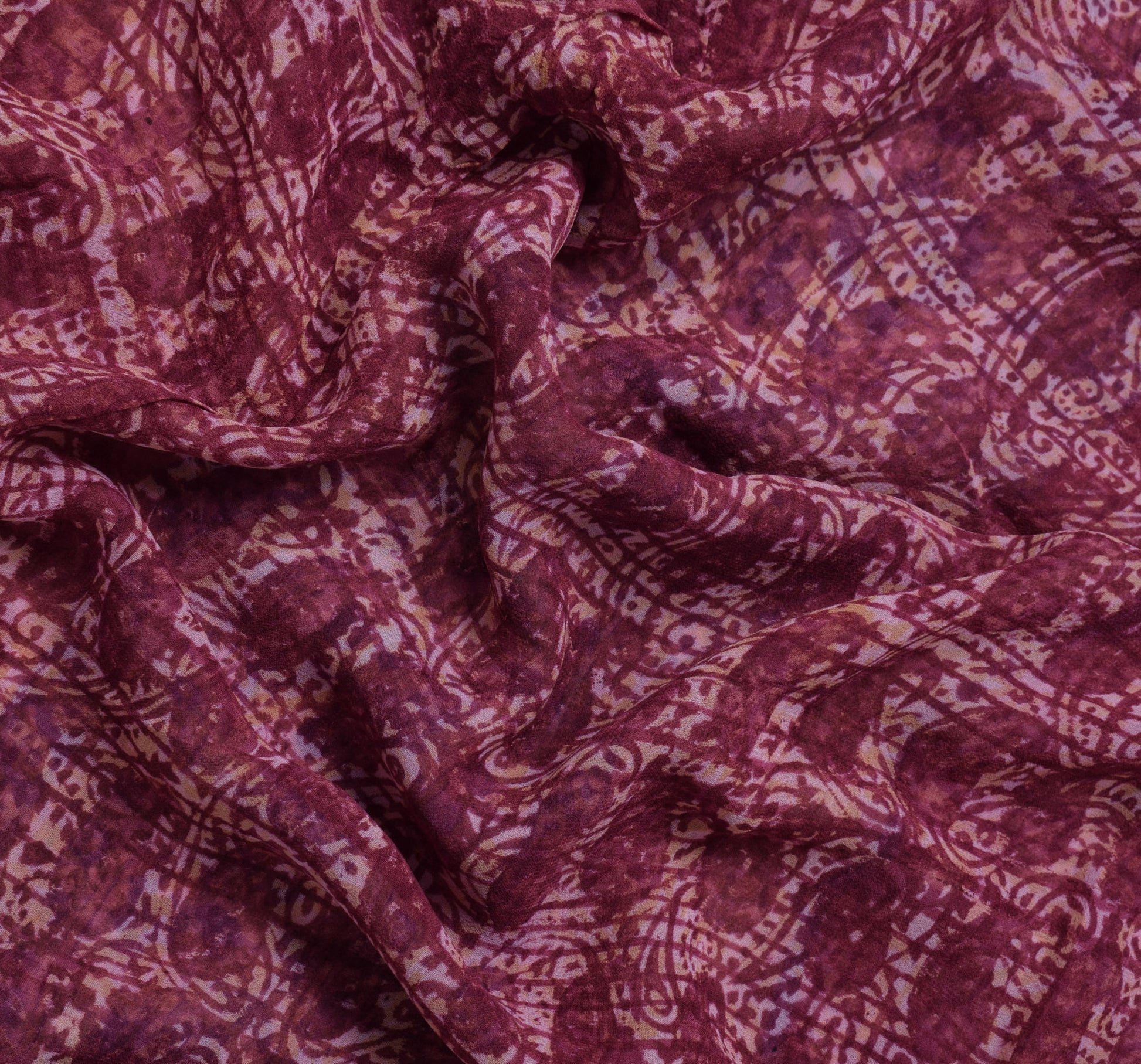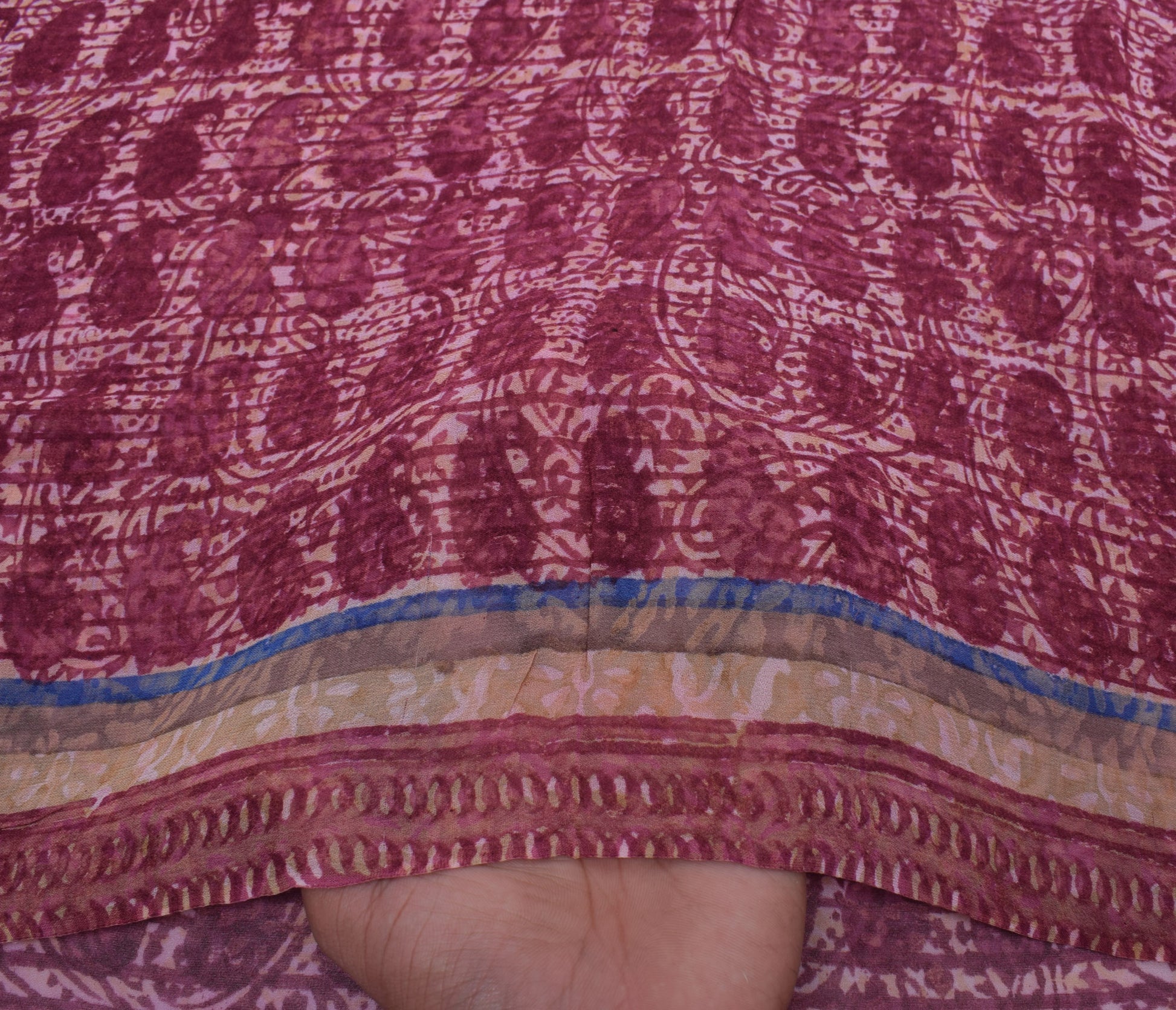 Sushila Vintage Magenta Sari 100% Pure Georgette Silk Printed Craft Fabric