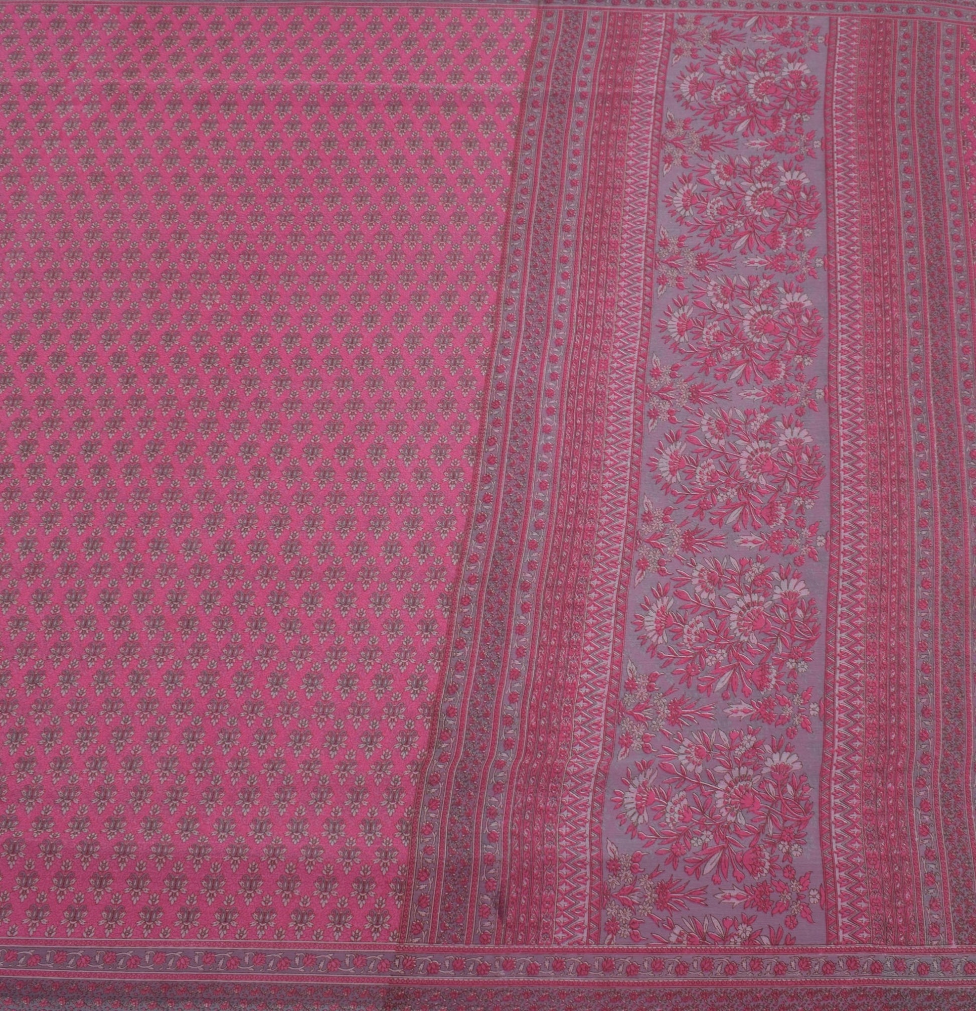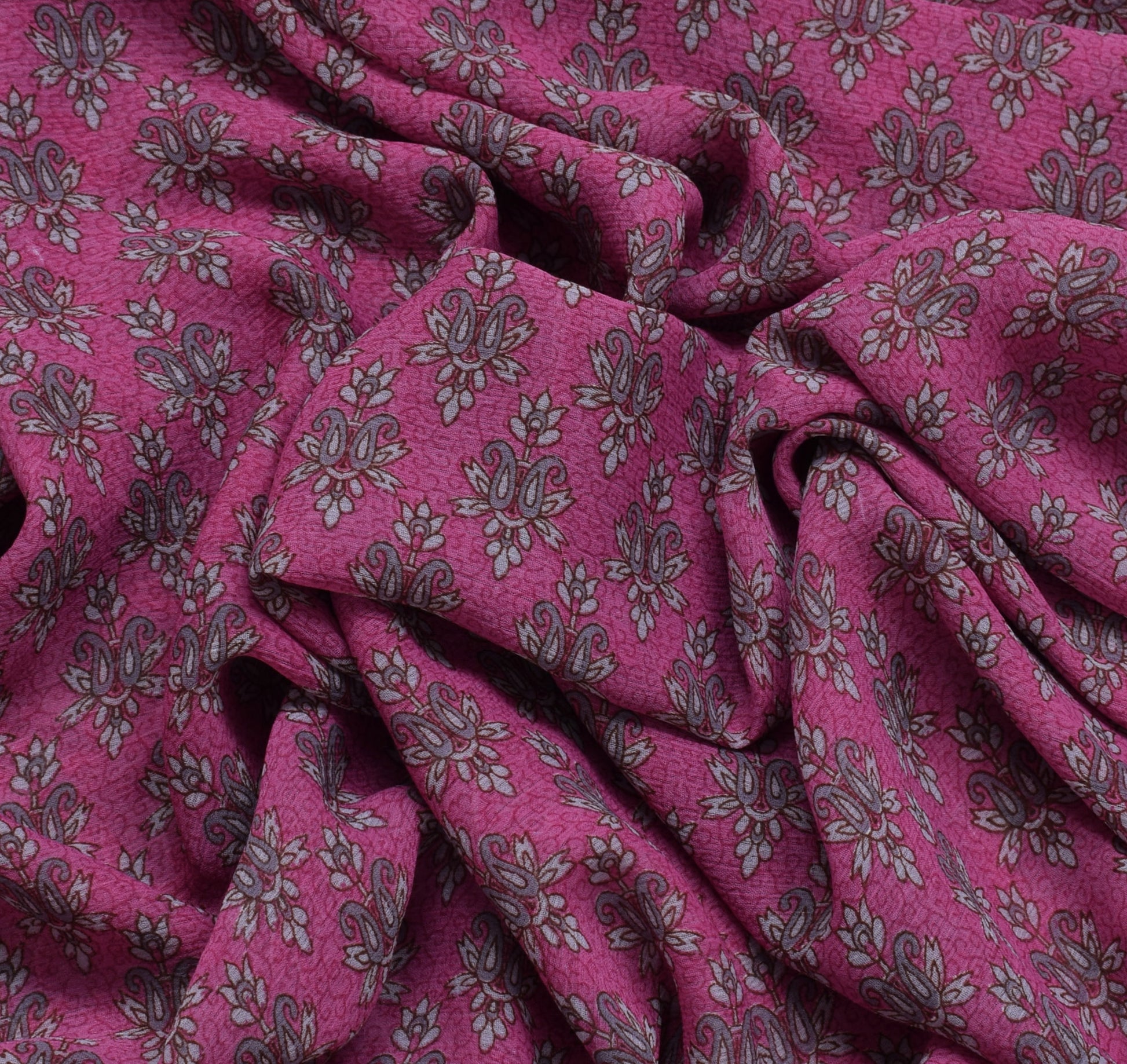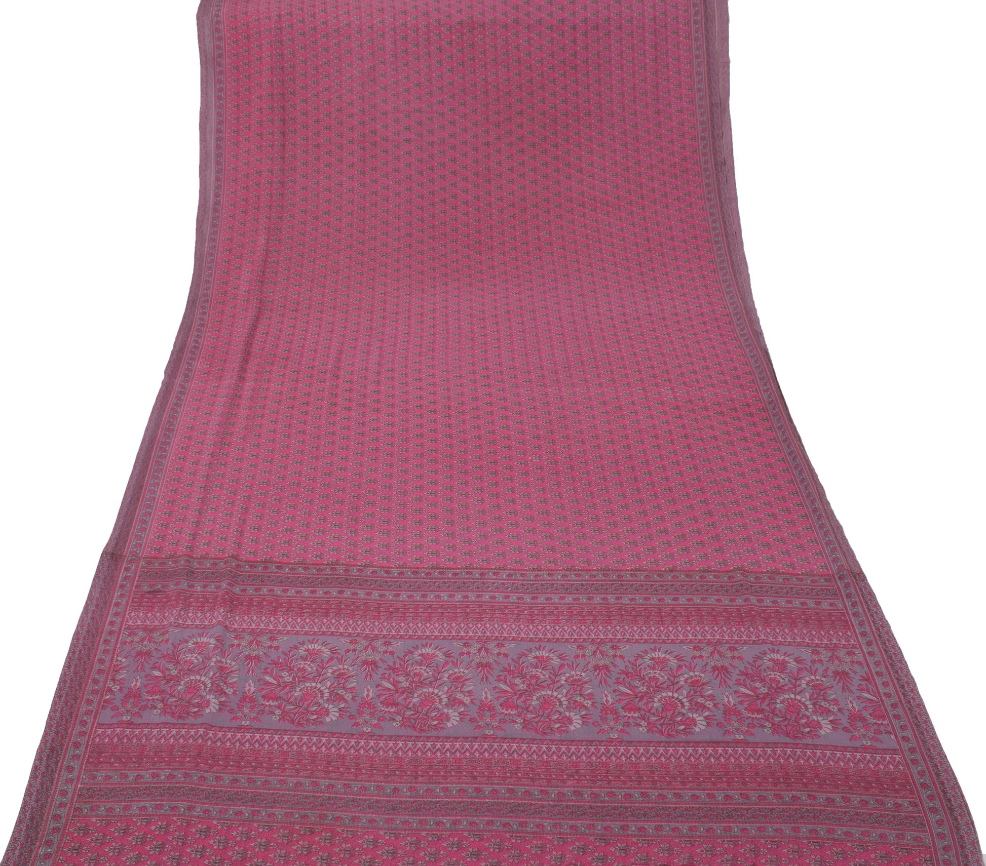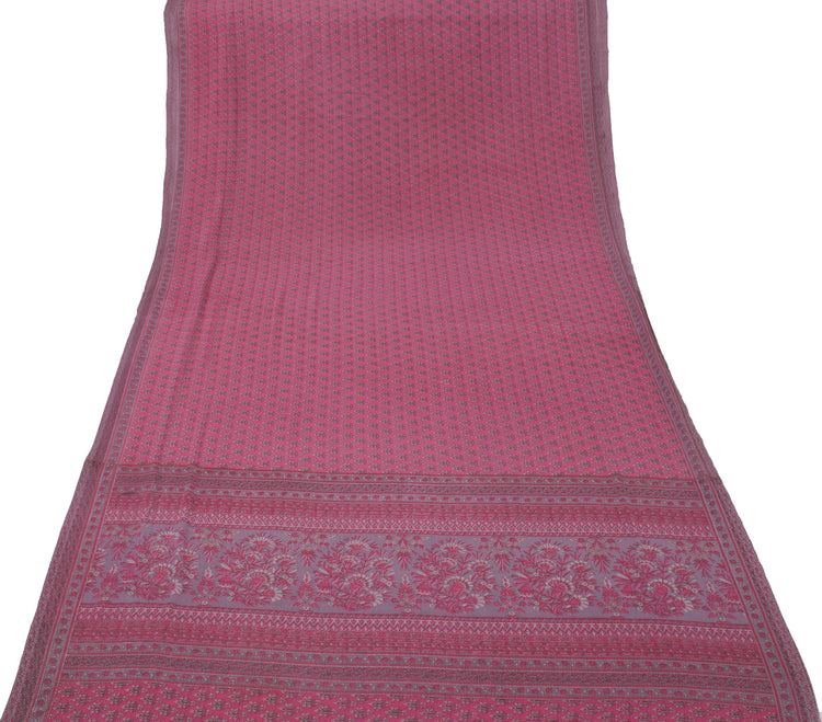 Sushila Vintage Magenta Sari Blend Georgette Silk Printed Floral Craft Fabric