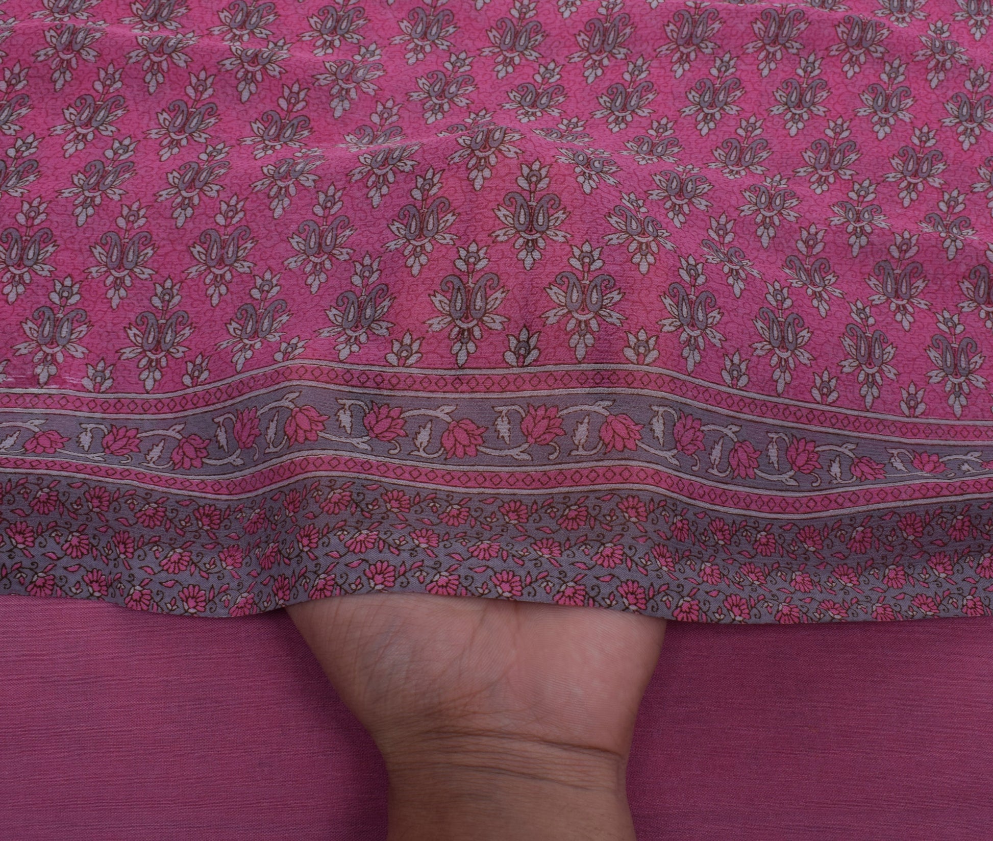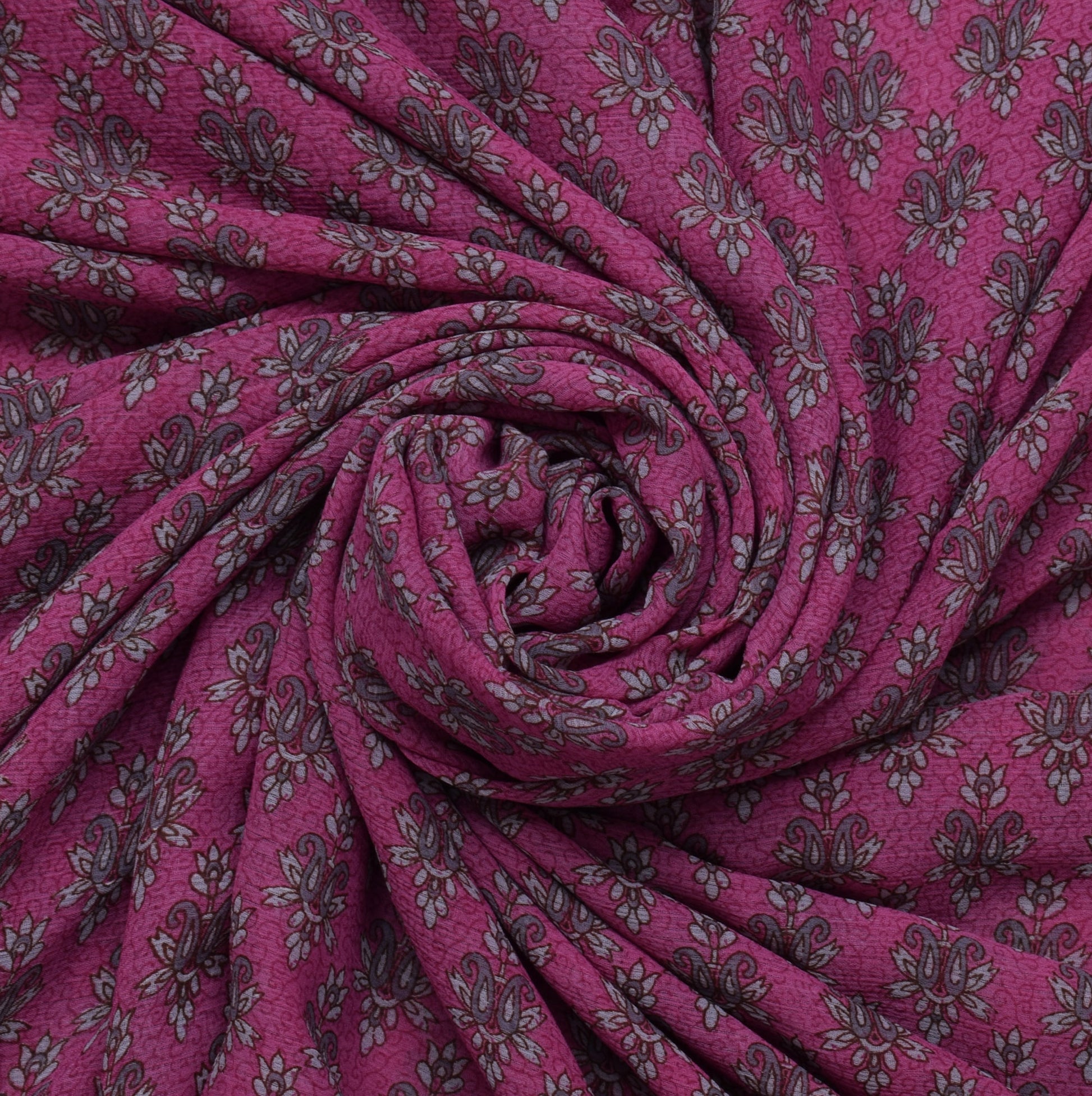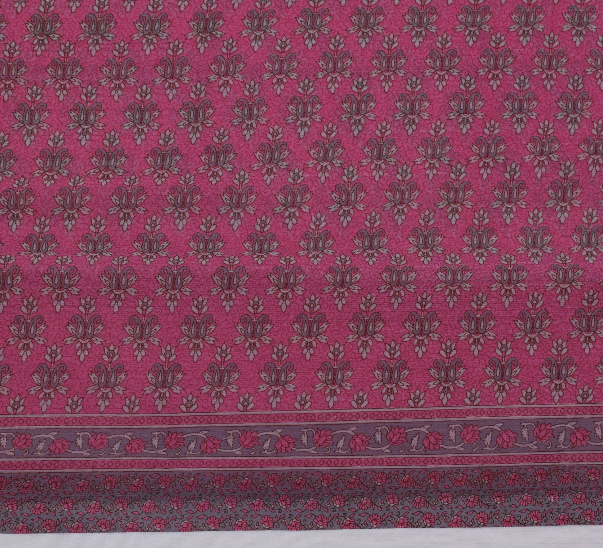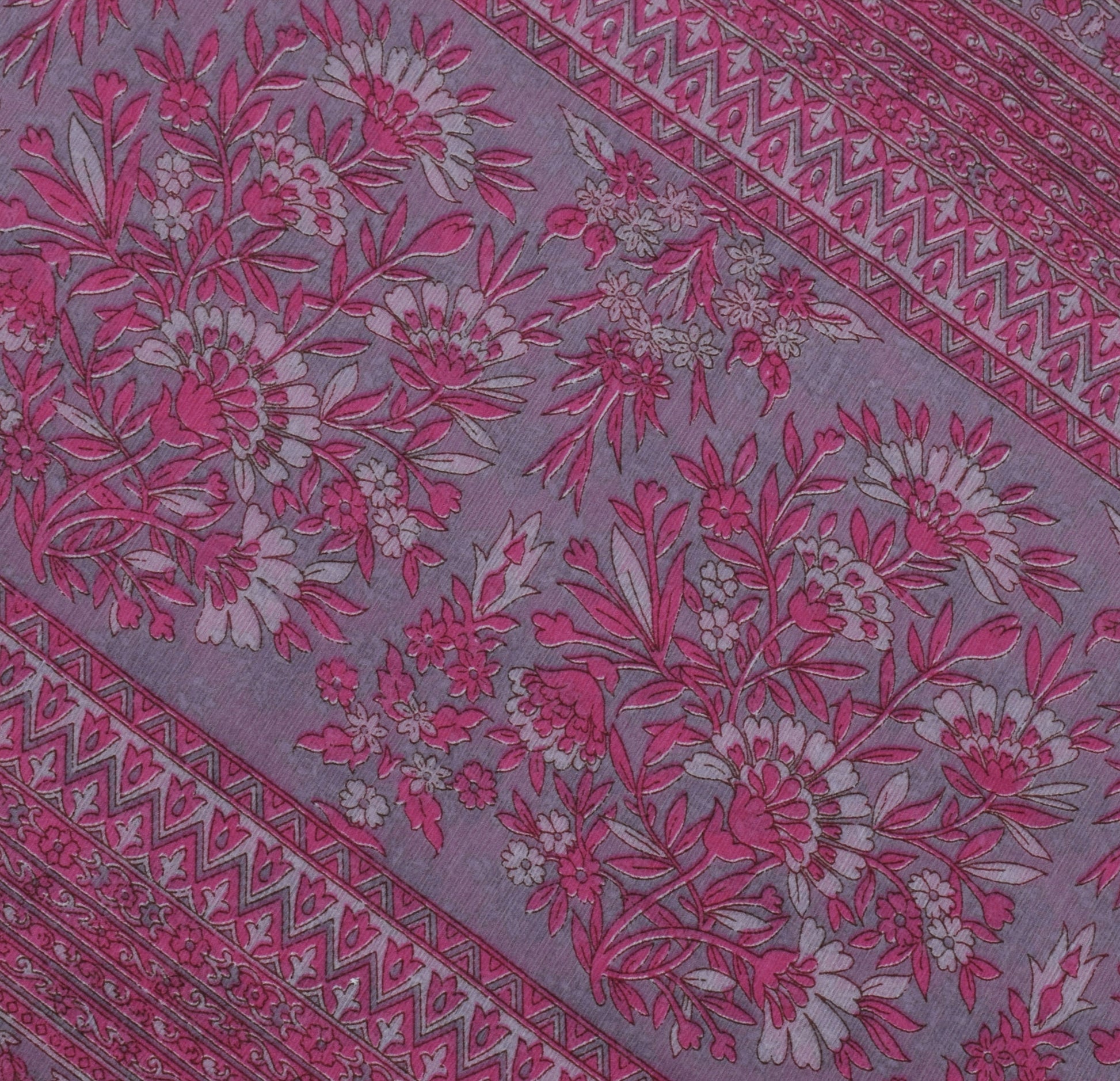 Sushila Vintage Magenta Sari Blend Georgette Silk Printed Floral Craft Fabric
