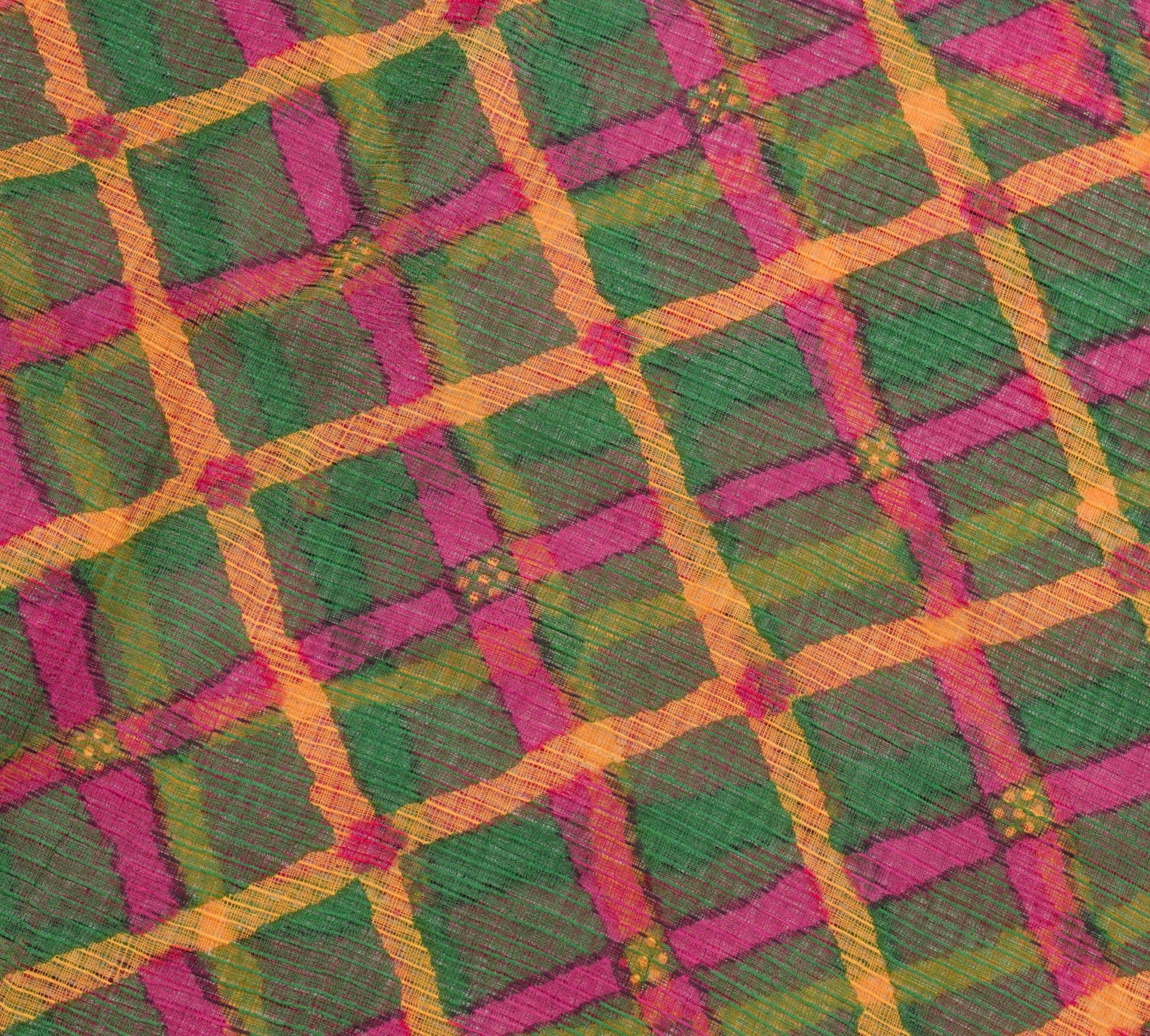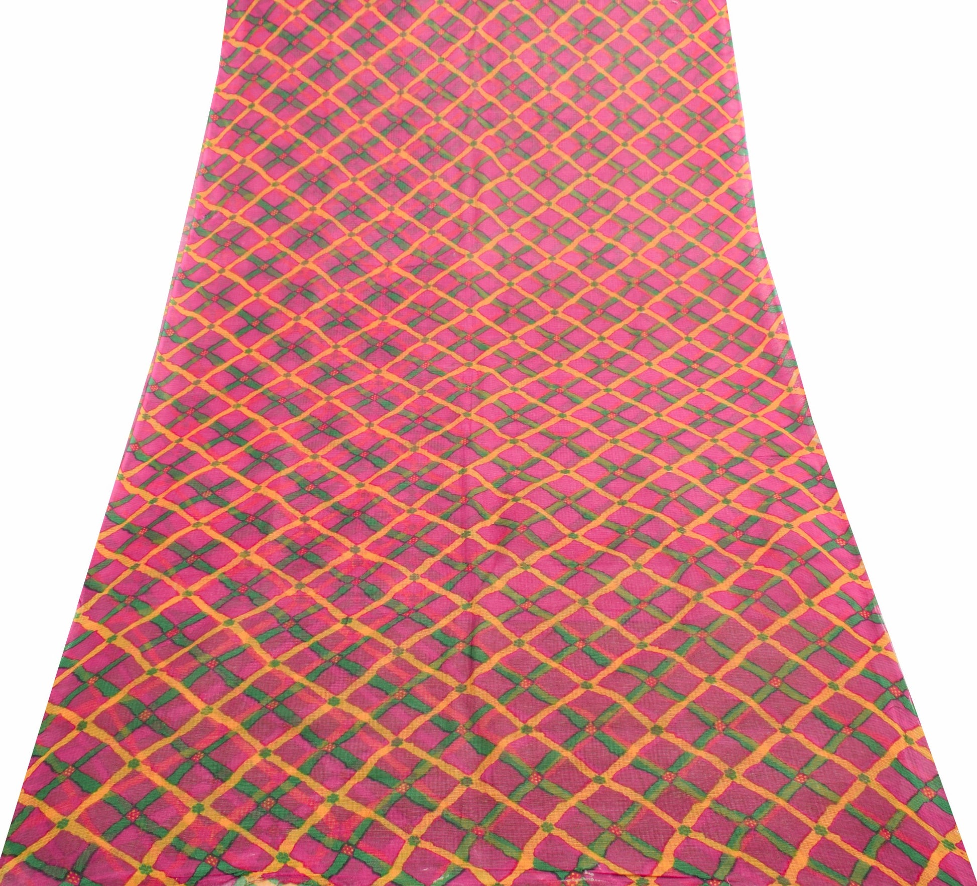 Sushila Vintage Magenta Women Saree 100%Pure Cotton Checks Printed Craft Fabric