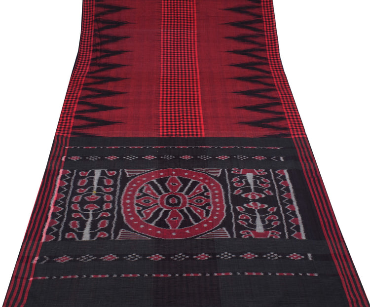 Sushila Vintage Maroon Black Saree Hand Woven Ikat Patola PureCotton Sari Fabric