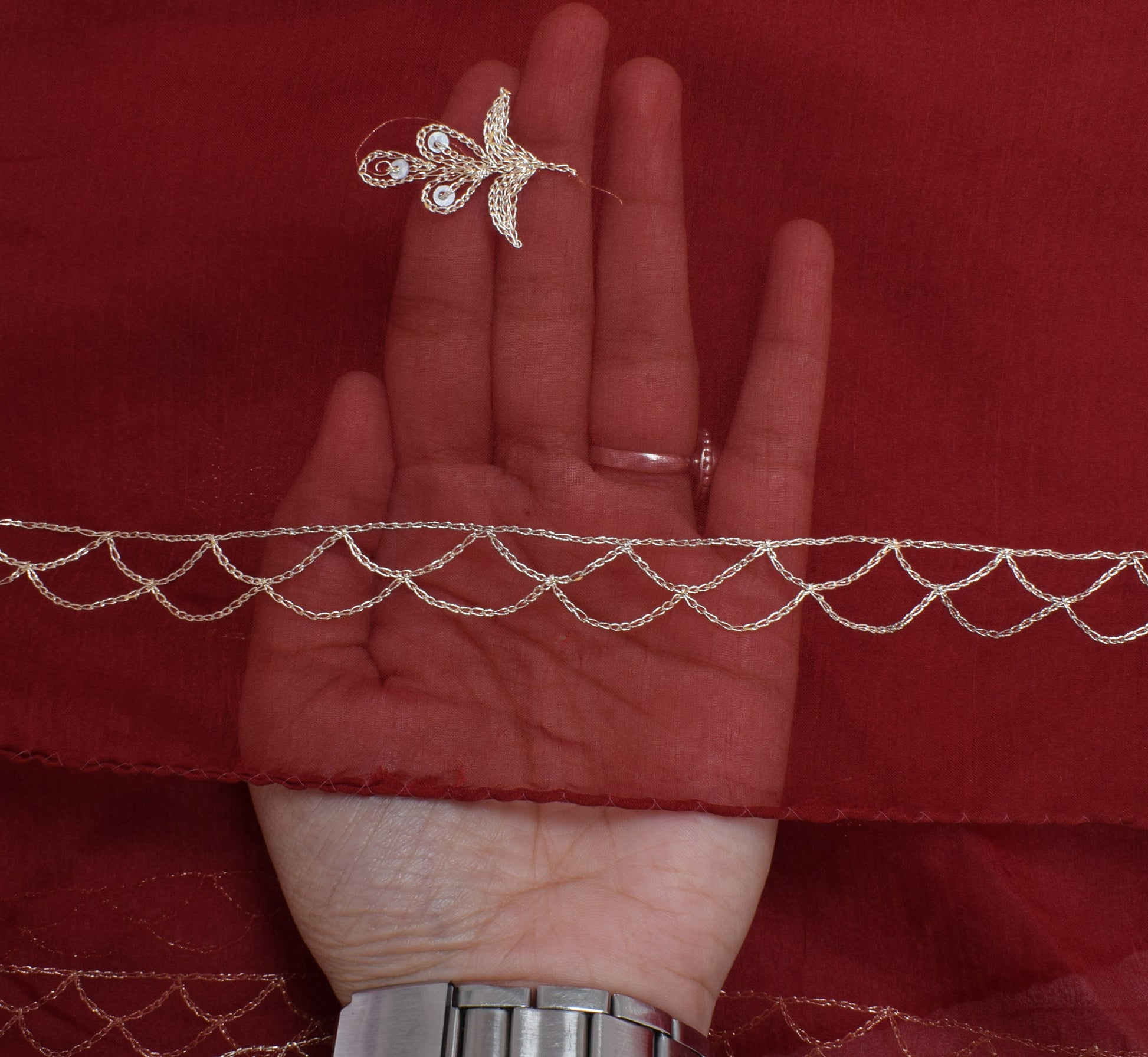 Elevate your style with this intricately crafted Maroon Floral Dupatta, Scarf, Indian Long Stole, Veil, or Hijab, perfect for special occasions and everyday elegance. Made from premium Blend Chiffon Silk, this piece features intricate Hand Beaded Zardozi Work, Sequins Work & Zari Embroidered work, adding a touch of traditional charm to any outfit. The Maroon base beautifully complements the delicate Floral detailing, creating a truly timeless accessory.