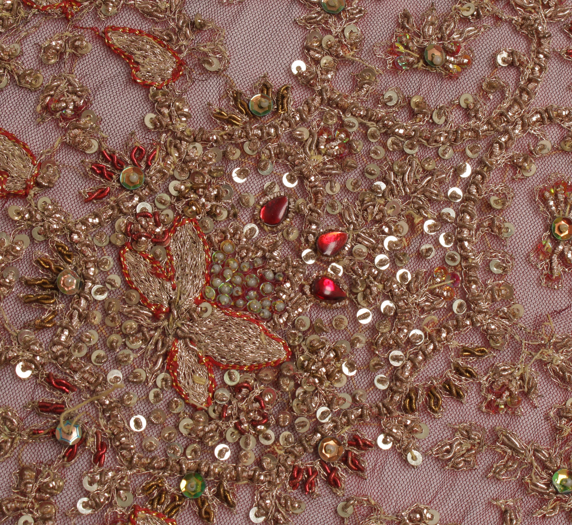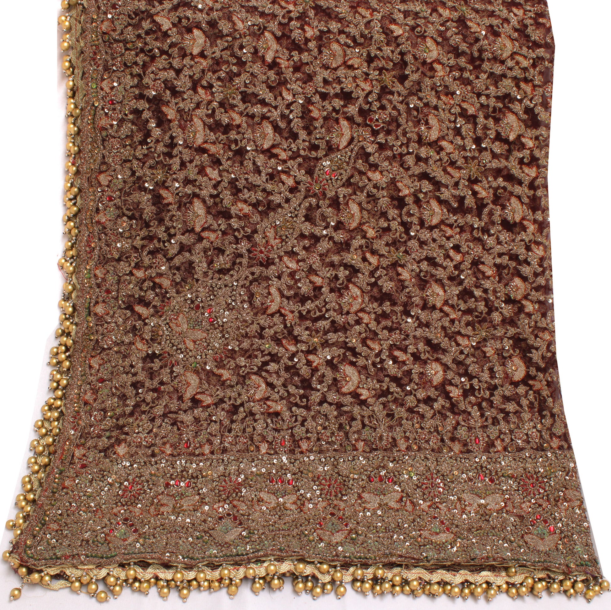 Sushila Vintage Maroon Hevy Dupatta Net Mesh Hand Beaded Zardozi Long Stole Veil
