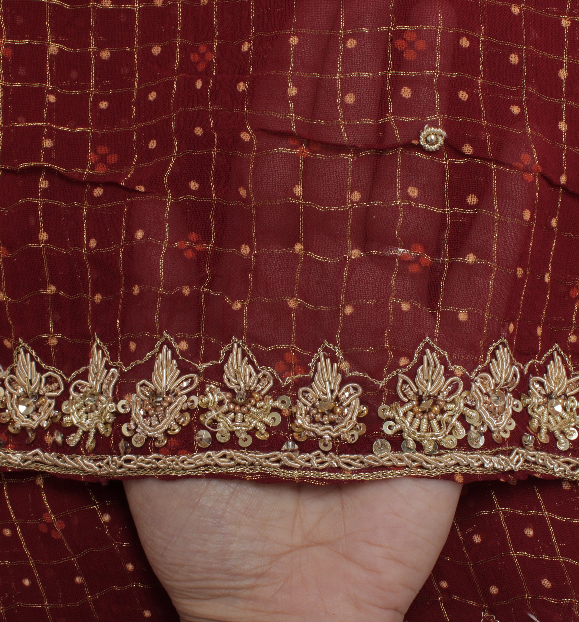 Step into a world of elegance with this richly textured Maroon As Per Images Dupatta, Scarf, Indian Long Stole, Veil, or Hijab, perfect for those who appreciate fine craftsmanship. Made from premium 100% Pure Cotton, this piece features intricate Hand Beaded Zardozi Work, Sequins Work, Printed & Zari Woven work, adding a touch of traditional charm to any outfit. The Maroon base beautifully complements the delicate As Per Images detailing, creating a truly timeless accessory.