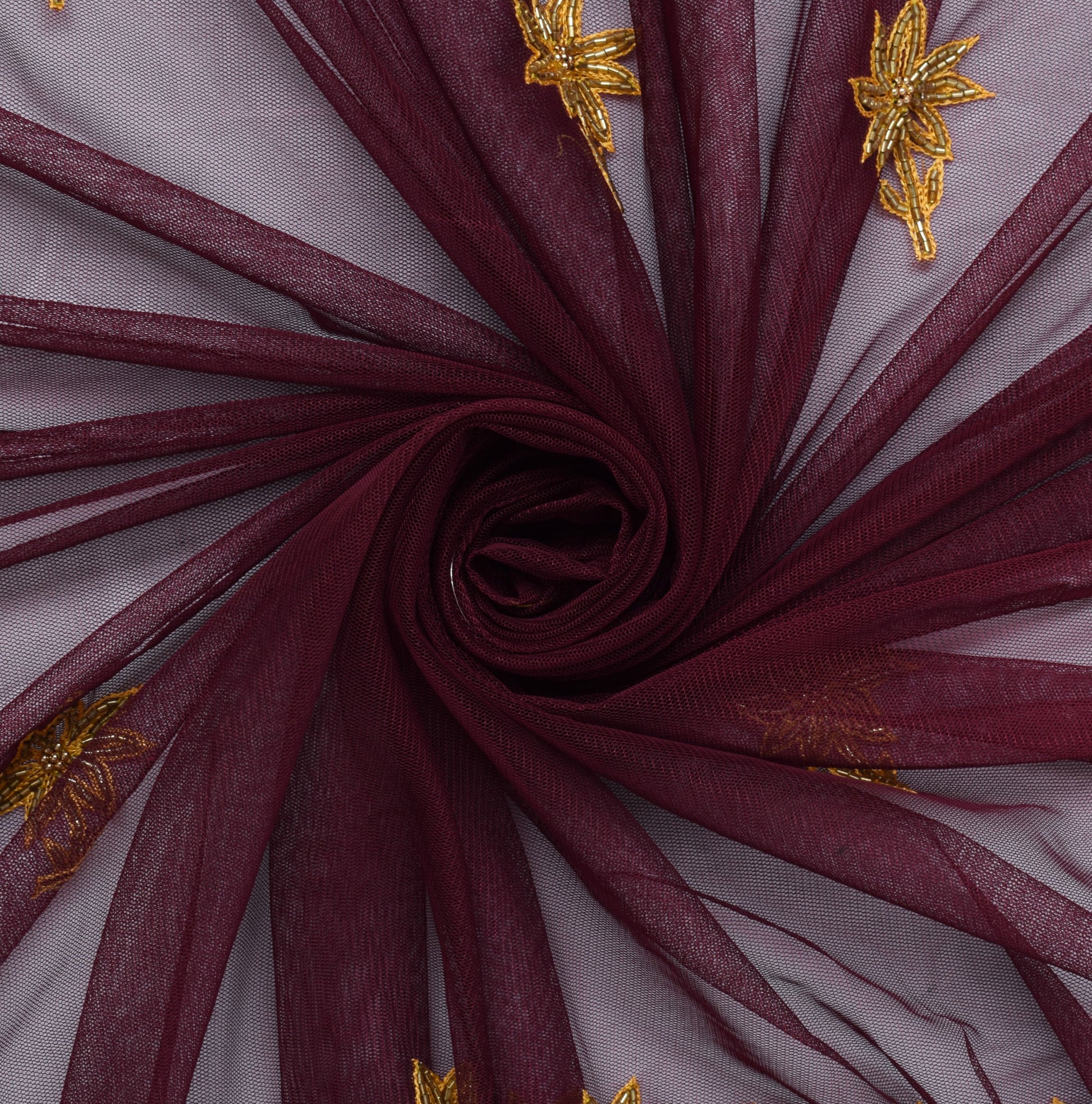 Elevate your style with this intricately crafted Maroon Floral Dupatta, Scarf, Indian Long Stole, Veil, or Hijab, perfect for special occasions and everyday elegance. Made from premium Net Mesh, this piece features intricate Hand Beaded, Glass Beads & Embroidered work, adding a touch of traditional charm to any outfit. The Maroon base beautifully complements the delicate Floral detailing, creating a truly timeless accessory.